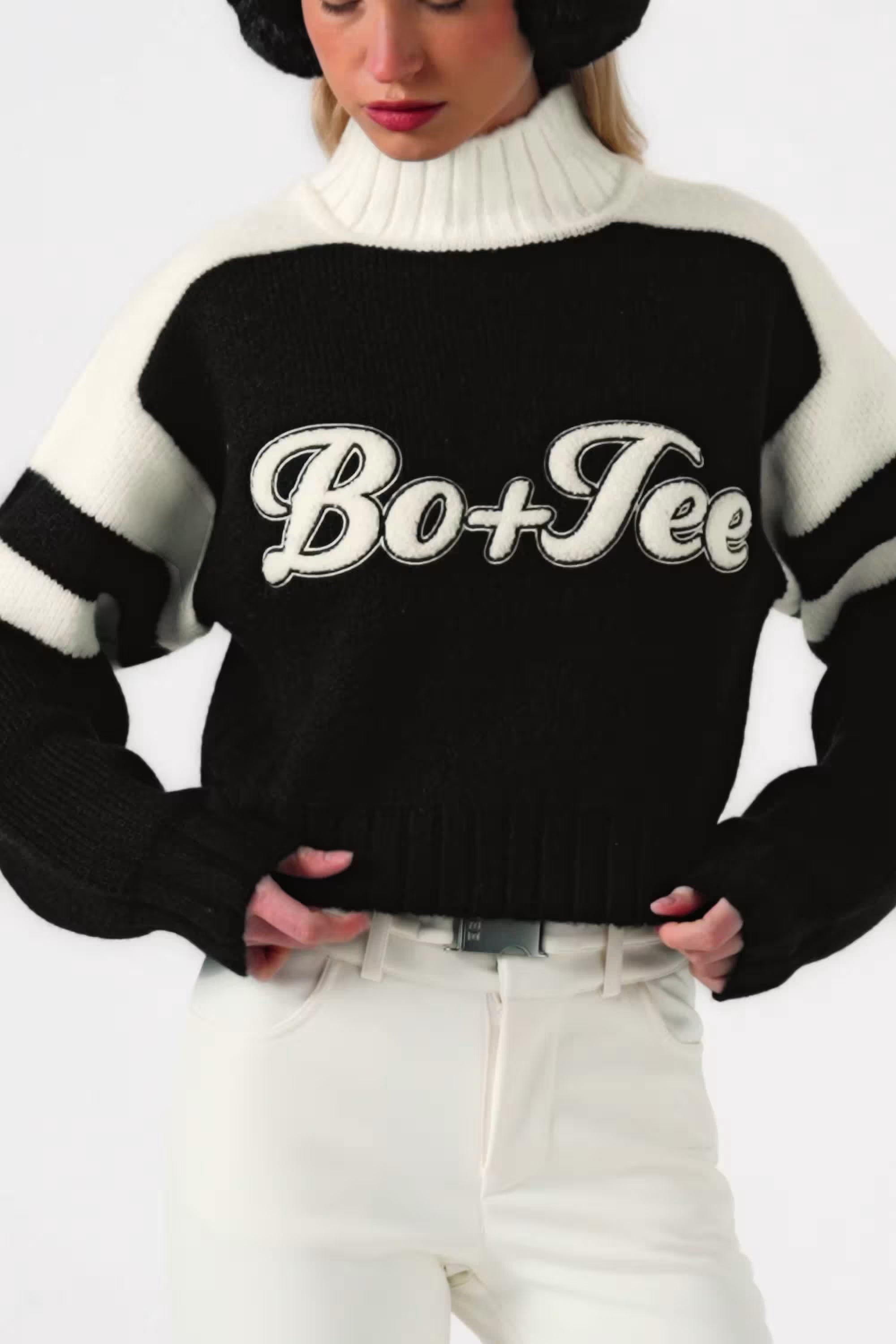 Après-approved looks start here. Perfect for throwing on at the chalet, this cropped jumper is crafted from our heavyweight knit fabric woven with a touch of wool and mohair and cut to a boxy silhouette with dropped shoulders for a relaxed feel. Finished with ribbed trims and an embroidered Bo+Tee logo at the chest, it’s the ultimate layering piece.