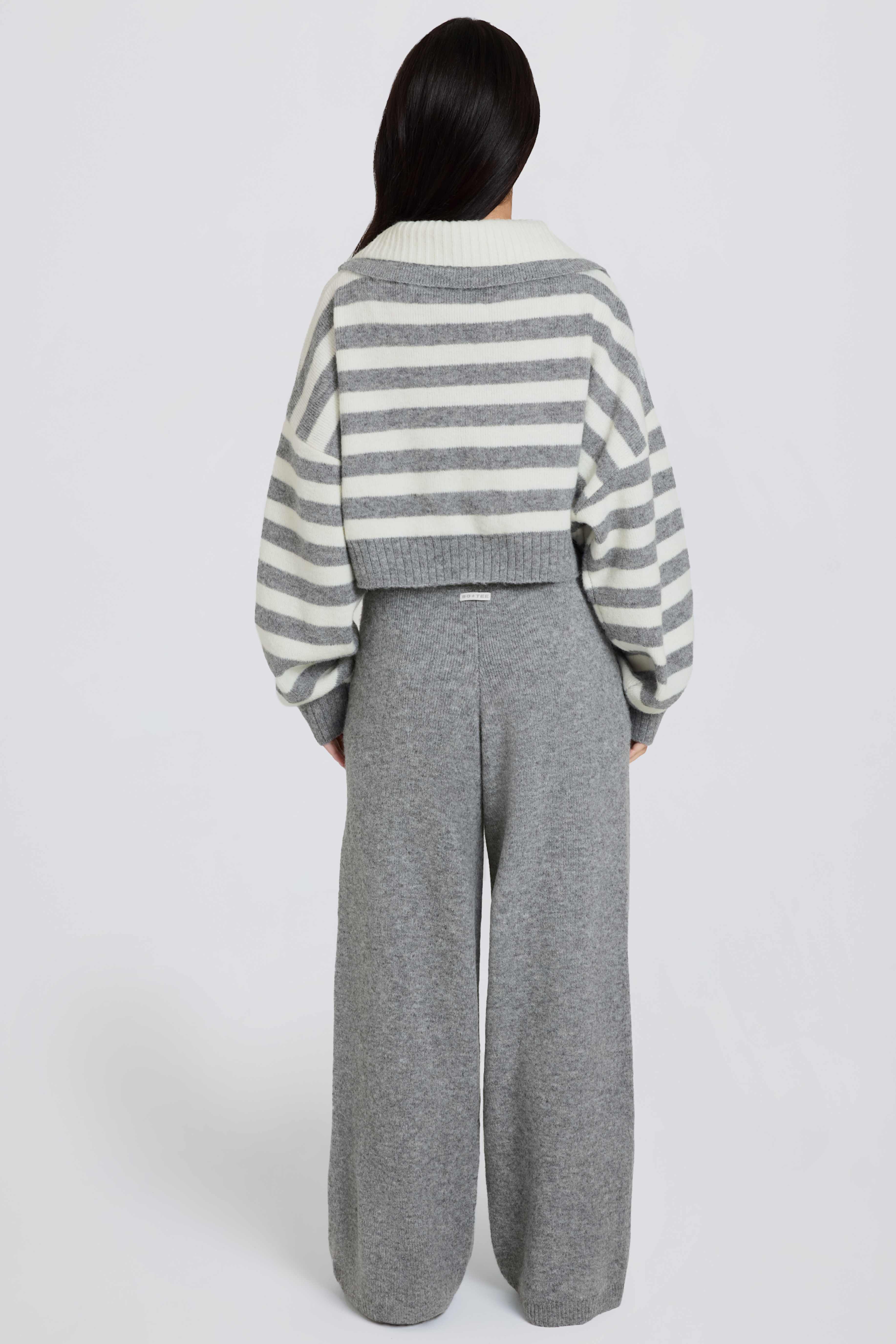 Knit Mid-Rise Wide-Leg Joggers in Grey