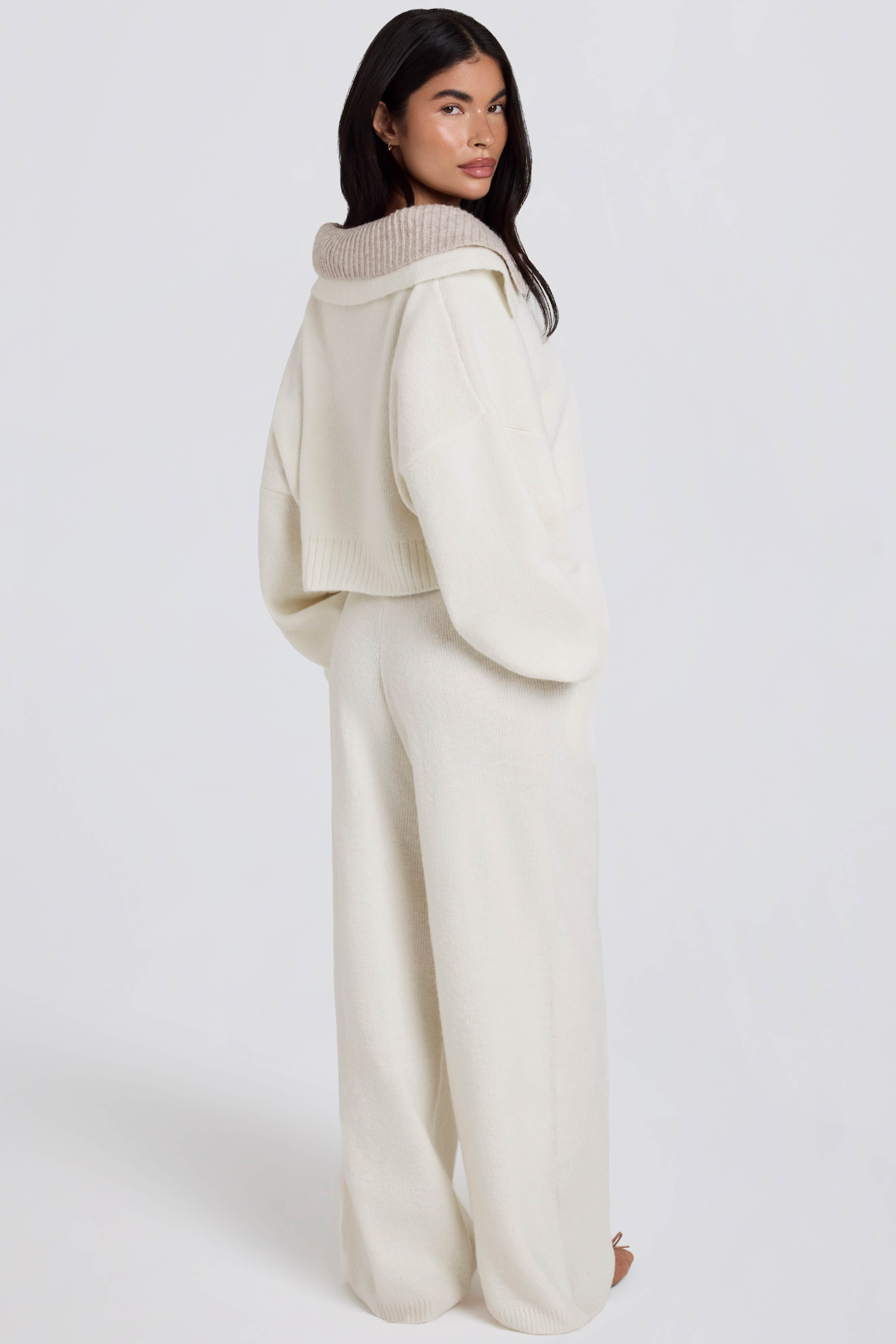 Knit Mid-Rise Wide-Leg Joggers in Ivory