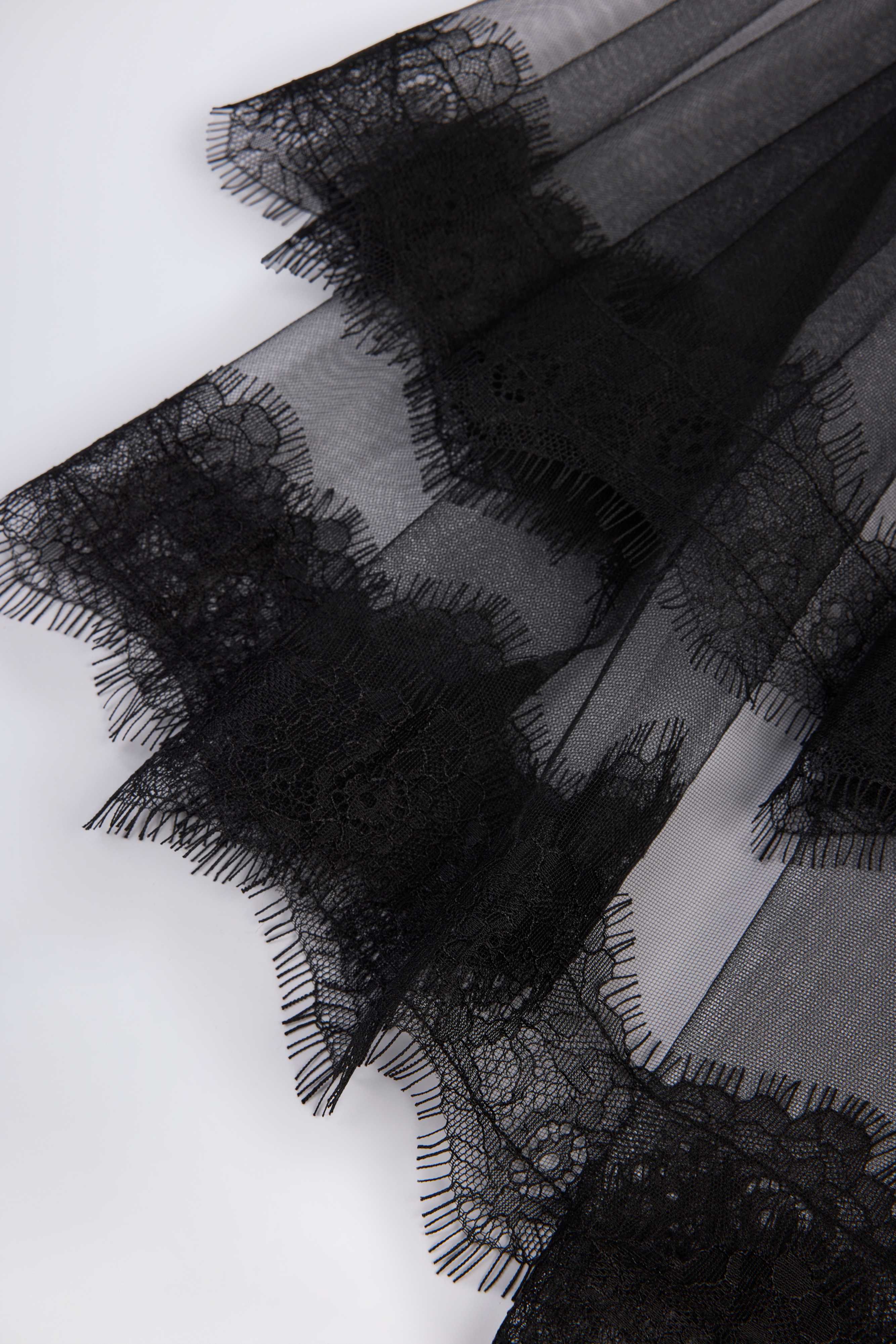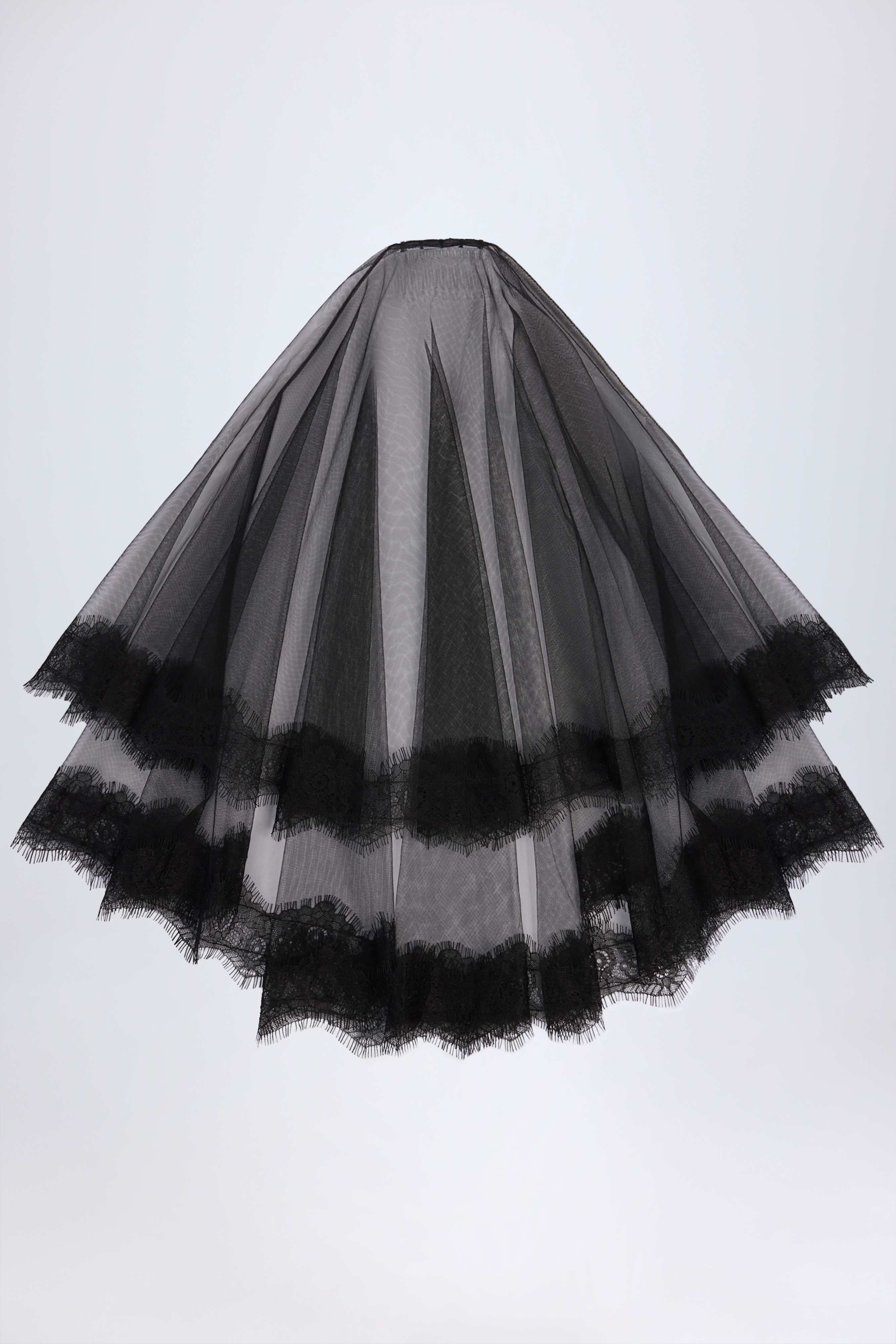 Get into character. A glamorous finishing touch for dramatic Halloween looks, the Trixie veil is crafted from premium semi-sheer mesh and bordered with a tonal scalloped lace trim. It can be adjusted for a high-low effect or to your preferred look.
