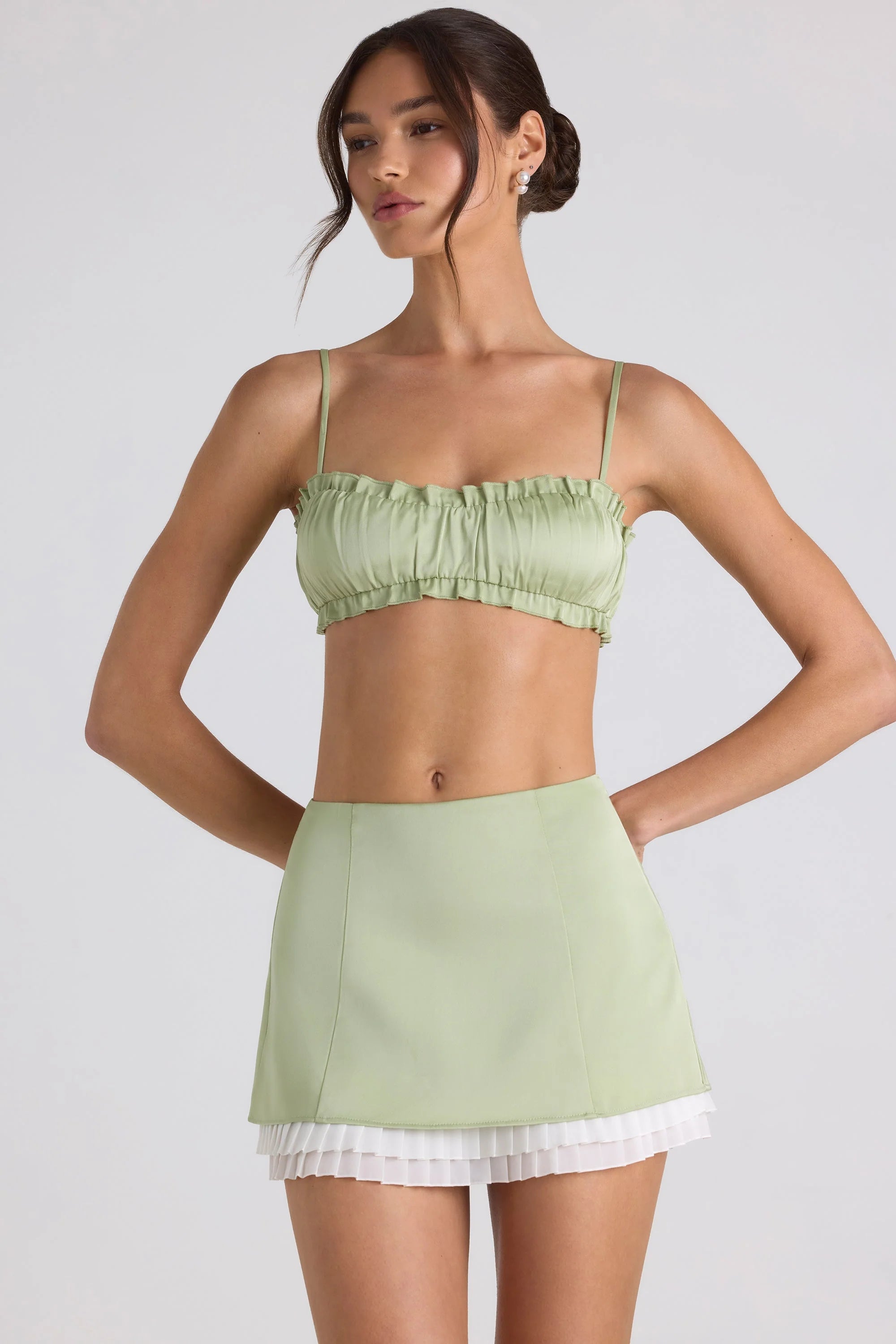 Romantic and playful. Designed for a mid-rise fit, the Odella mini skirt is crafted from sumptuous stretch satin to a subtle A-line silhouette. It’s underpinned with a contrasting pleated georgette underlay, echoing the collection’s whimsical aesthetic.