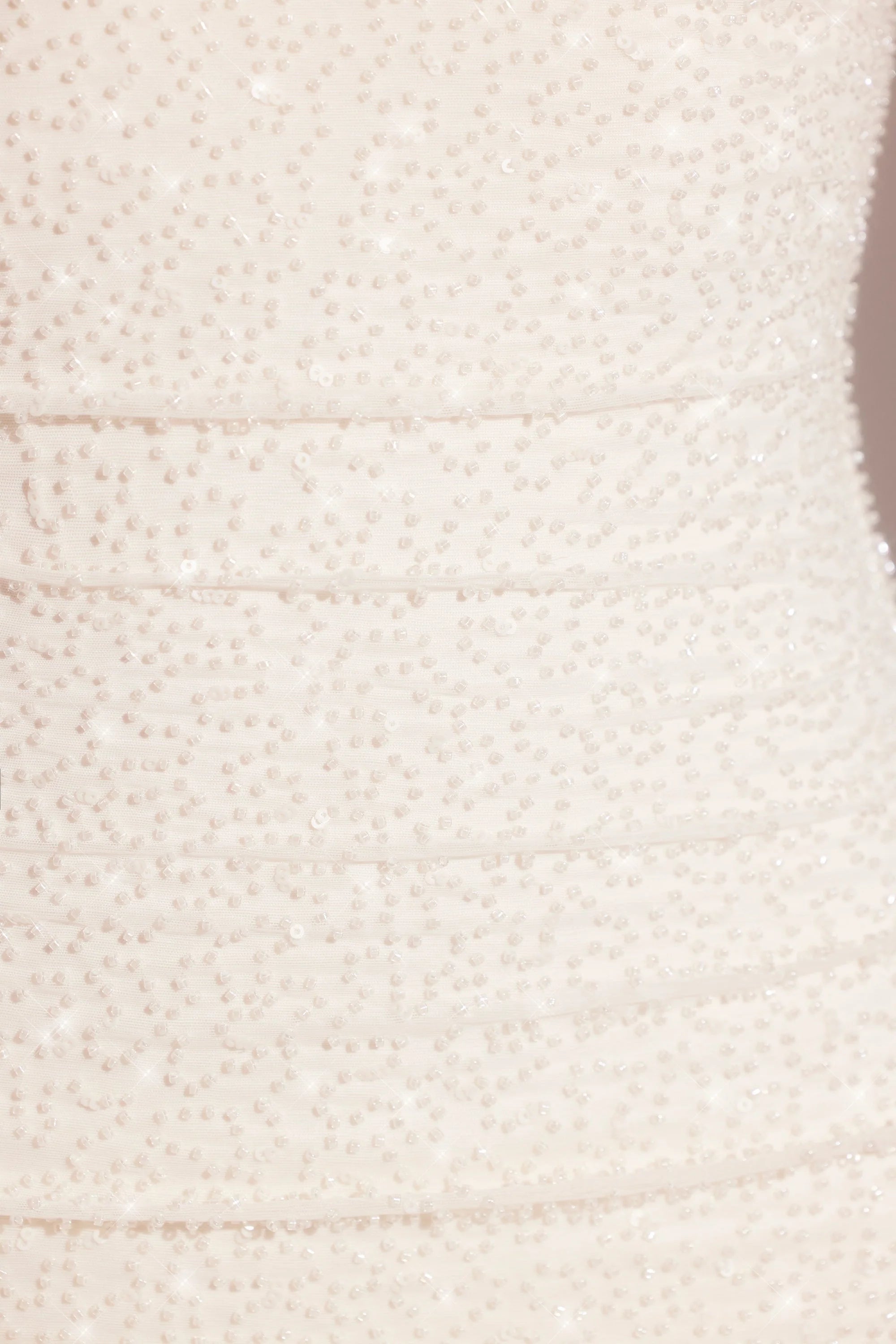 Dual layered mesh fabric with fully seeded embellishment throughout (Shell: 84% Polyester, 16% Elastane, Lining: 95% Polyester, 5% Elastane). Fully lined. Please read the wash instructions.