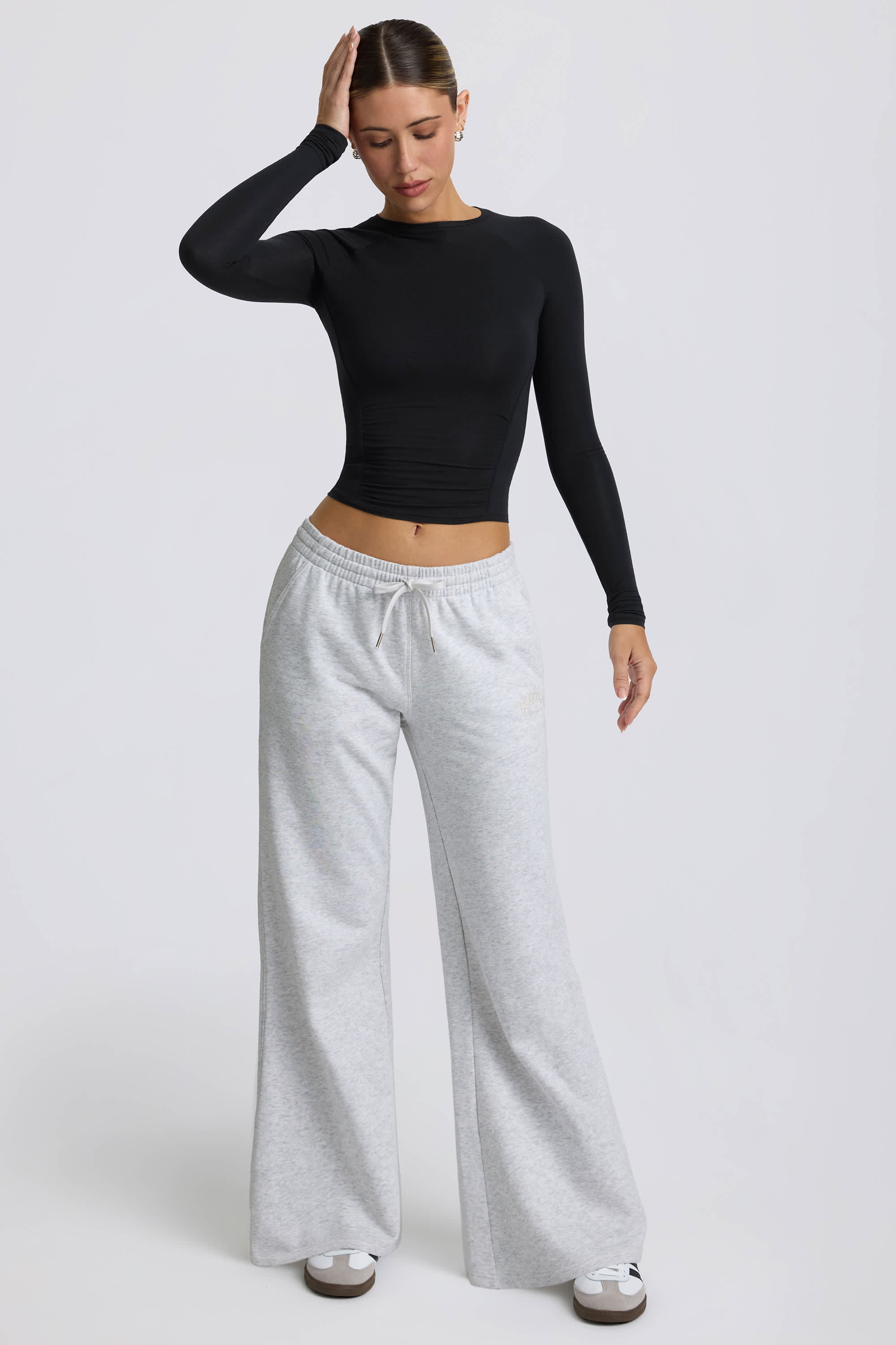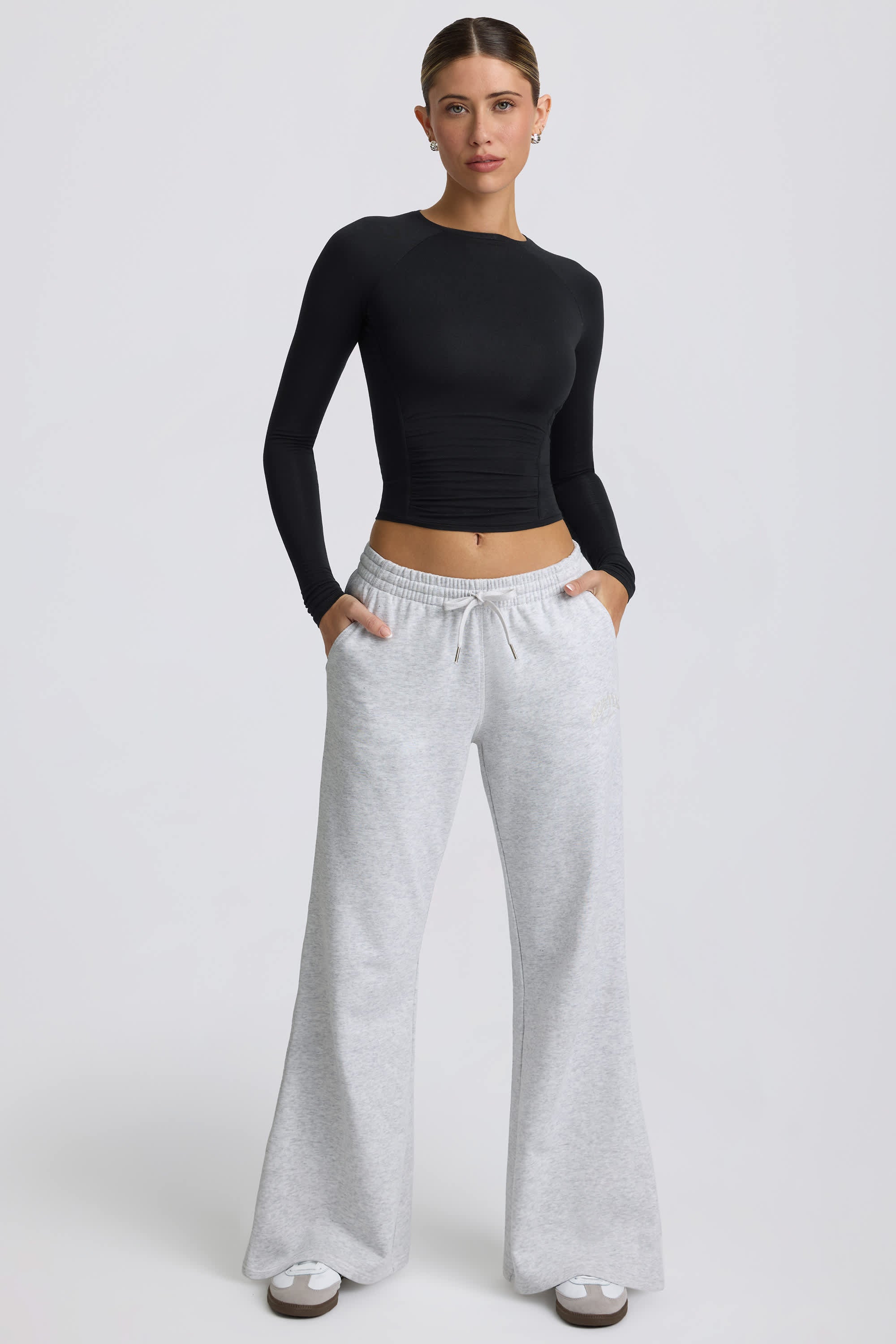 Low-Rise Wide-Leg Joggers in Grey Marl