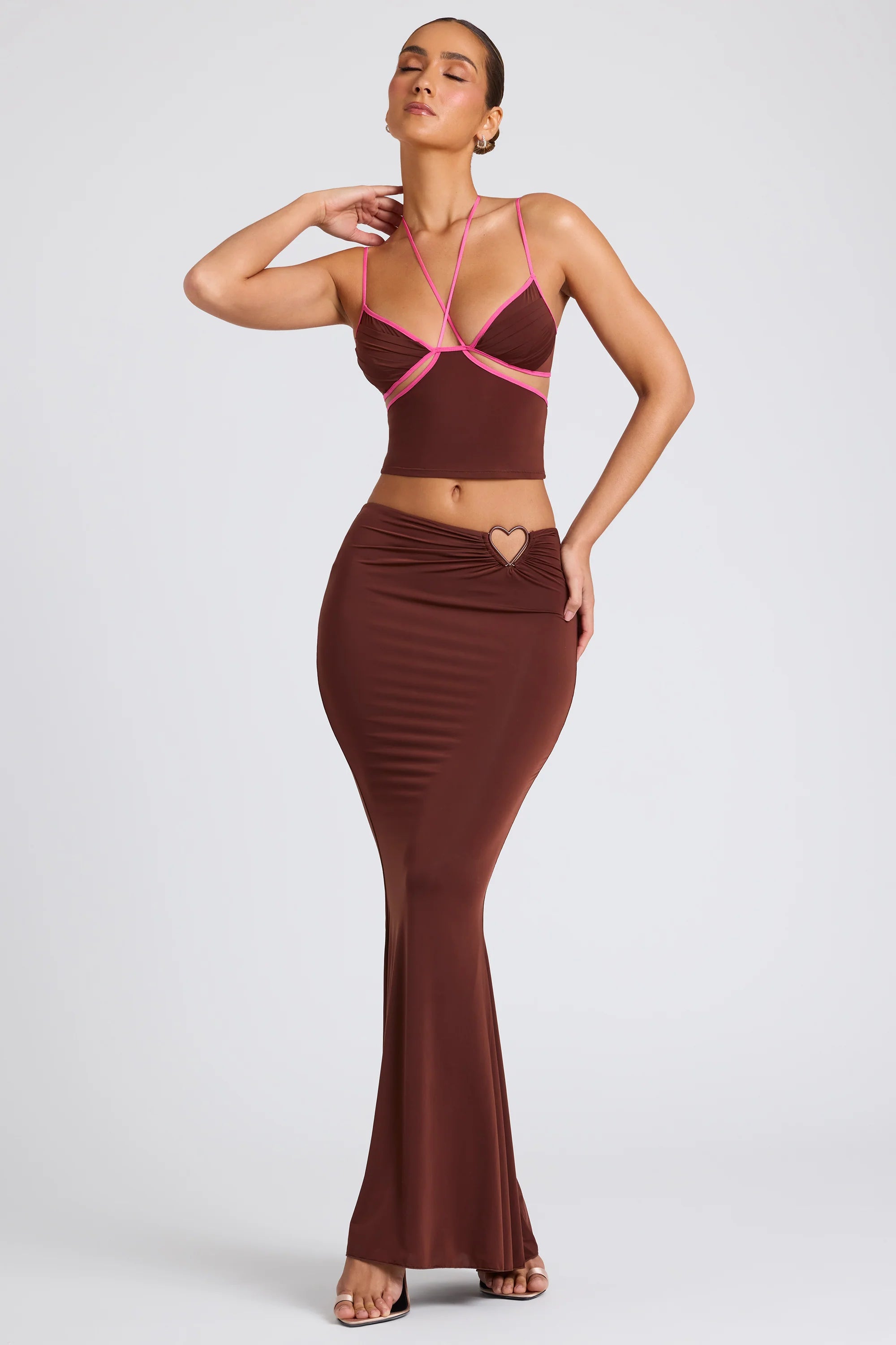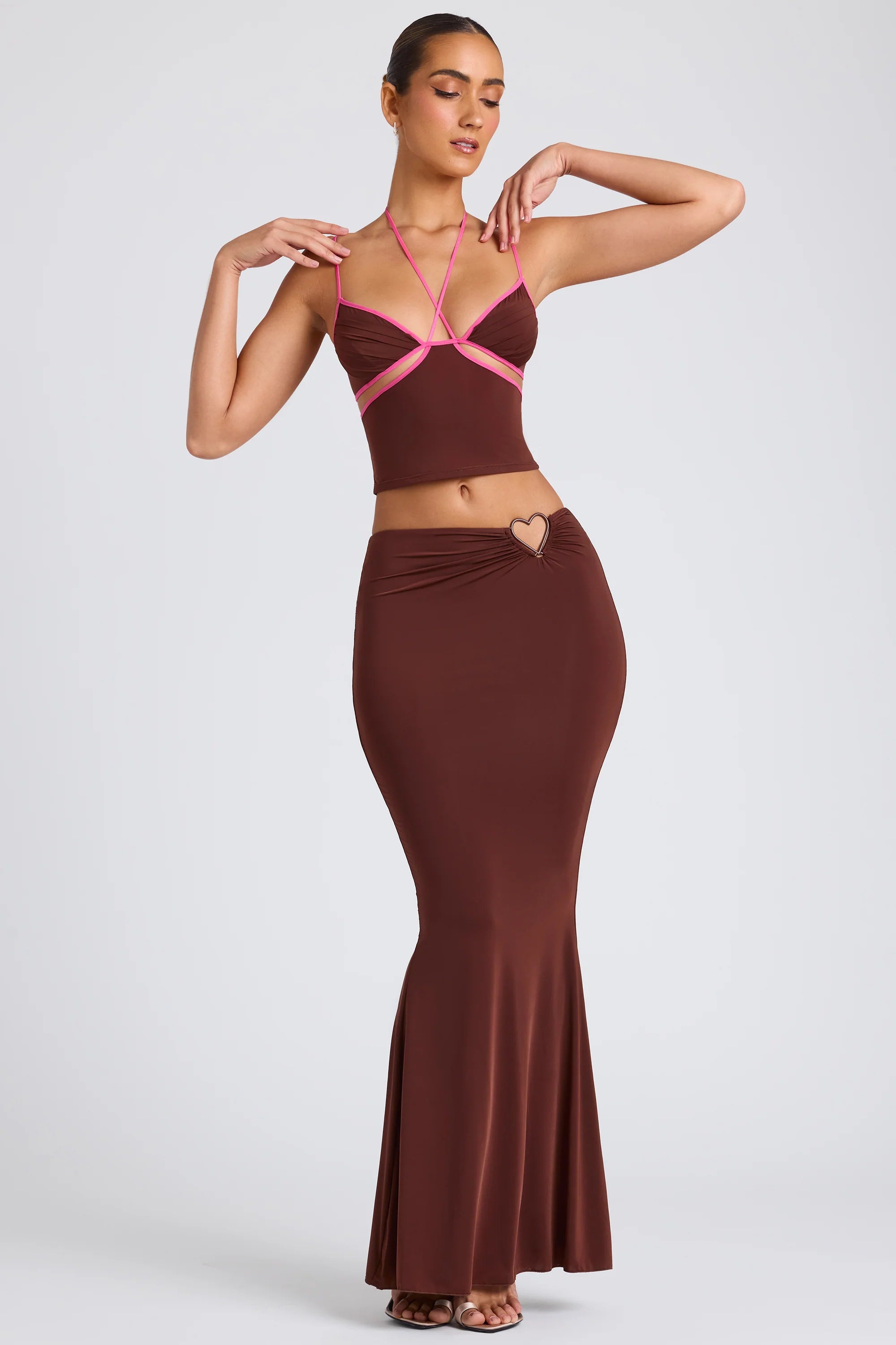 Create a seductive two-piece look with the Sabine skirt. Cut to a flowing maxi length, Sabine is designed in our premium stretch jersey fabric for a soft yet sculpted fit. Its clean mid-rise waistband and stunning metal hardware detailing are sure to set hearts aflutter.