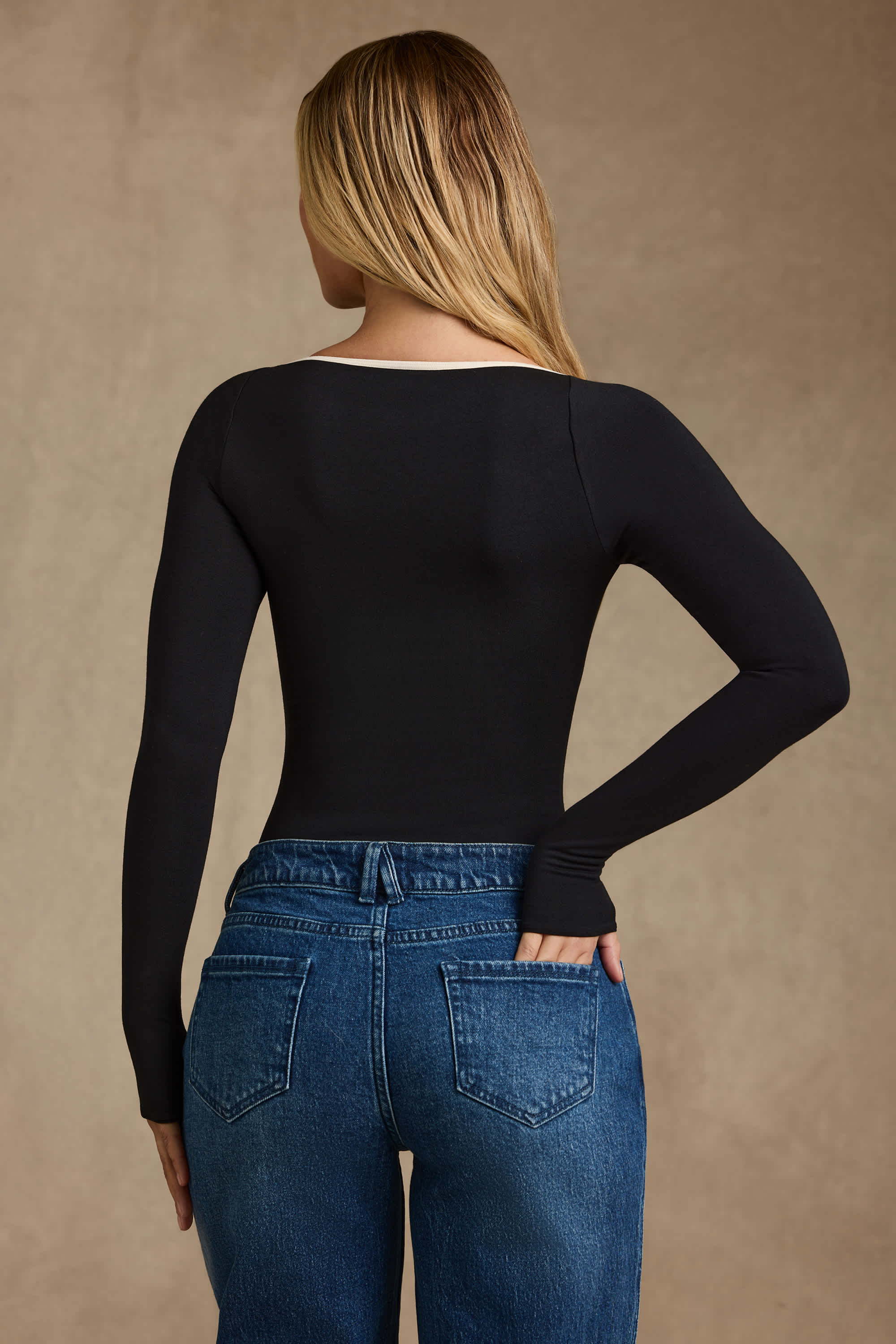 Wardrobe essentials with an edge. Perfect for adding interest to everyday outfits, the Lara bodysuit features a universally flattering sweetheart neckline traced with a contrast trim. It’s crafted from buttery soft, stretchy and breathable jersey made with TENCEL™ Modal fibres, derived from controlled or certified wood sources, and is designed for a figure-hugging fit.