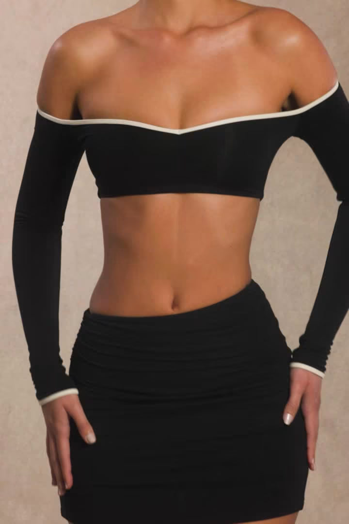 Perfect minimalism. Cut to a cropped length and traced with a stunning contrast trim, the Irie top is perfect for adding an edge to smart-casual looks. It’s crafted from stretchy and breathable jersey made with TENCEL™ Modal fibres that are naturally soft and smooth to the touch and cut to a figure-hugging silhouette with a sweetheart neckline and long fitted sleeves.