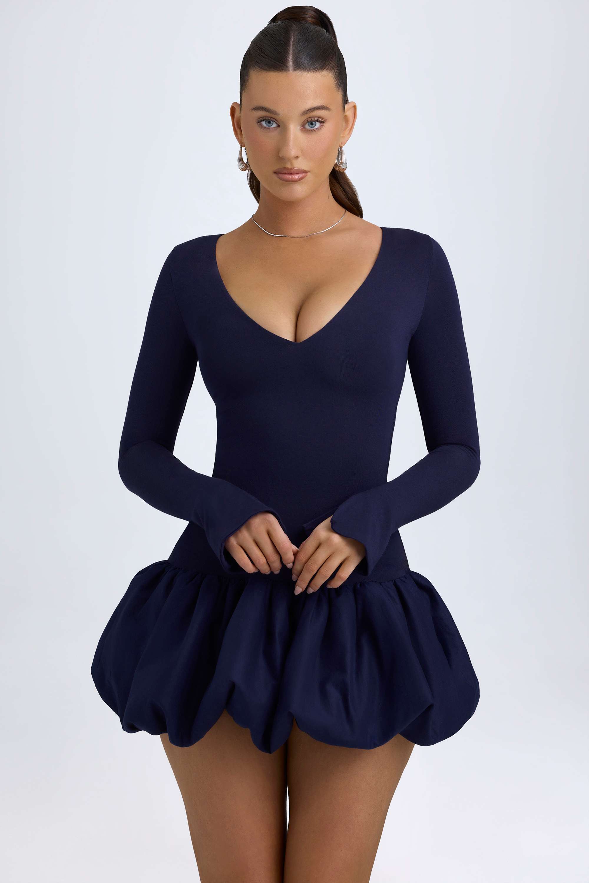 Modal Drop-Waist Bubble Hem Mini Dress in True Navy