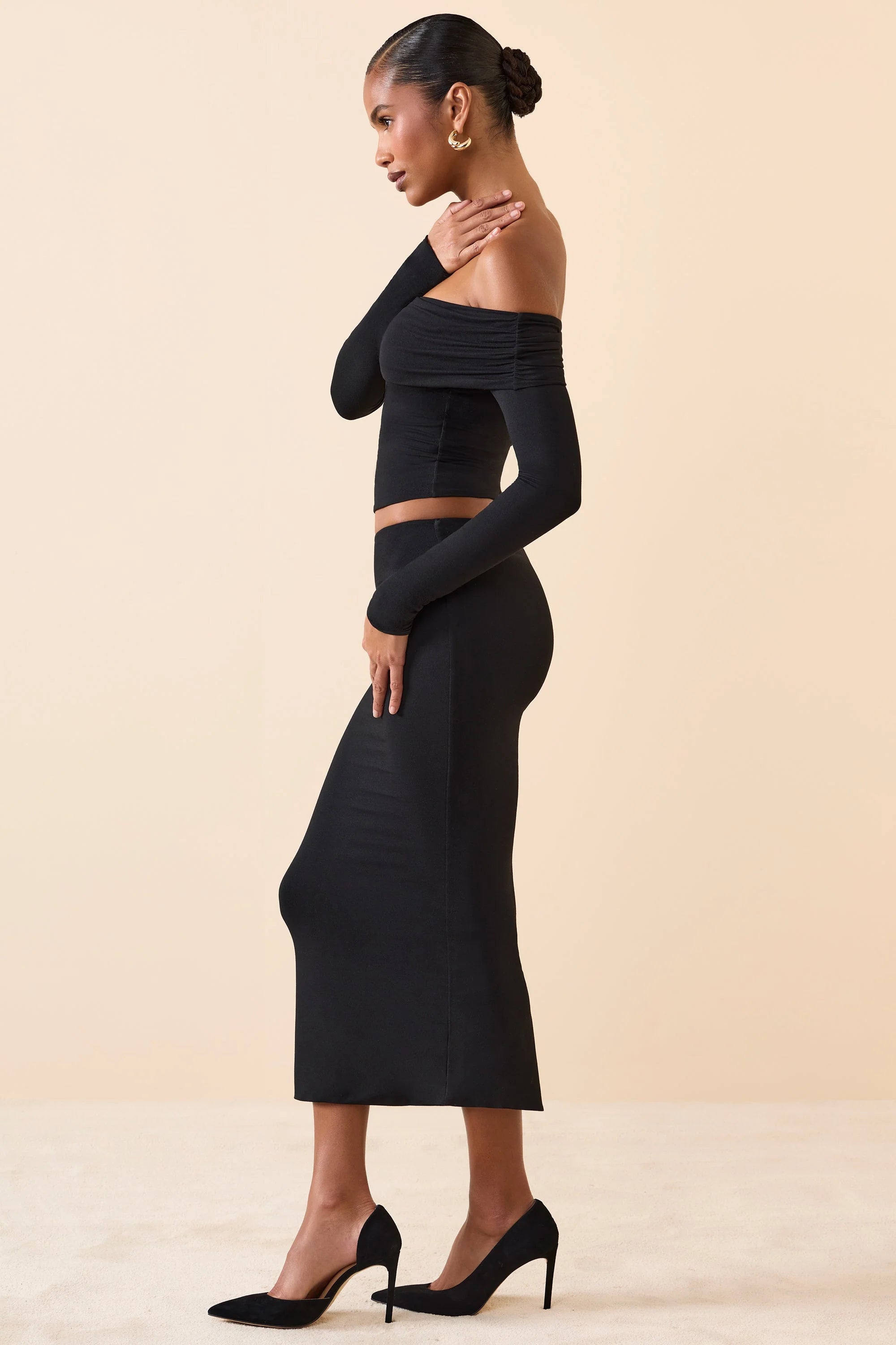 Keep it simple. A style you’ll have in your rotation for years to come, the Livvy midaxi skirt is crafted from our endlessly soft and stretchy premium jersey made with TENCEL™ Modal fibres, derived from controlled or certified wood sources. It’s cut to a subtle fishtail silhouette, set on a mid-rise elasticated waistband and features a centre-back split for ease of movement.