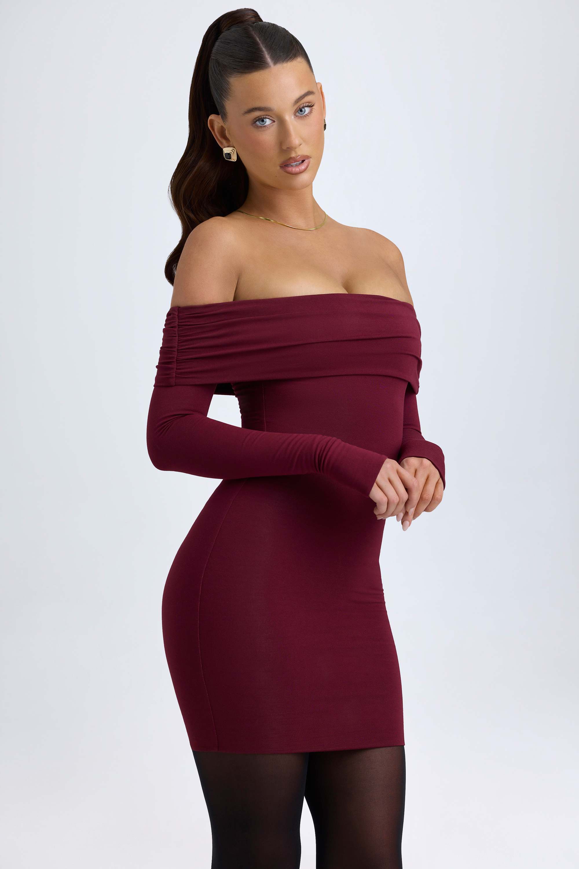 Statement staples. A style made for day-to-night plans, the Oriana mini dress is cut to an off-shoulder silhouette with a foldover ruched neckline. It features internal silicone tape for enhanced hold, is framed with fitted long sleeves, and is crafted from our premium, buttery soft and stretchy jersey made with TENCEL™ Modal fibres, derived from controlled or certified wood sources.