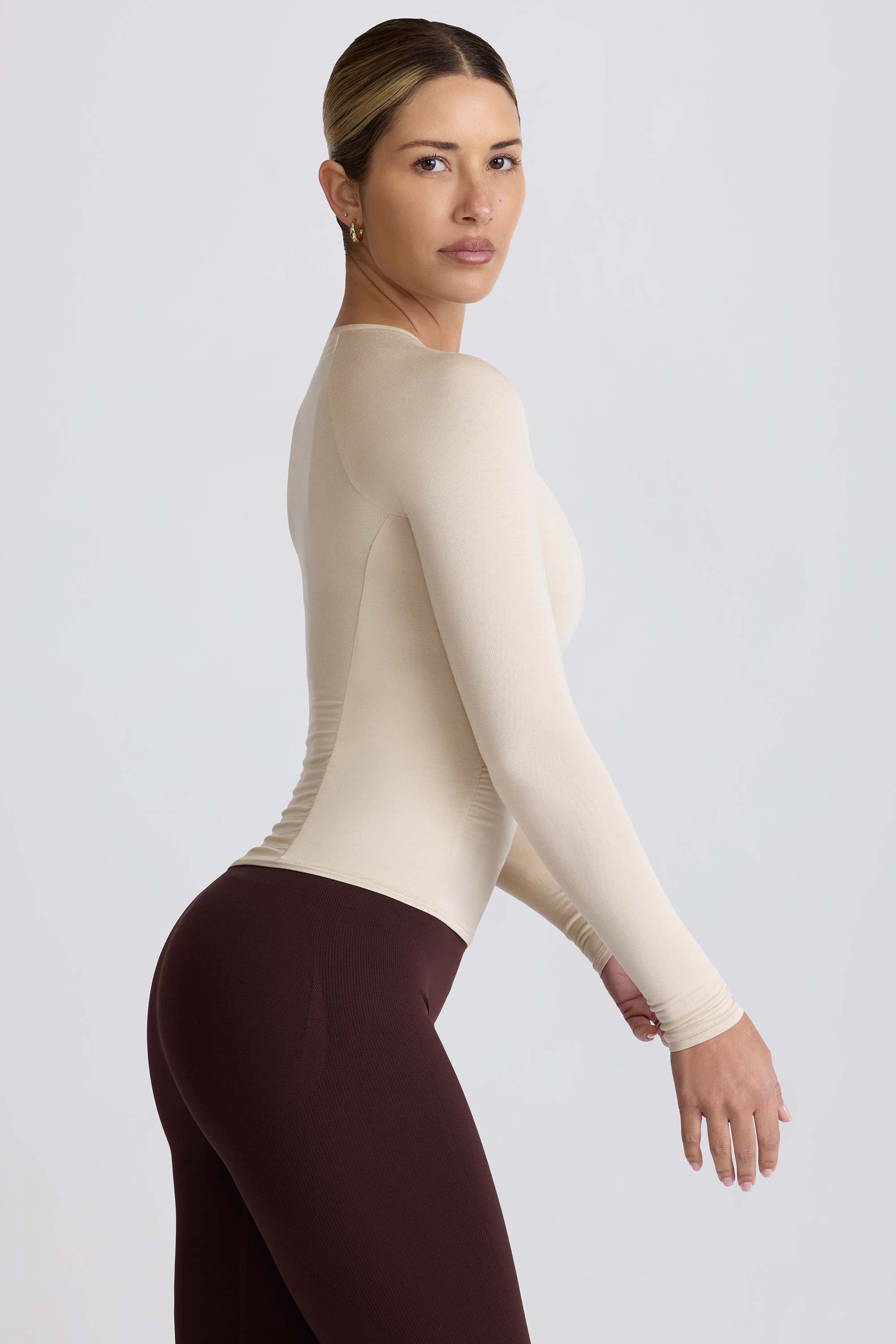 The perfect layering piece, this long-sleeve top will quickly become a wardrobe staple. Designed to lightly cinch and sculpt without feeling restrictive, it’s designed with precise ruching at each side and features classic raglan long sleeves. It’s crafted from buttery smooth and stretchy jersey made with TENCEL™ Modal fibres that support a natural dry feeling through moisture control and long-lasting softness. Made for year-round wear, it doubles as a breathable base layer.