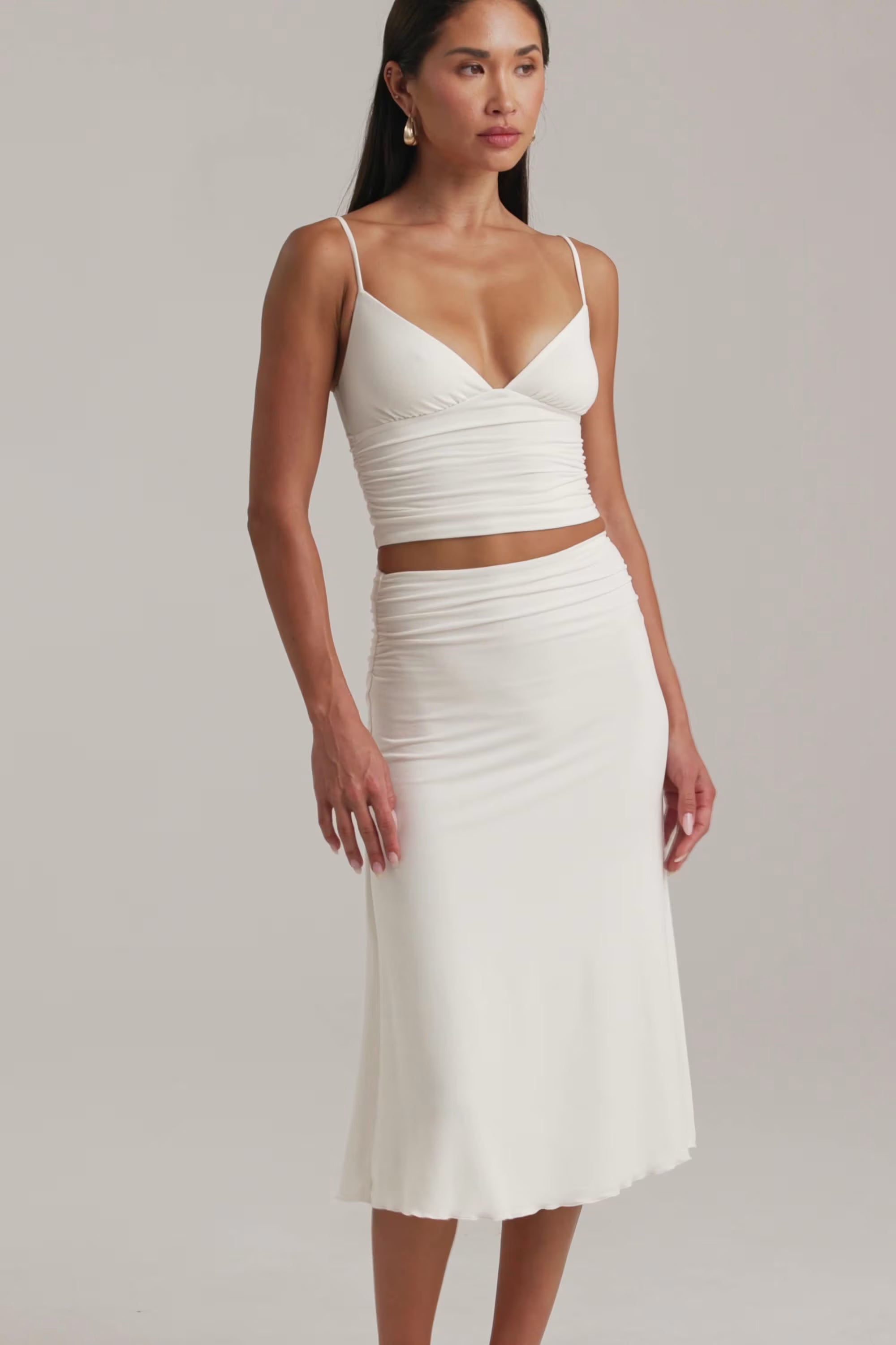 Modal Ruched Mid-Rise Midaxi Skirt in White