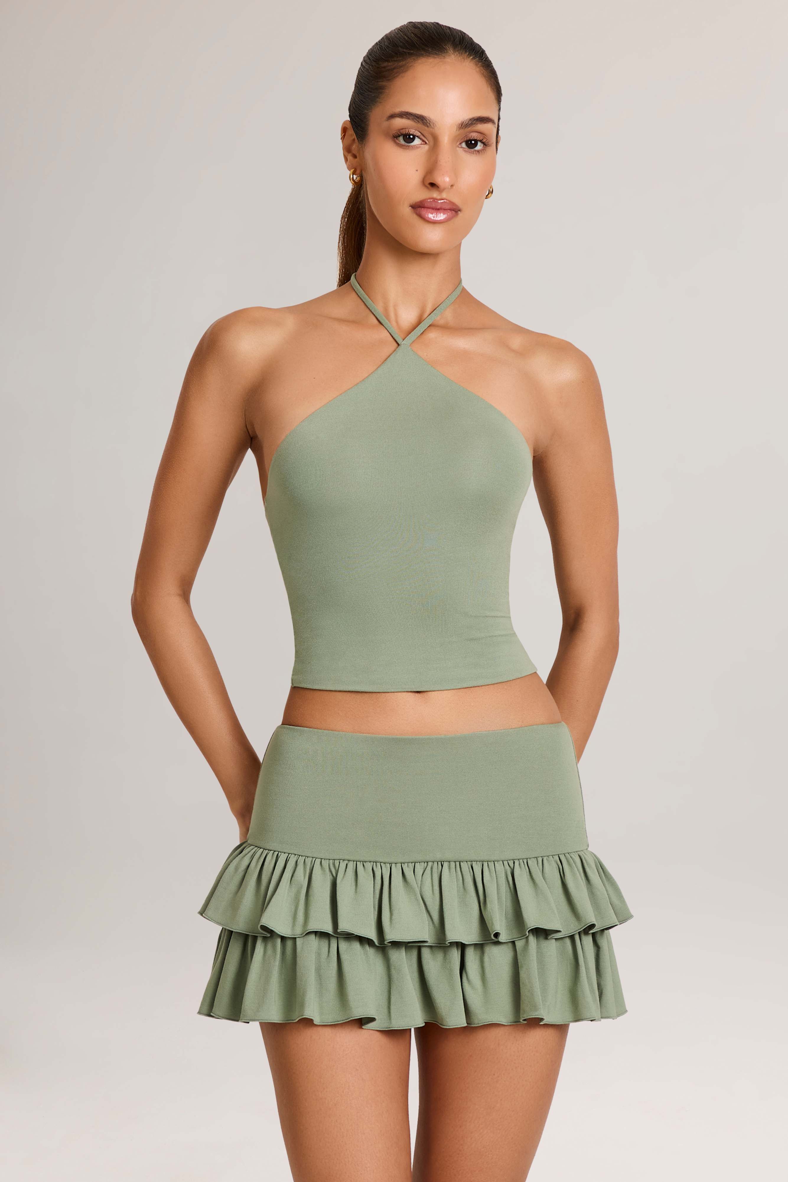 Modal Ruffle Mid-Rise Mini Skort in Sage Green