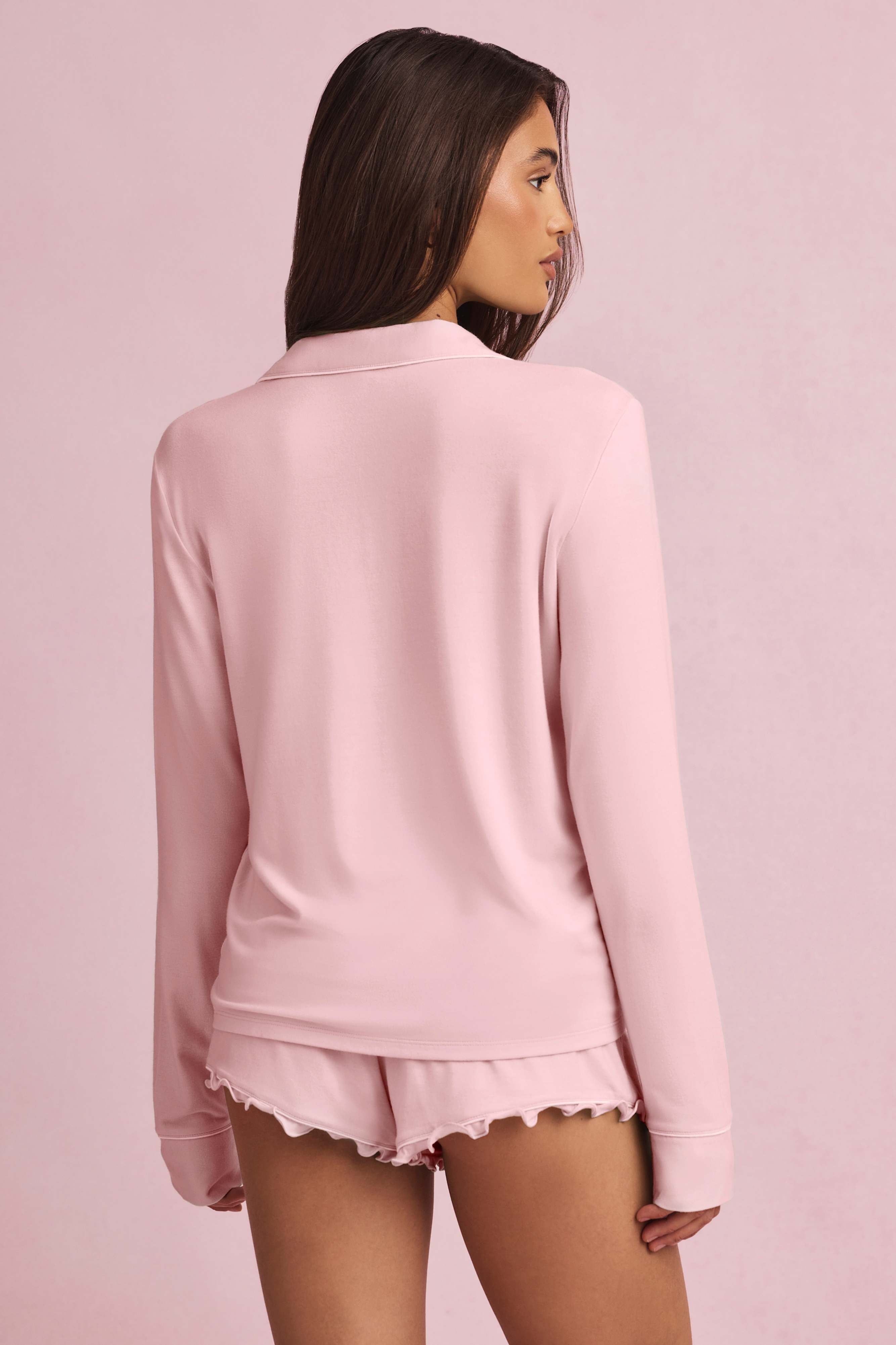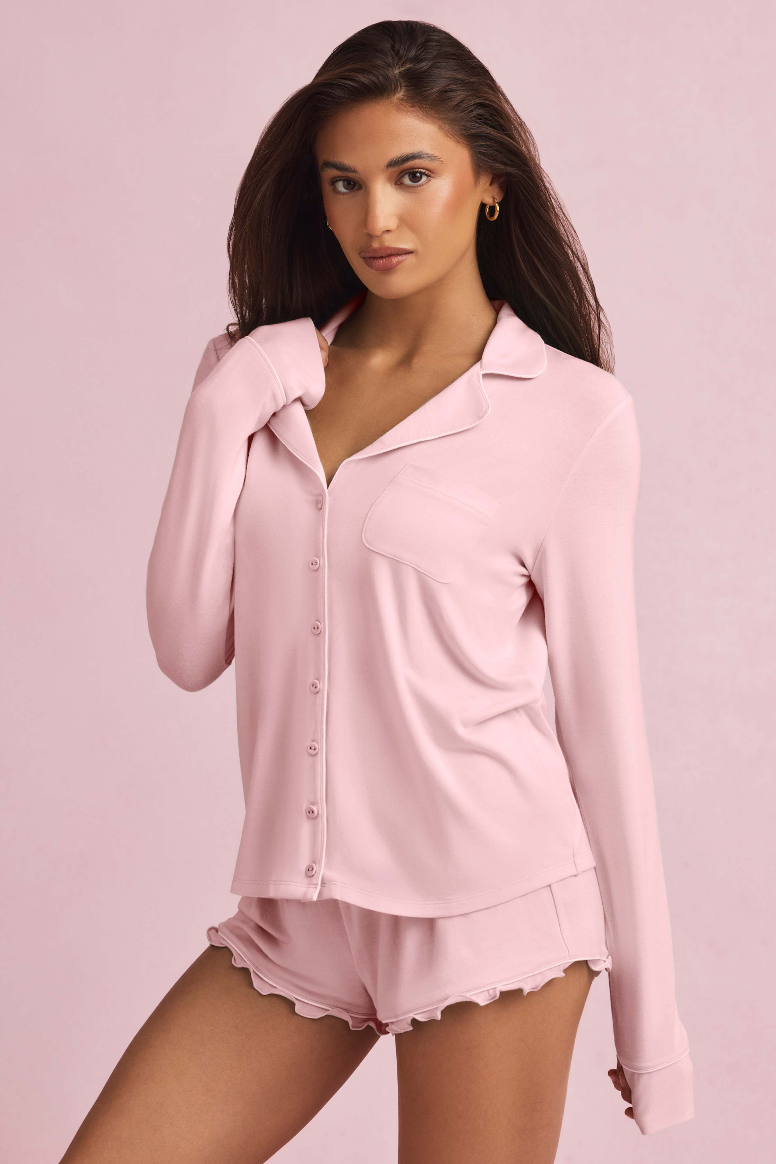 Modal Ruffle-Trim Pyjama Shorts in Baby Pink