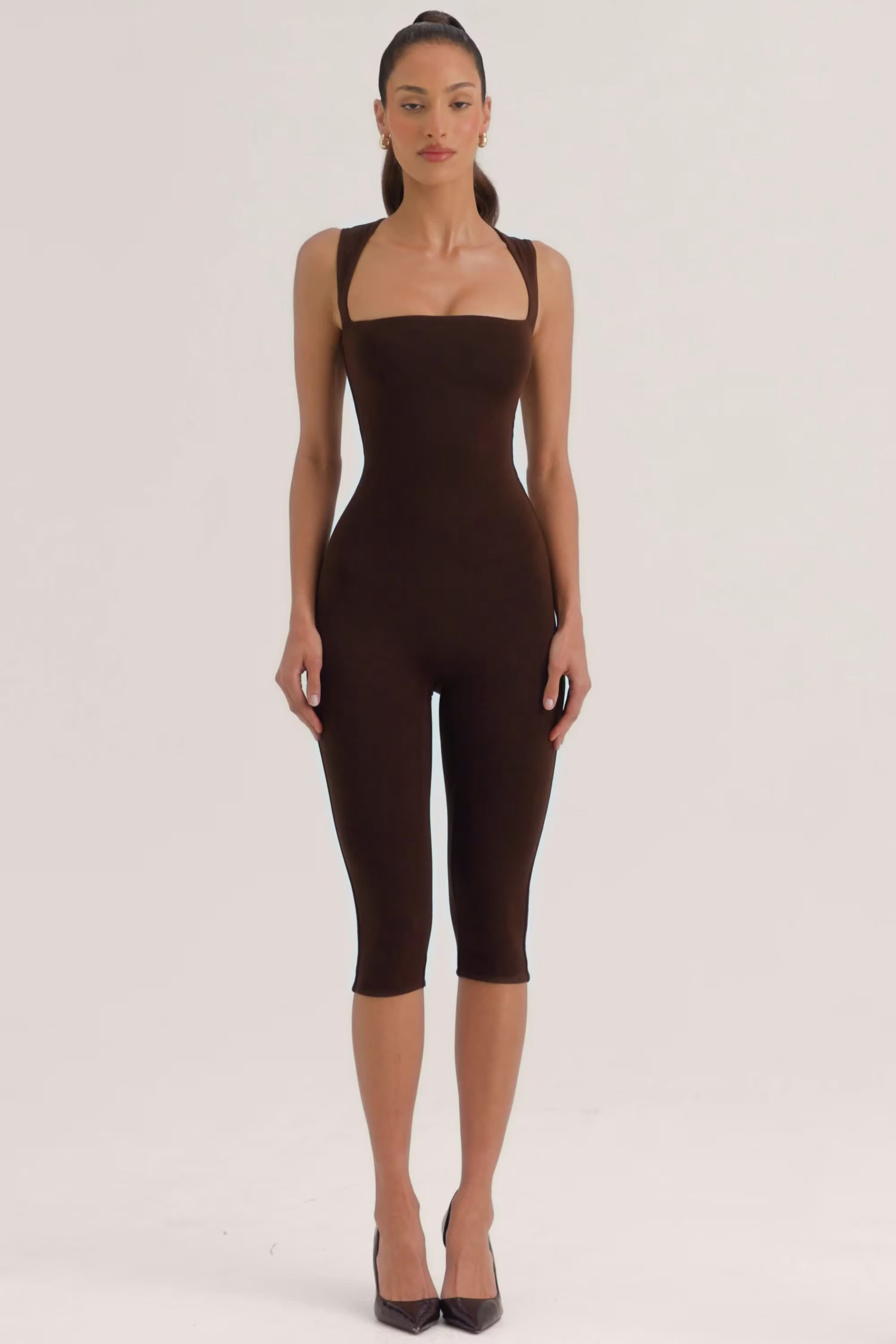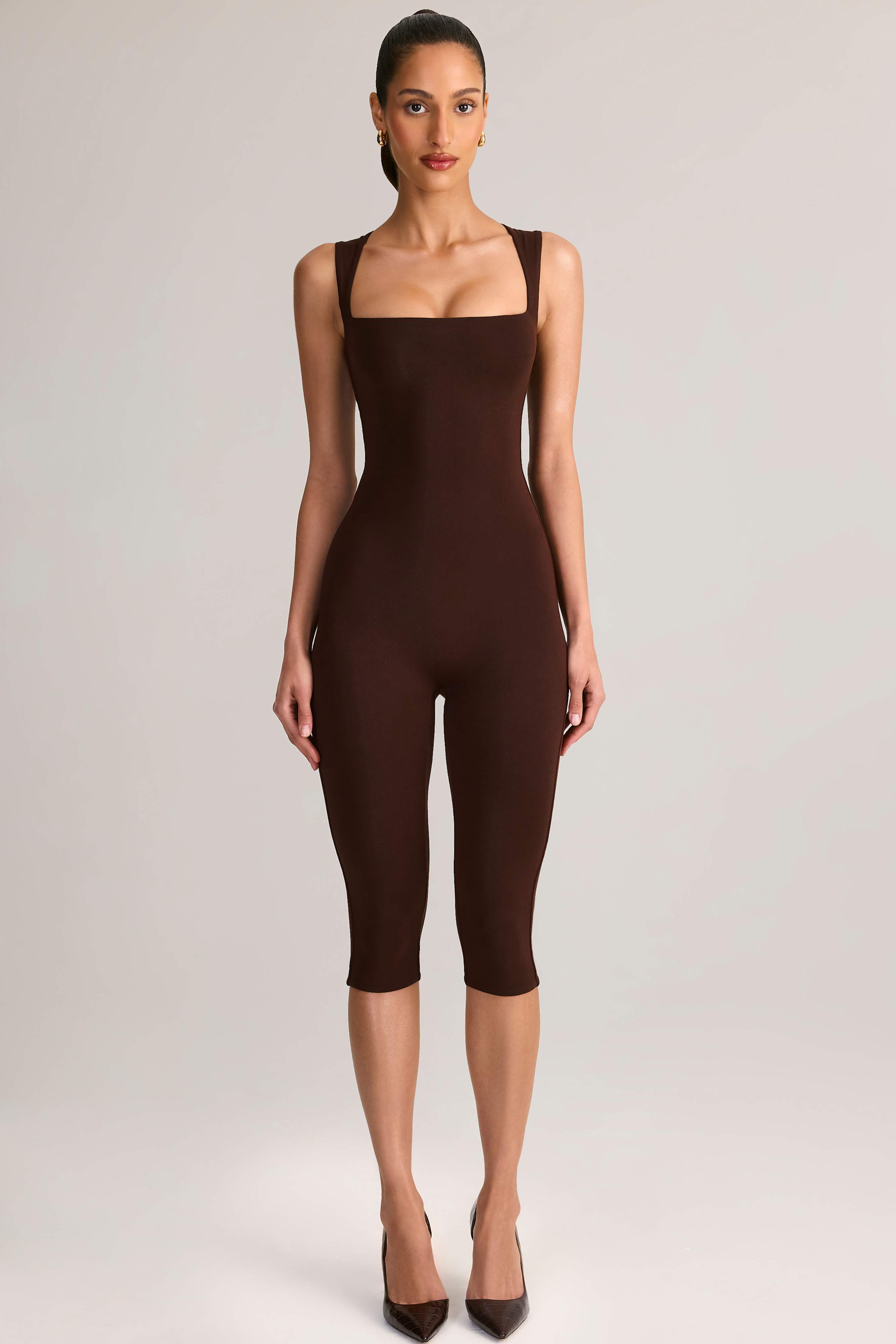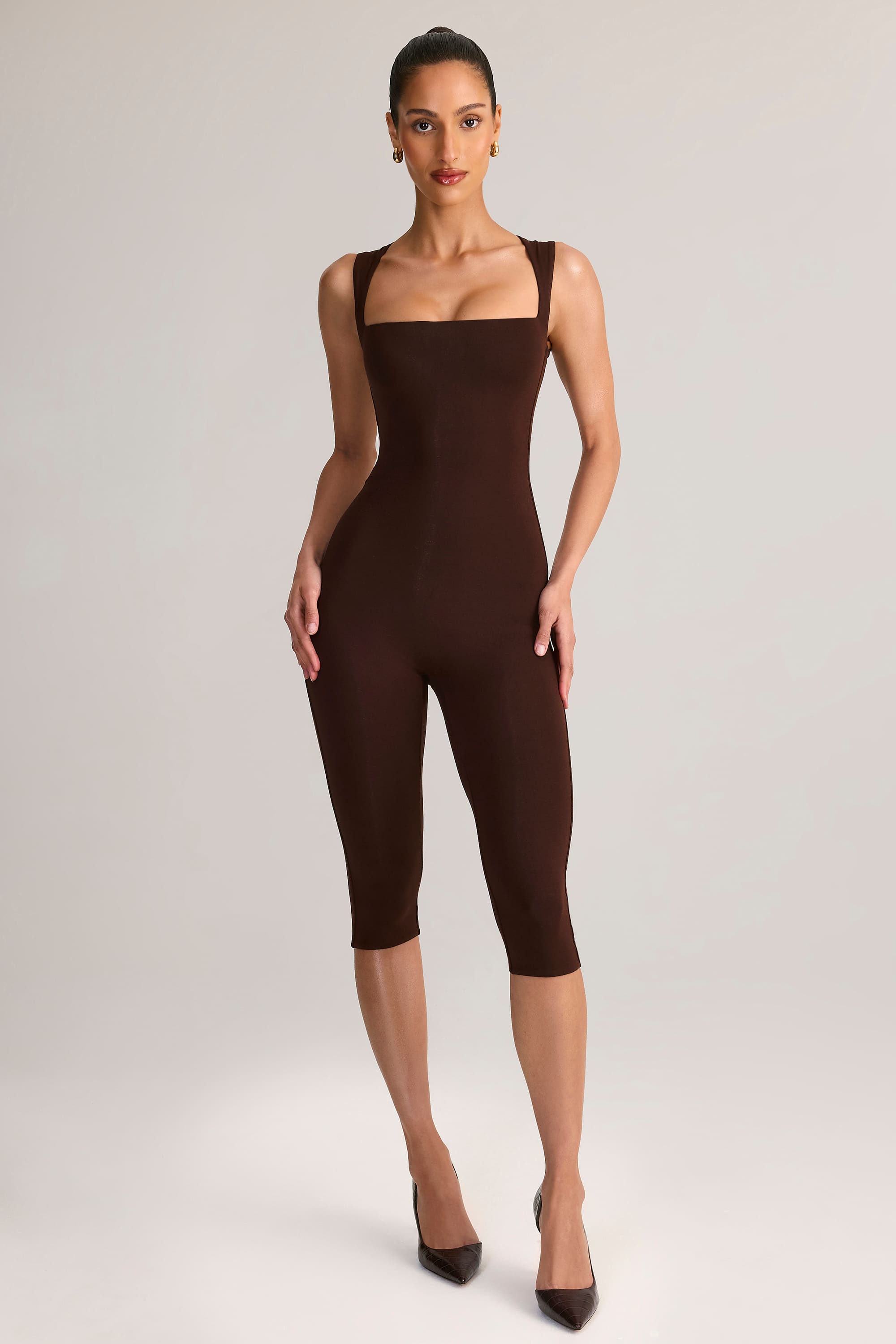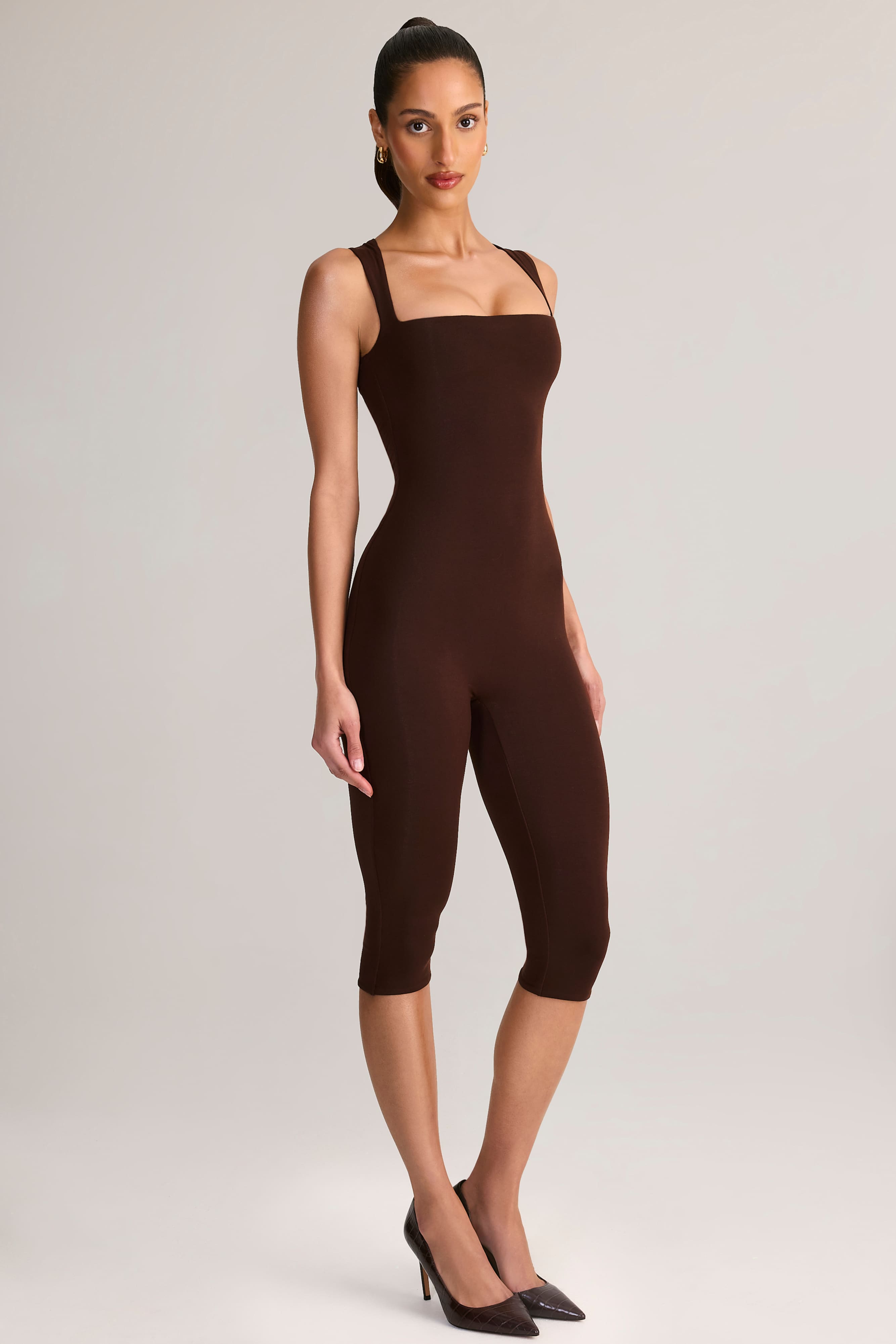Modal Square-Neck Capri Jumpsuit in Chocolate Brown