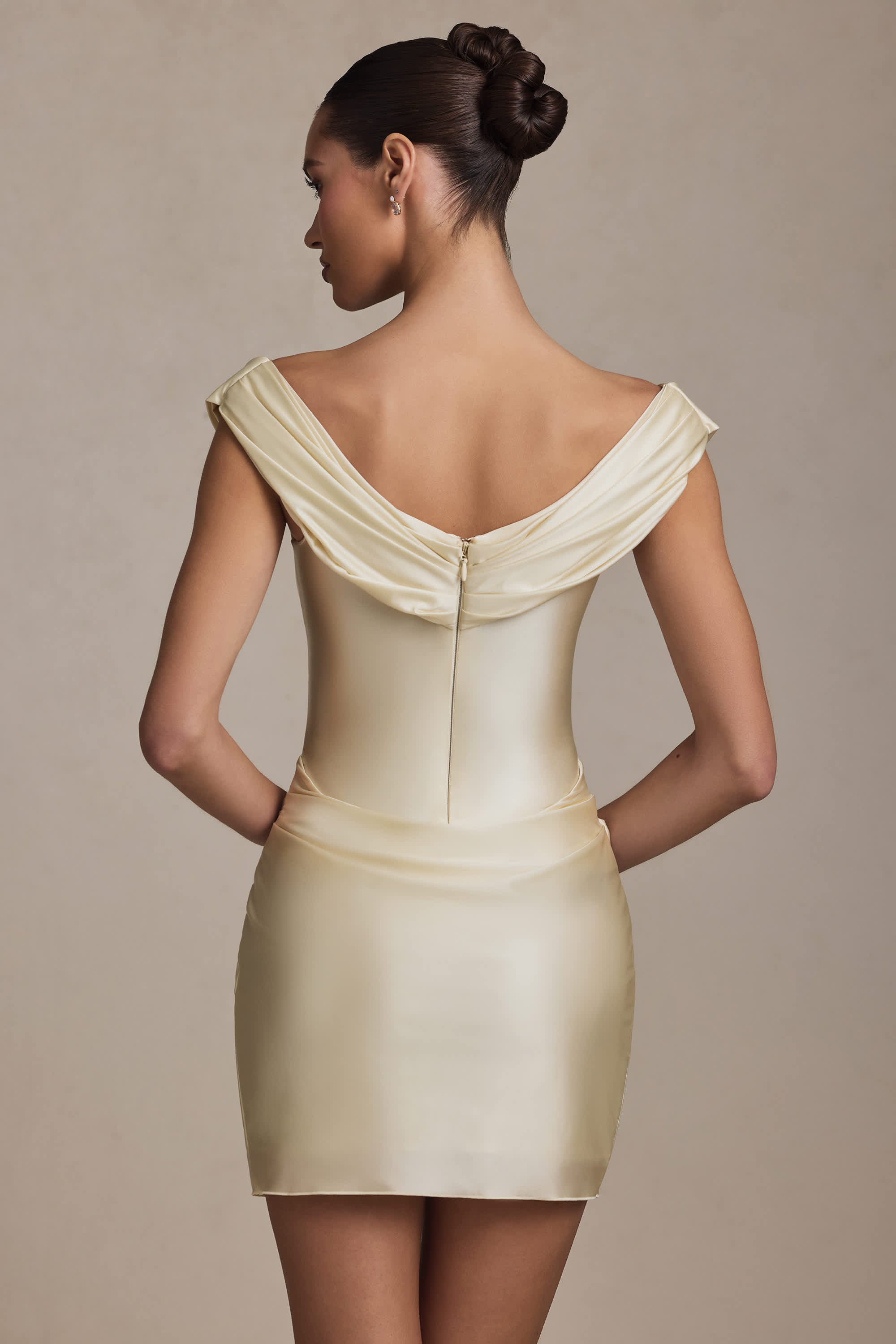 If you love classic silhouettes as much as we do, you’ll love the Maeve mini dress. Crafted from premium high-shine jersey to a figure-defining bodycon silhouette, it features a unique built-in bodysuit for a little extra support and a draped skirt overlay for a universally flattering fit. It’s framed with a cowl neck and dramatic off-shoulder sleeves that add a touch of sultry glamour.