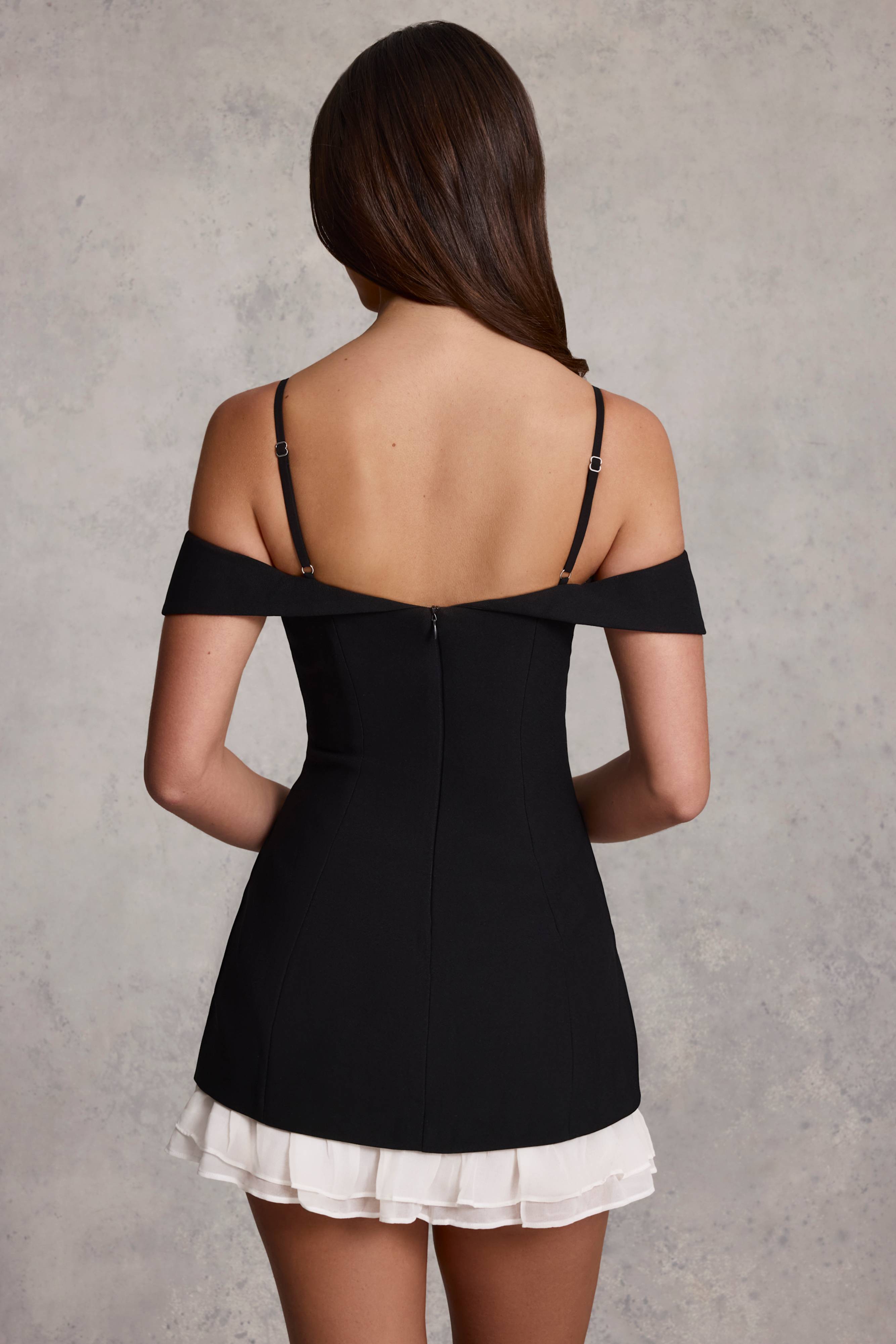 The Maelie mini dress delivers scene-stealing style. Crafted from premium crepe fabric in an off-shoulder design, it’s cut to an A-line silhouette with a faux-button placket and zip-back fastening for easy styling from day to night. Finished with an elegant contrasting ruffle trim, it’s effortlessly chic.