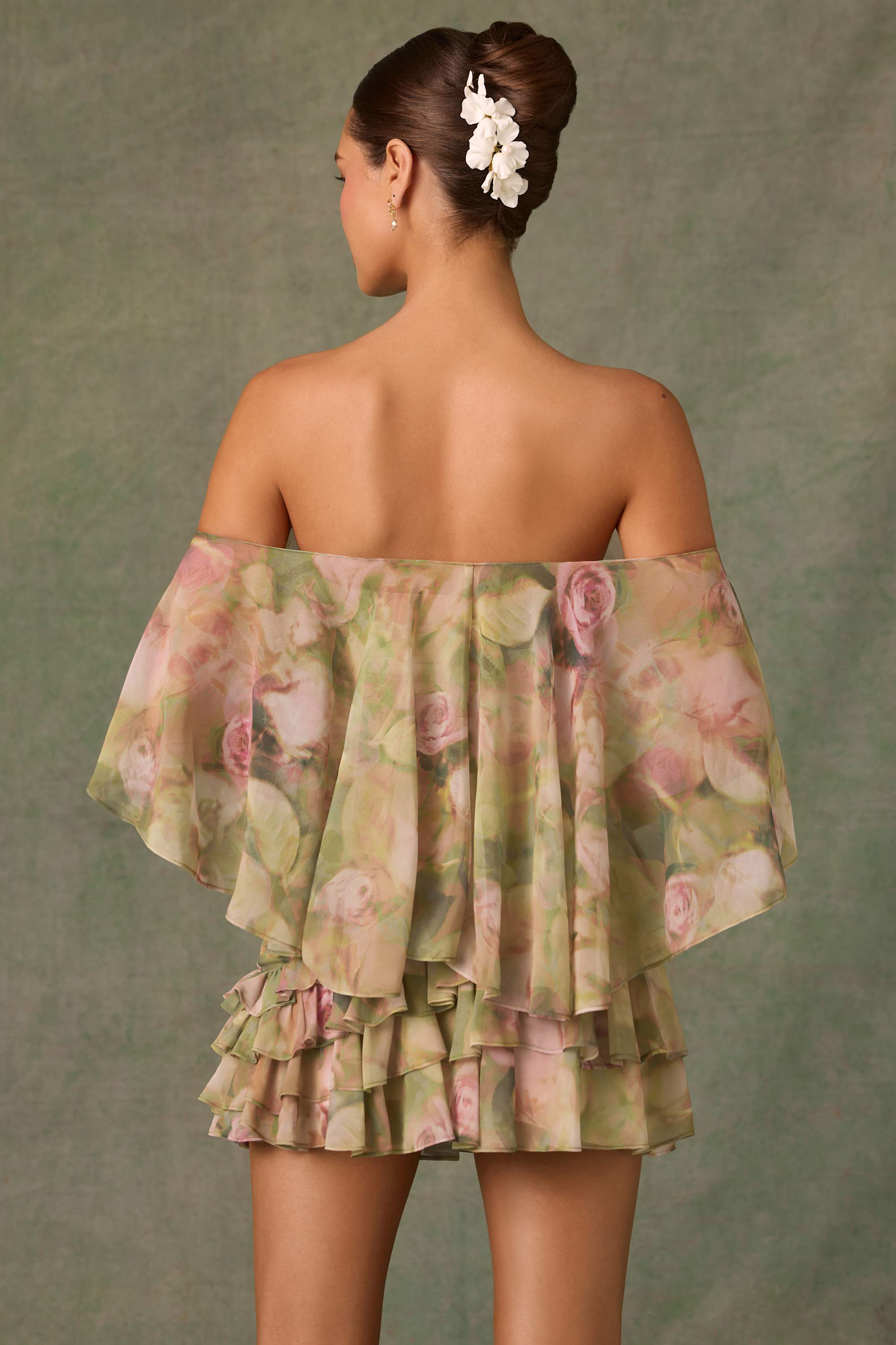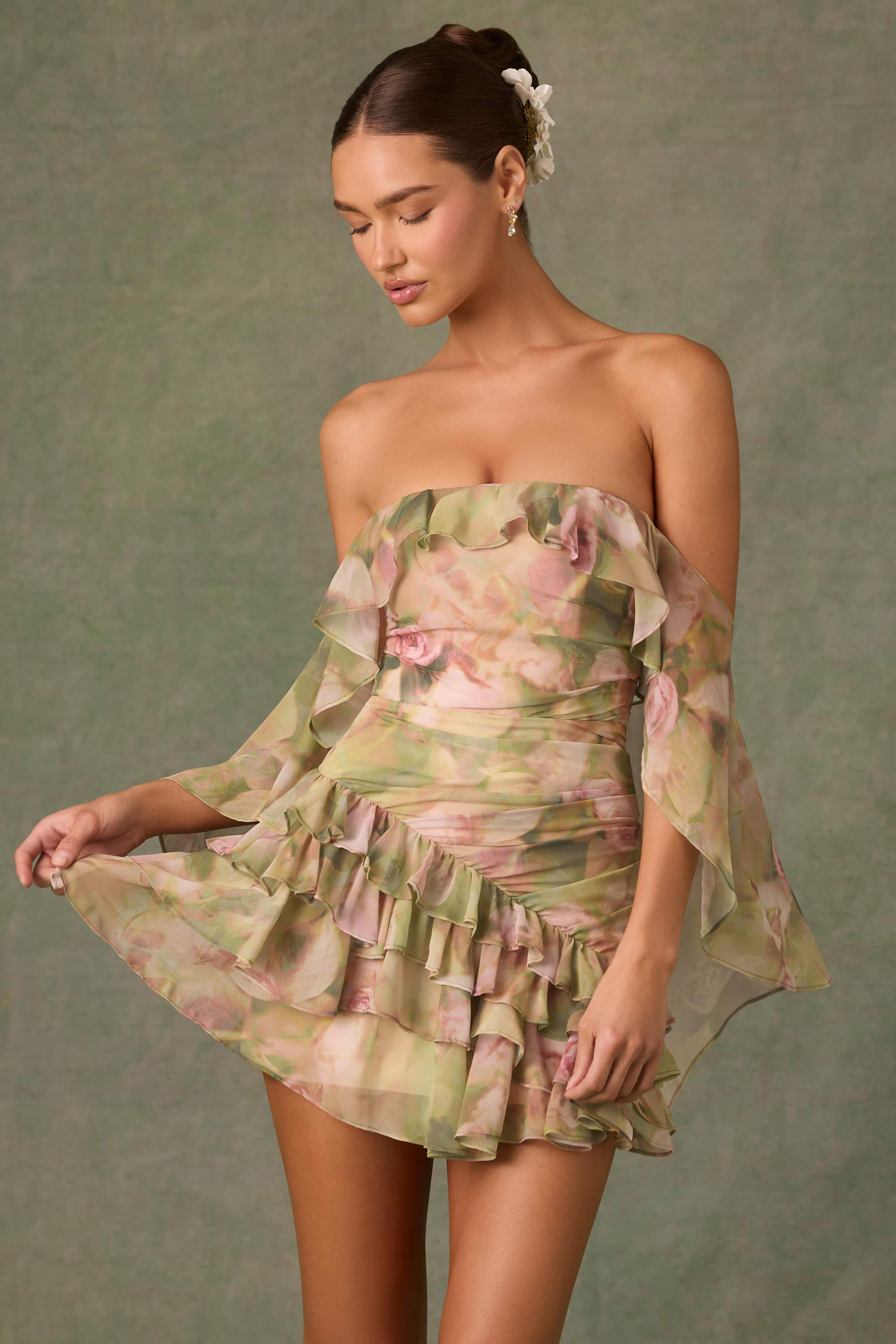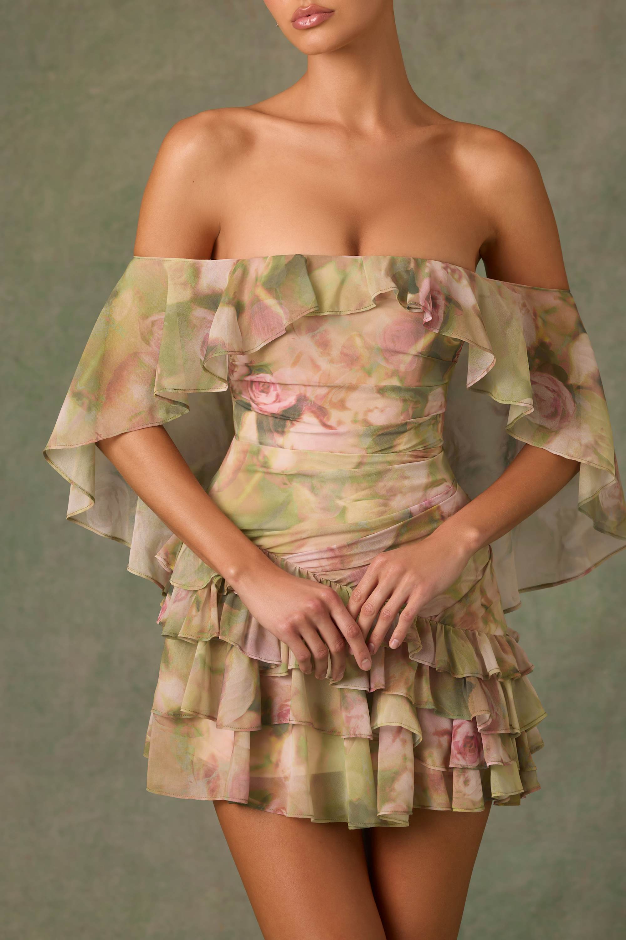Off-Shoulder Ruffled Mini Dress in Floral Multi Print