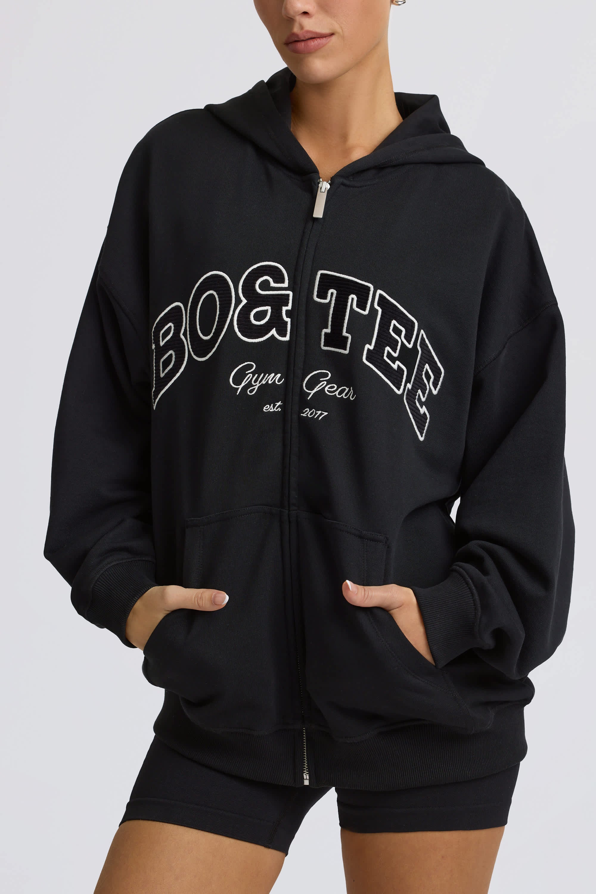 A style you’ll live in on well-earned rest days, this hoodie is crafted from breathable, brushed cotton jersey with a loop back lining for enhanced comfort (and warmth). It’s cut to a relaxed, oversized silhouette with dropped shoulders and features a classic kangaroo pocket at the front. The appliquéd Bo&Tee is a signature finishing touch.