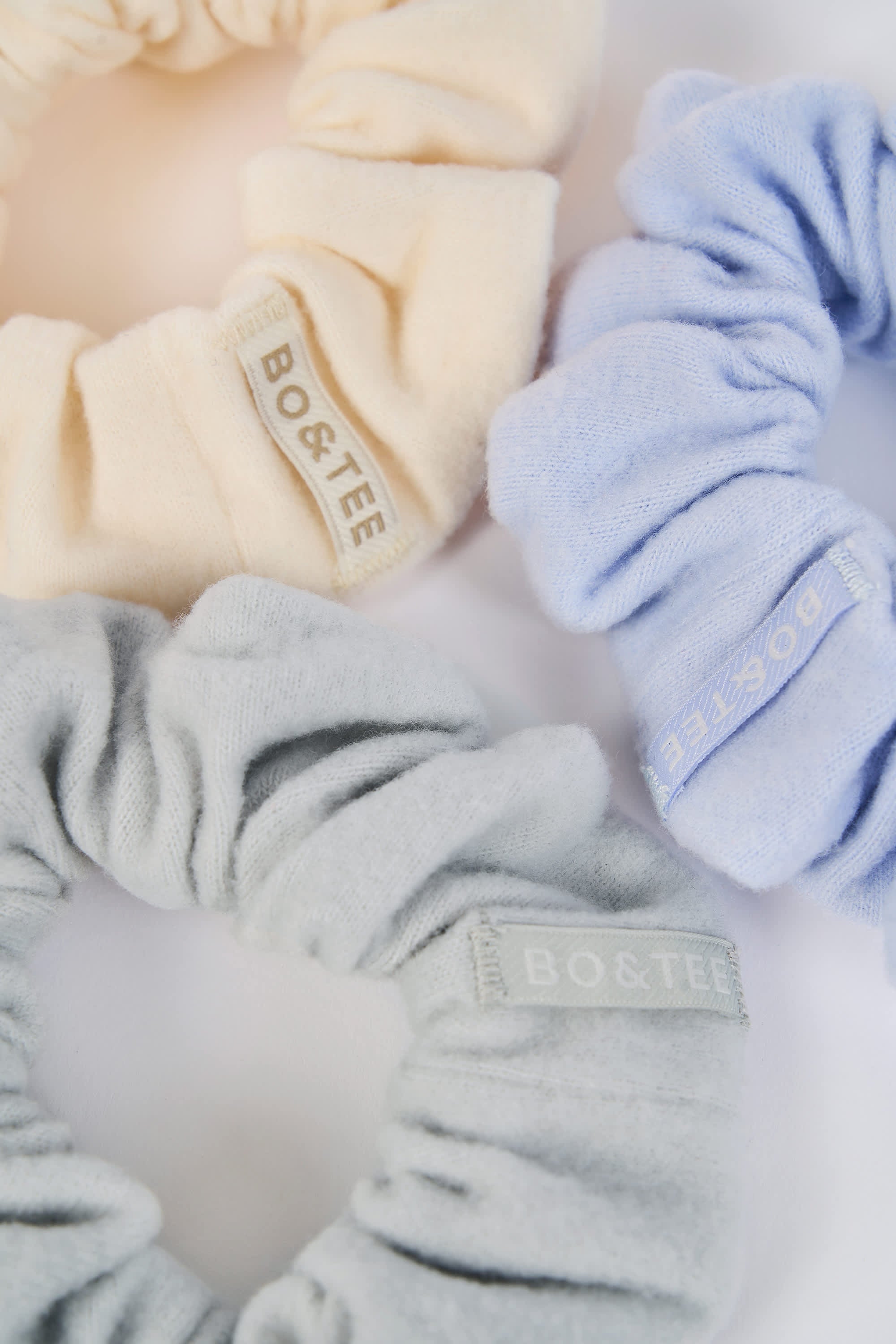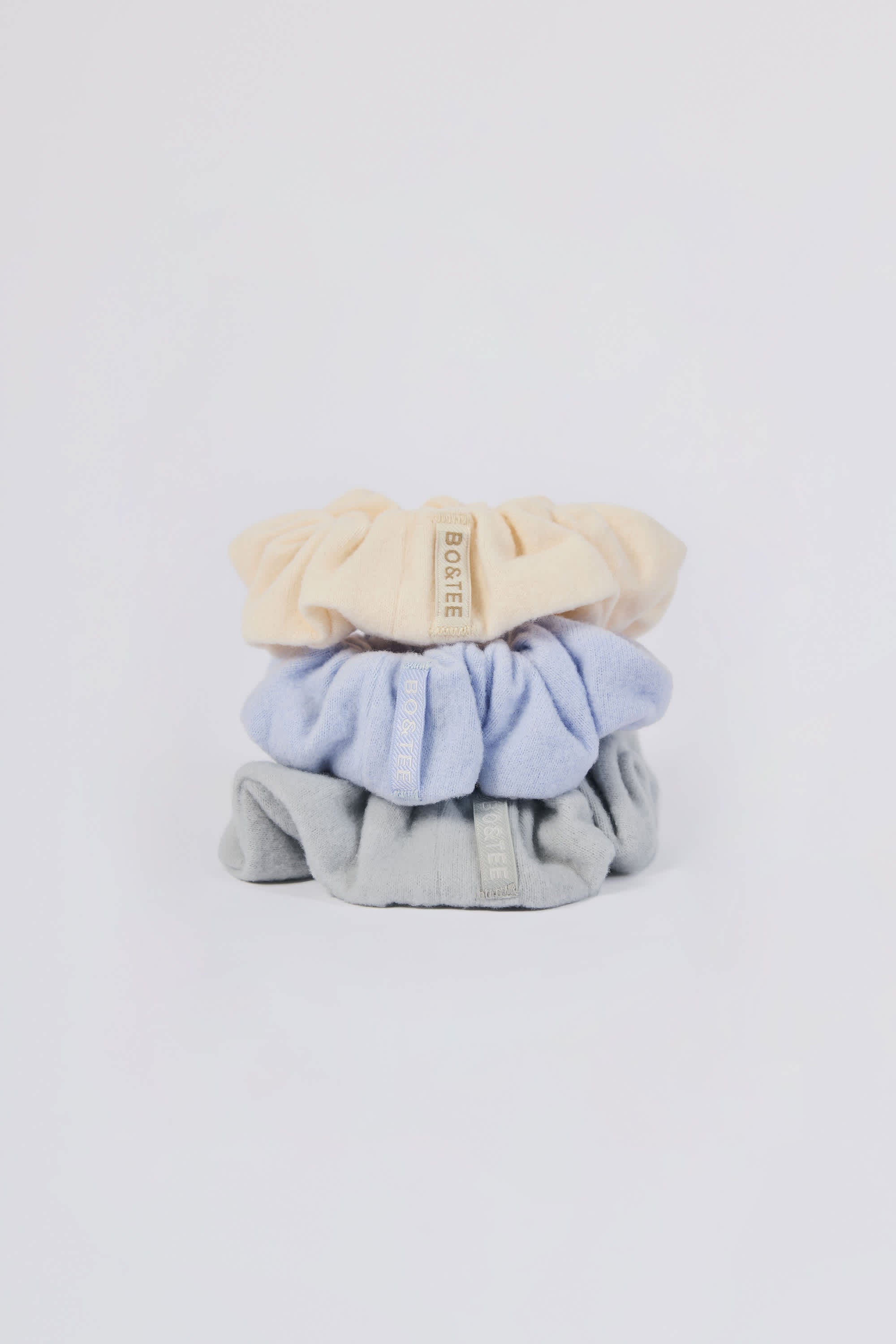 The perfect finishing touch. Elevate your rest day looks with this pack of three scrunchies, made from super soft brushed jersey in coordinating hues, to pair back perfectly with our off-duty favourites. Theyโre designed to an oversized shape, lightly ruched to minimise pulling when creating your everyday styles, and tagged with a signature Bo+Tee logo.