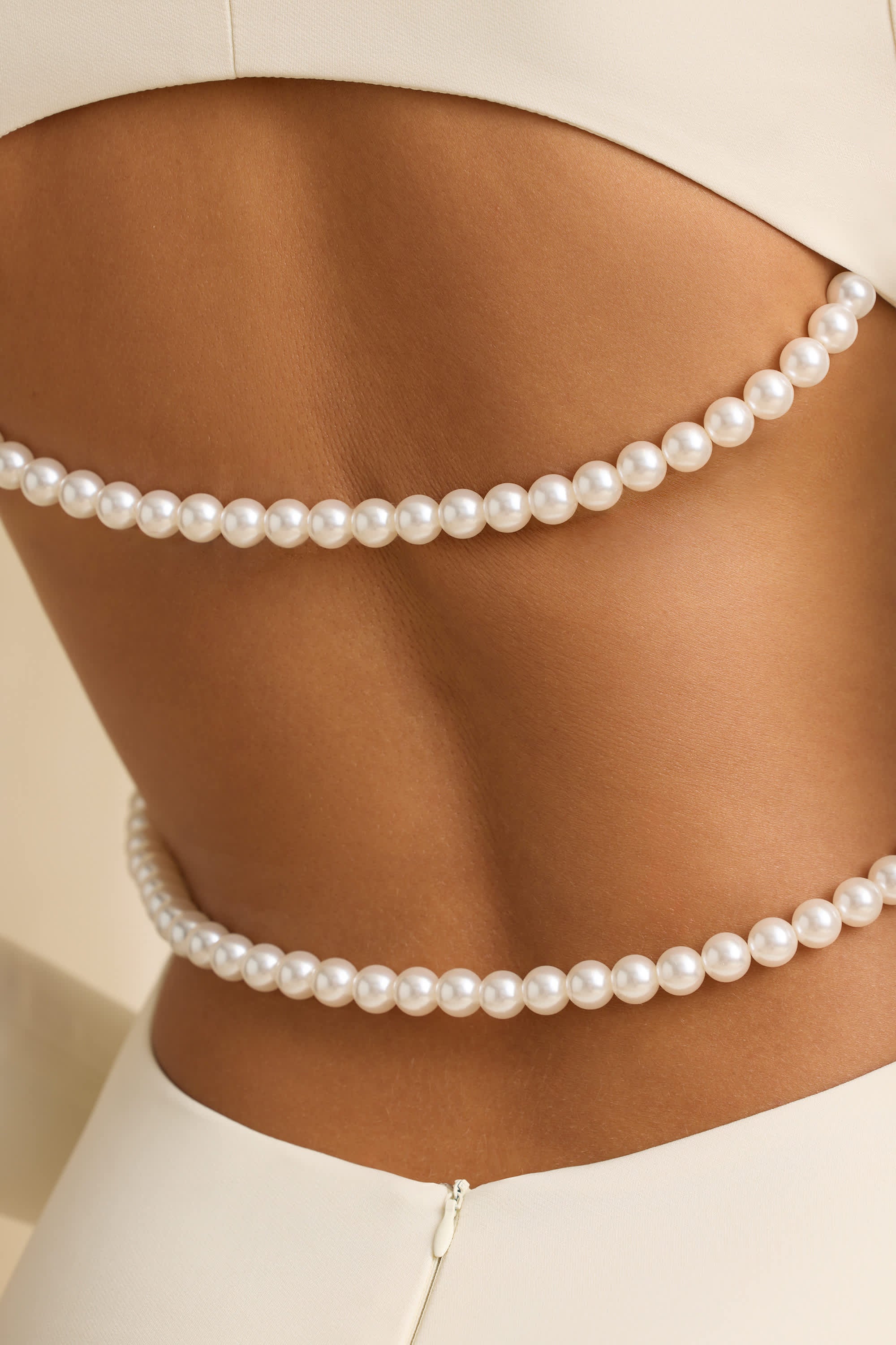 Pearl-Detail Cut-Out Mini Dress in Ivory