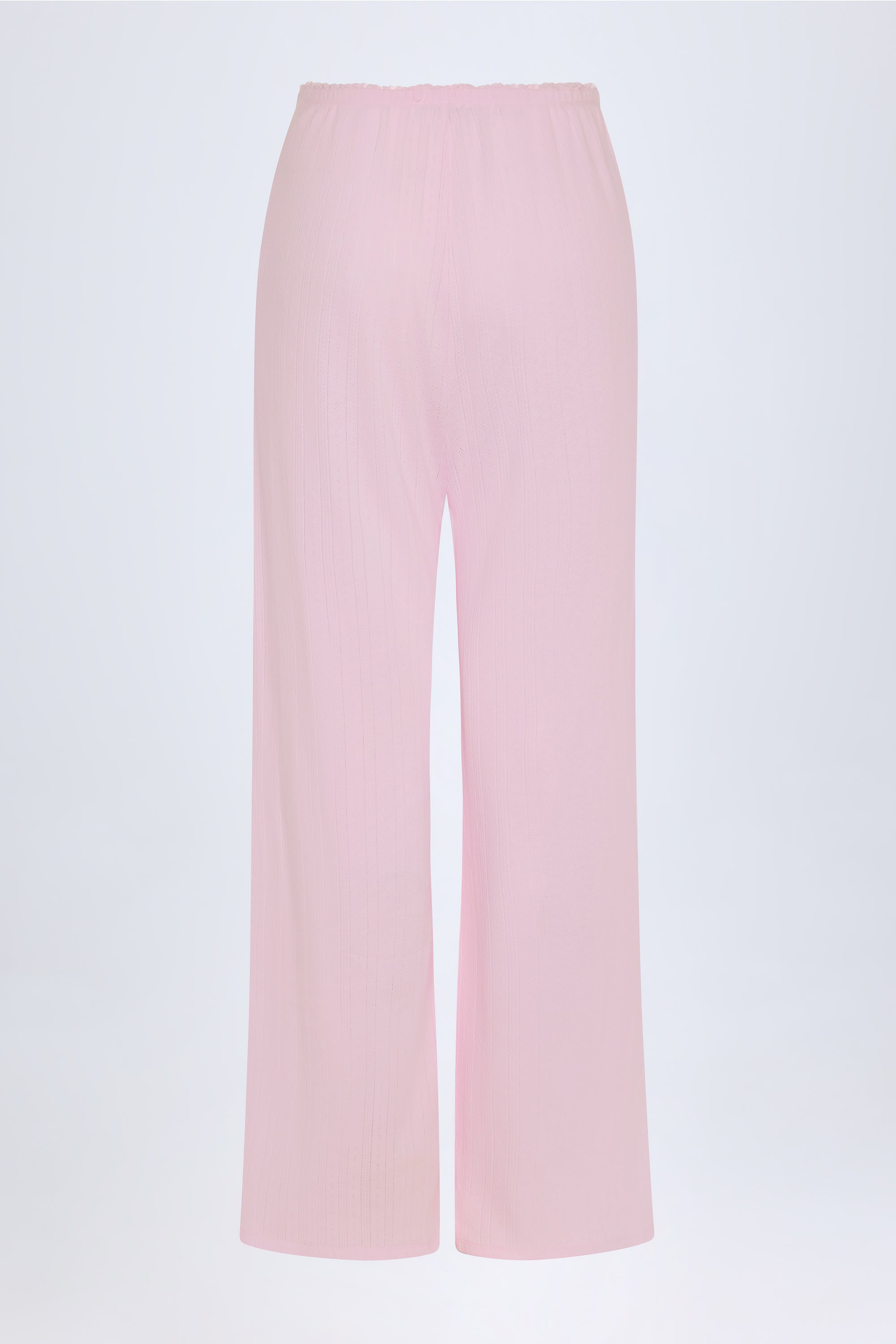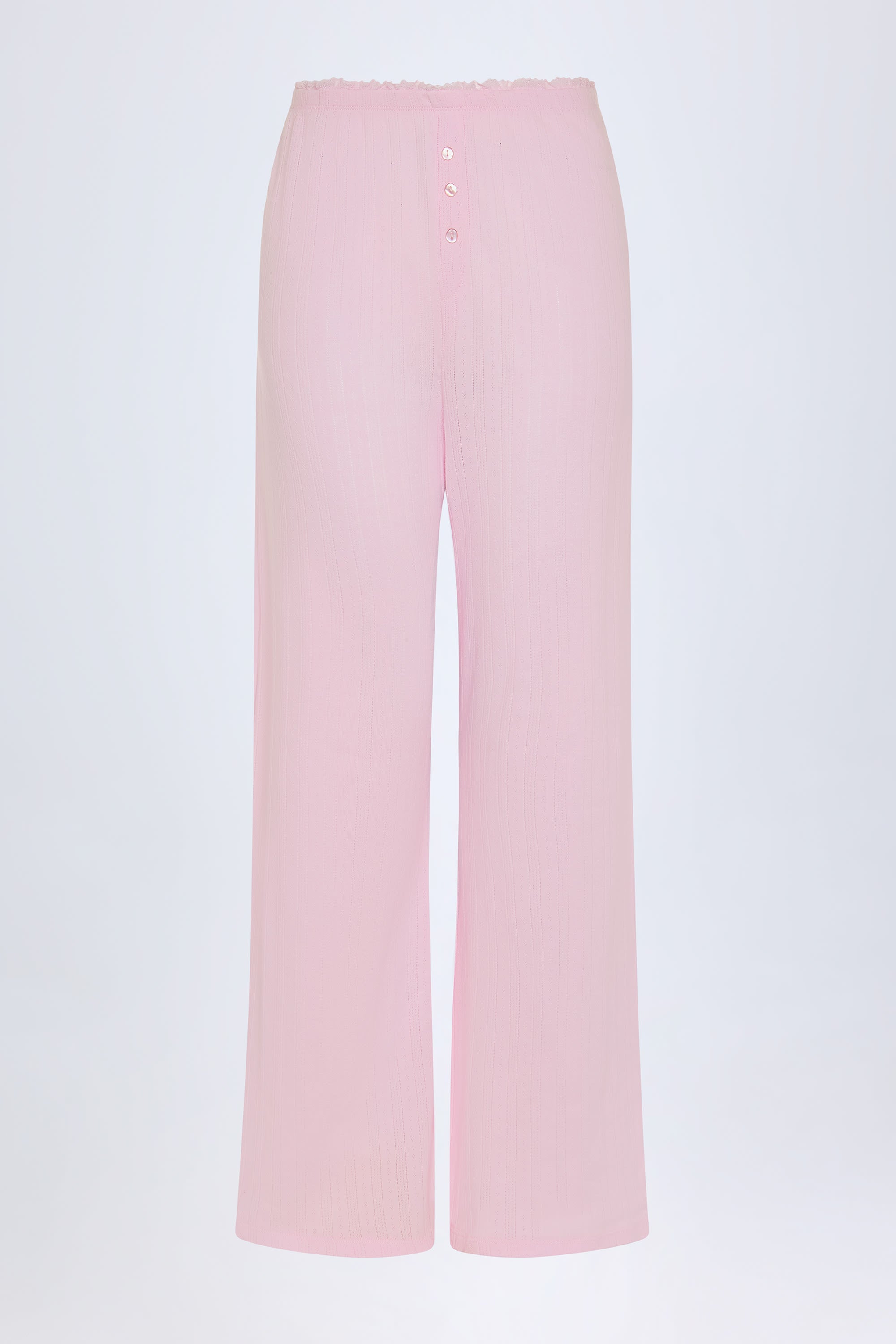 Soft girl summer. A comfortable style made for slipping into on slow mornings and relaxed afternoons, the Libby straight-leg trousers are crafted from soft and stretchy cotton jersey with a delicate pointelle texture. Designed for a universally flattering mid-rise fit, theyโre set on an elasticated waistband with a button-front fly and pretty picot lace trims.