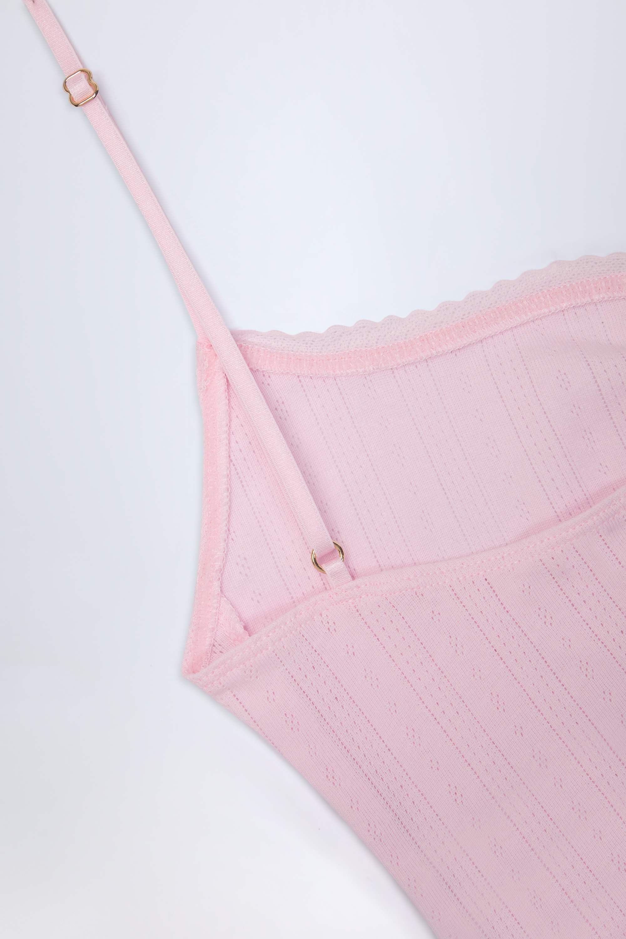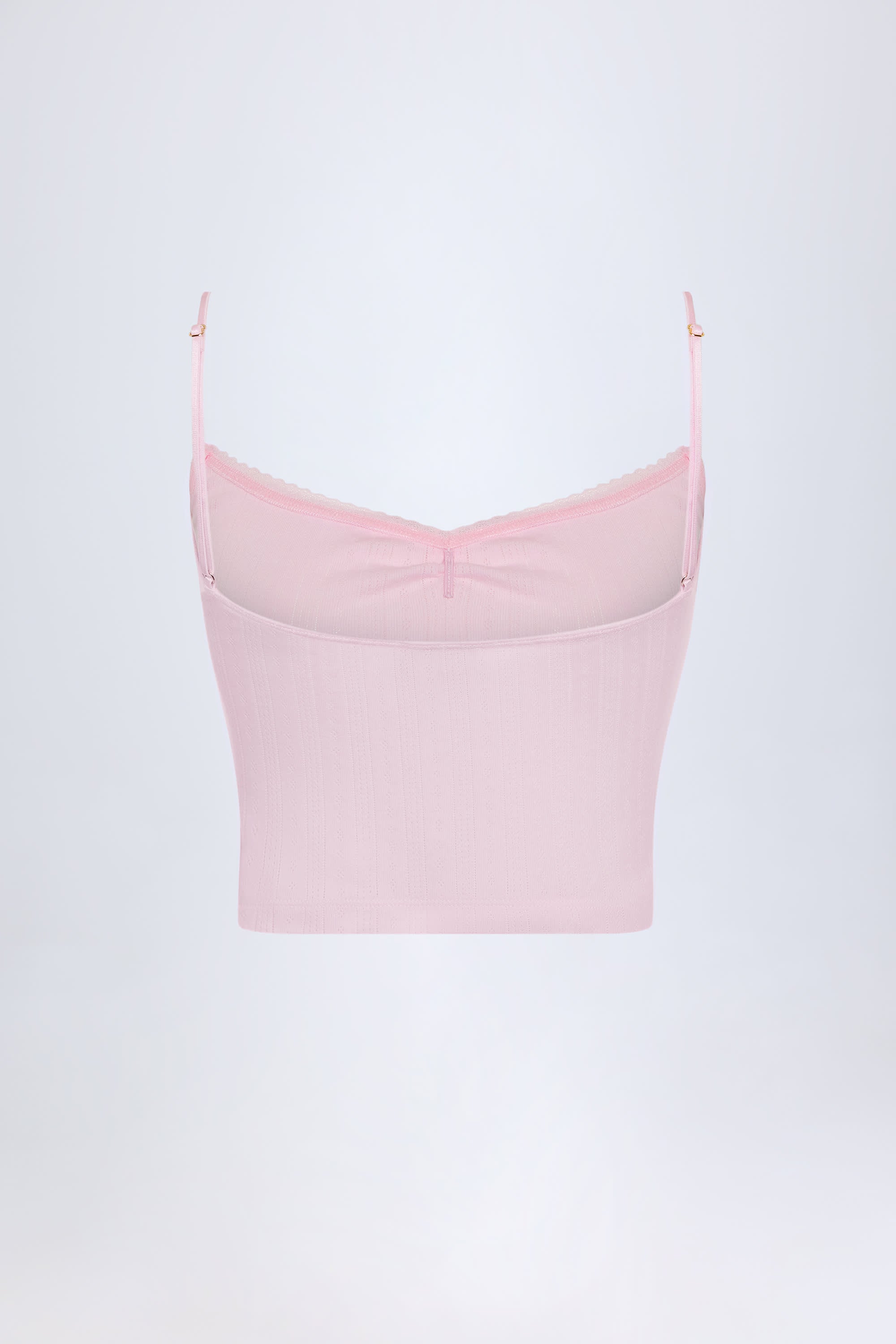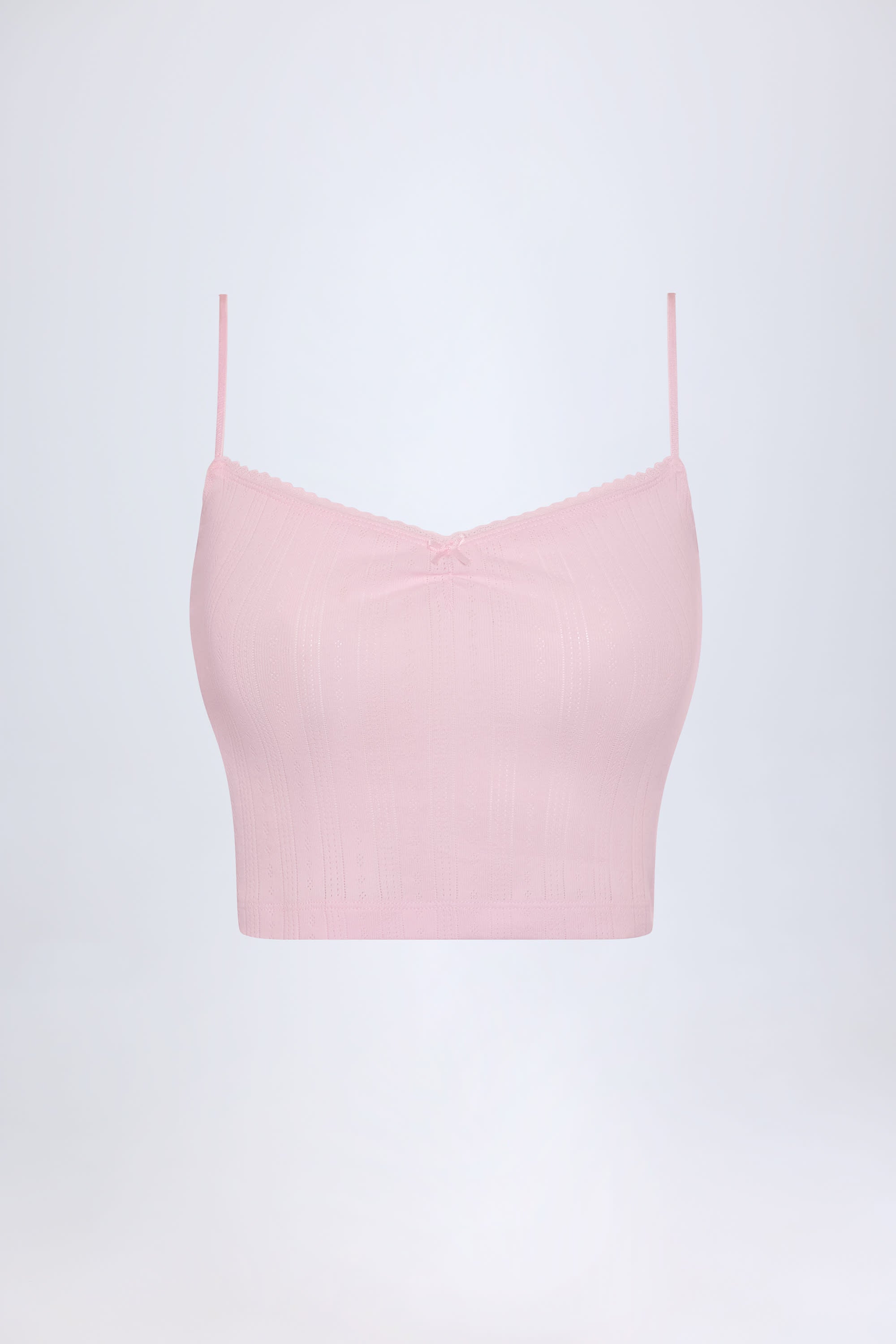 Pointelle Ruched Camisole Crop Top in Baby Pink