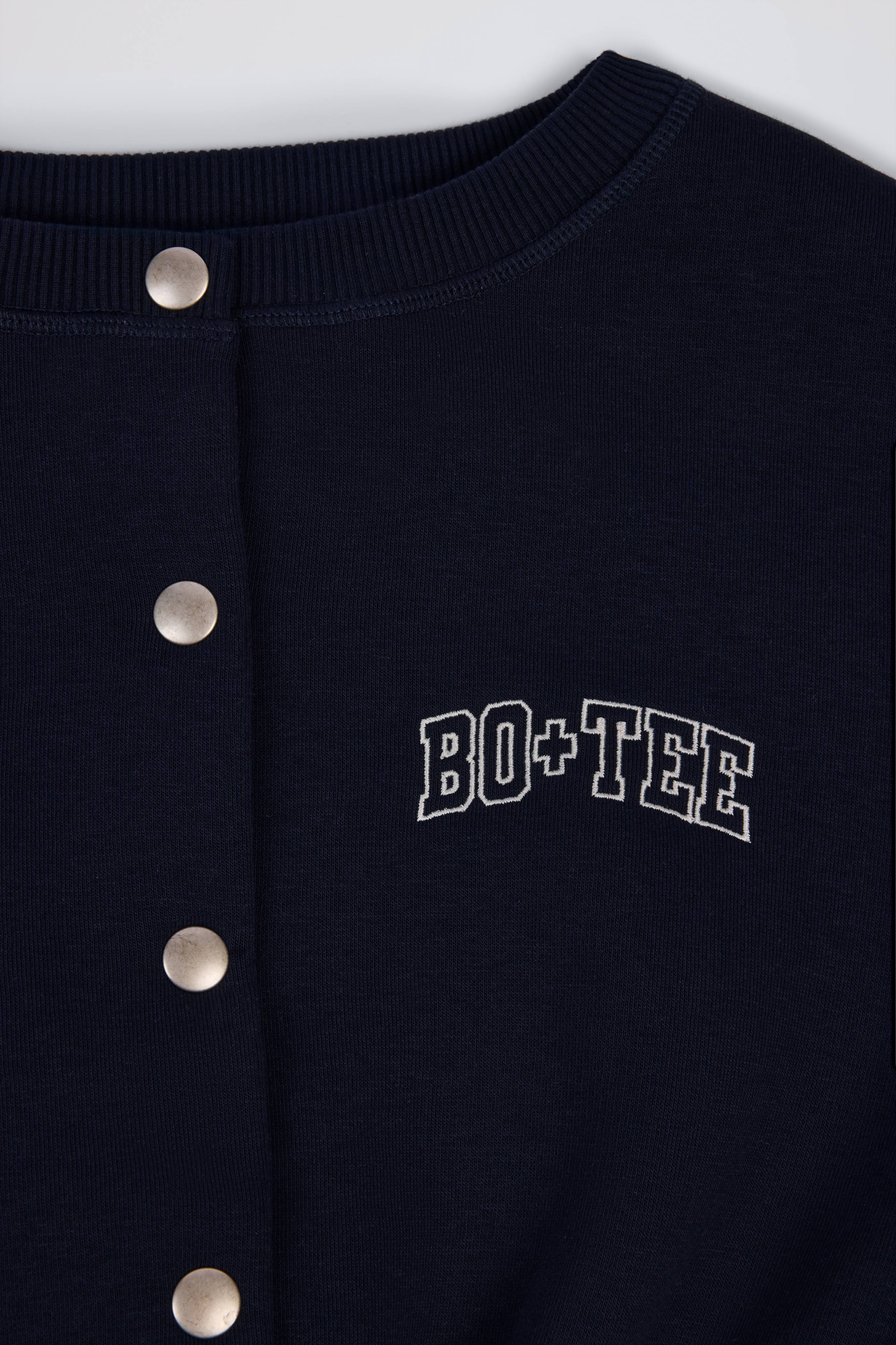 Premium Brushed Jersey Button-Up Cropped Cardigan in Classic Navy