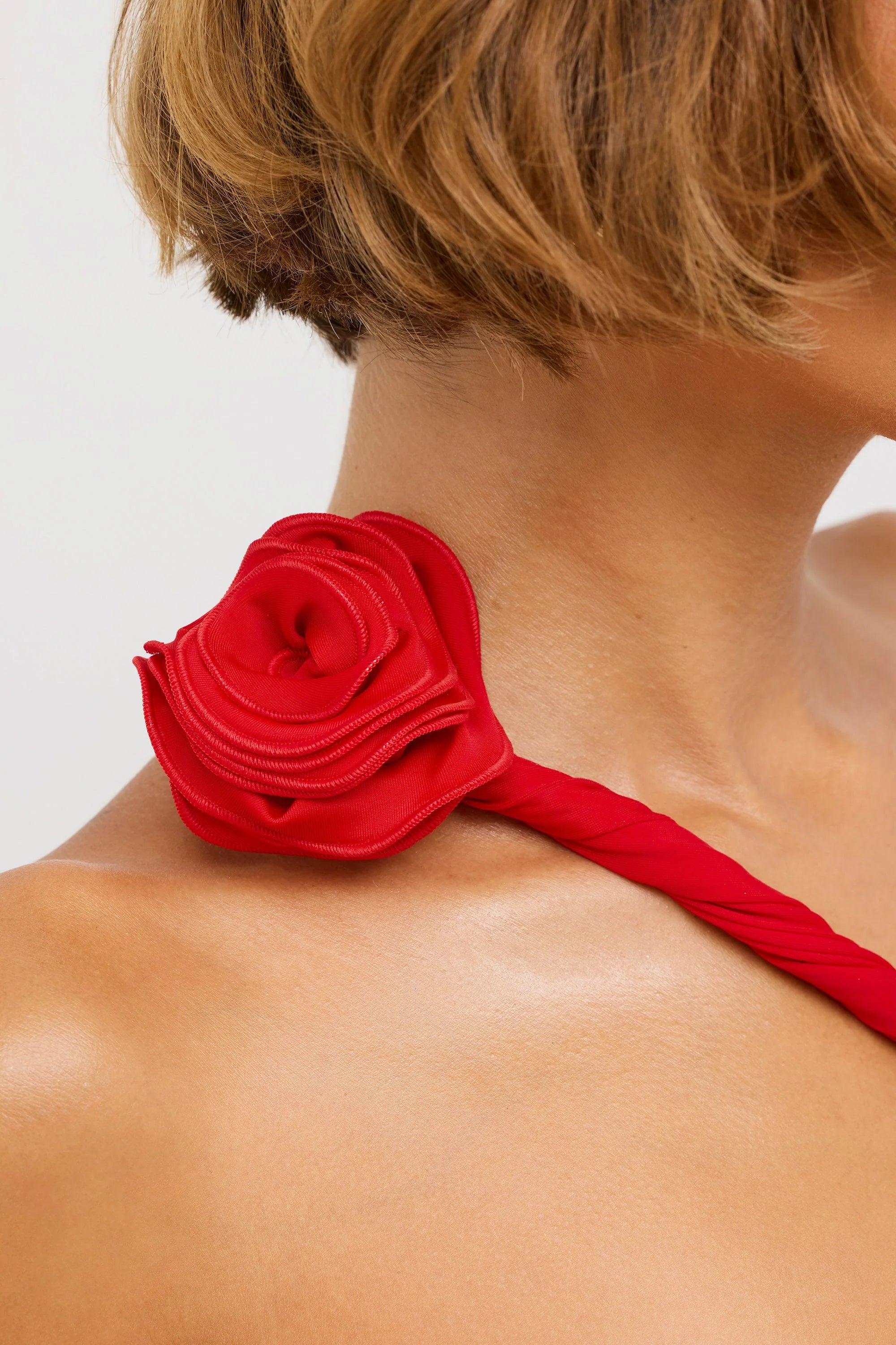 Premium Jersey Asymmetric Cut Out Maxi Dress  in Scarlet Red