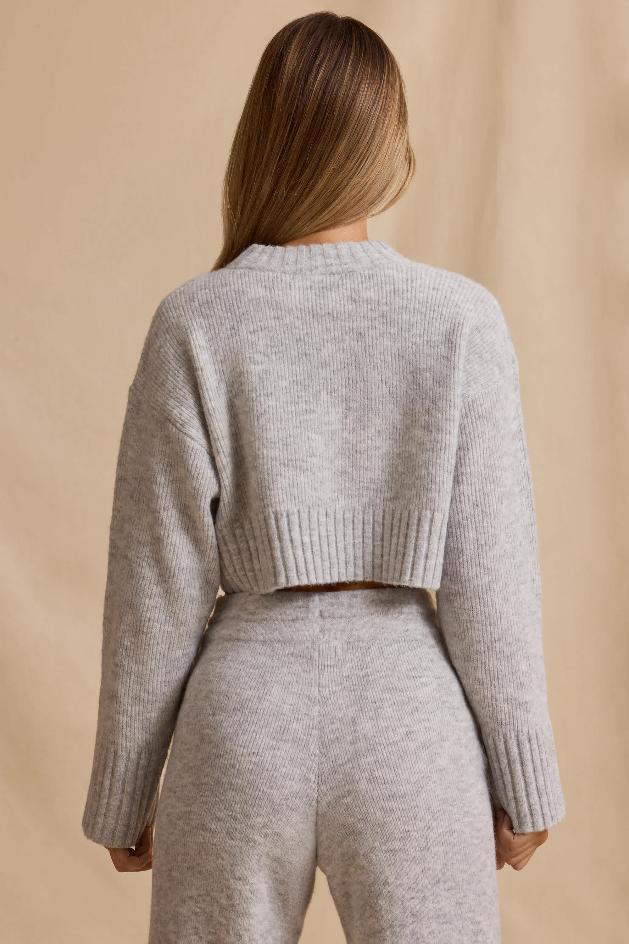 Ribbed Knit Cropped Jumper in Ice Marl