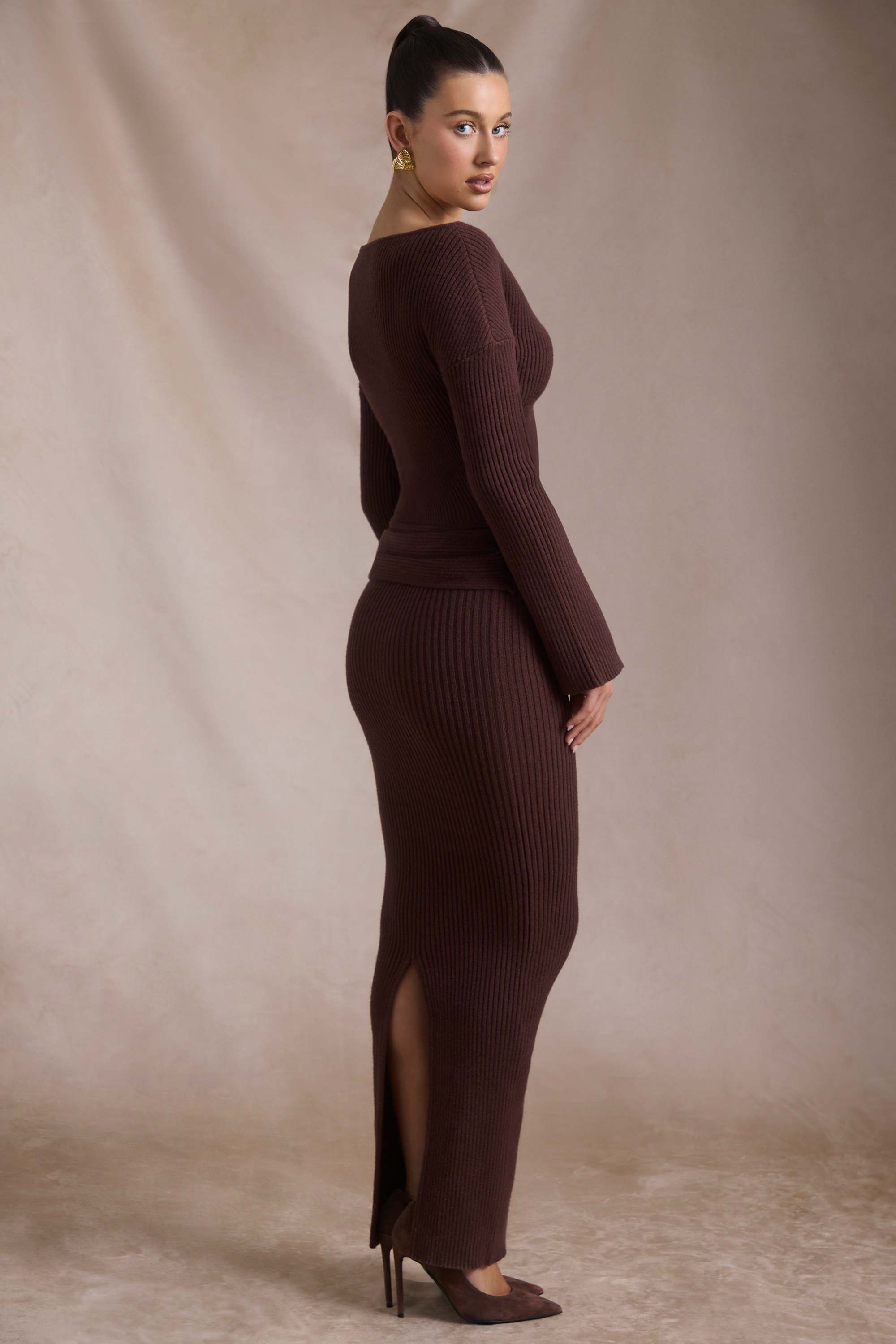 Ribbed-Knit Foldover Maxi Skirt in Espresso