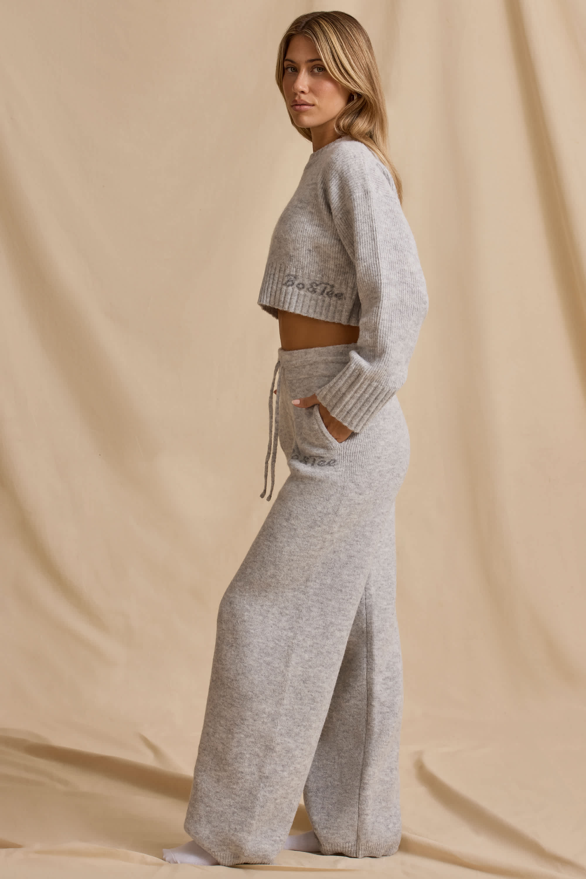Ribbed Knit Mid-Rise Wide-Leg Joggers in Ice Marl