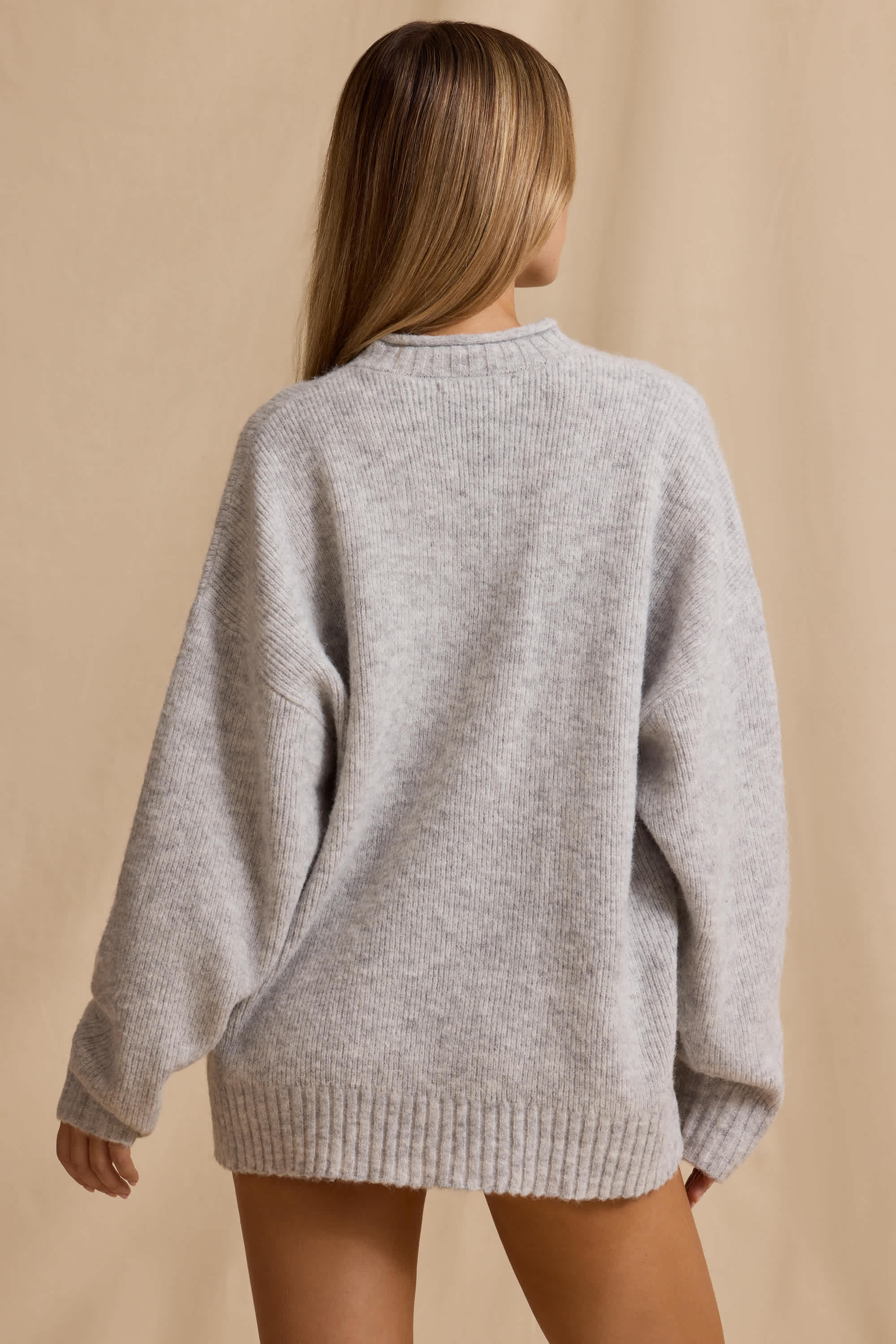 Ribbed Knit Oversized Jumper in Ice Marl