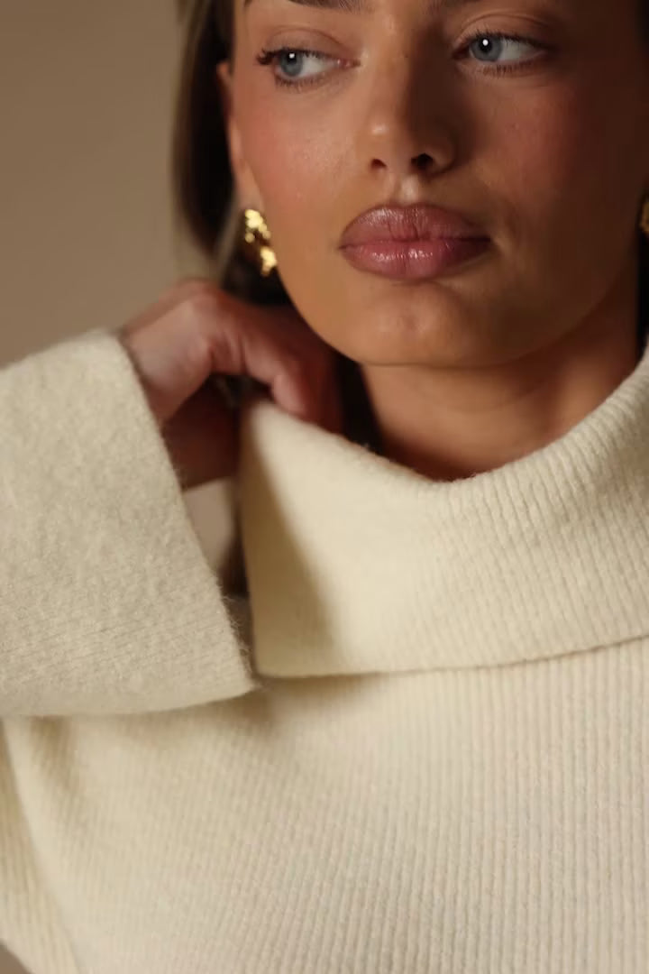 Ribbed-Knit Turtleneck Mini Jumper Dress in Ivory