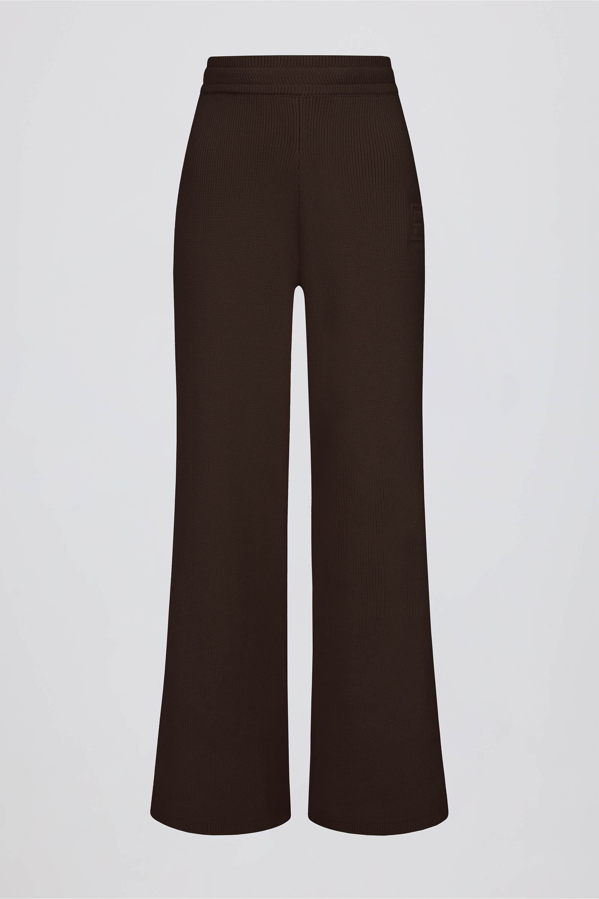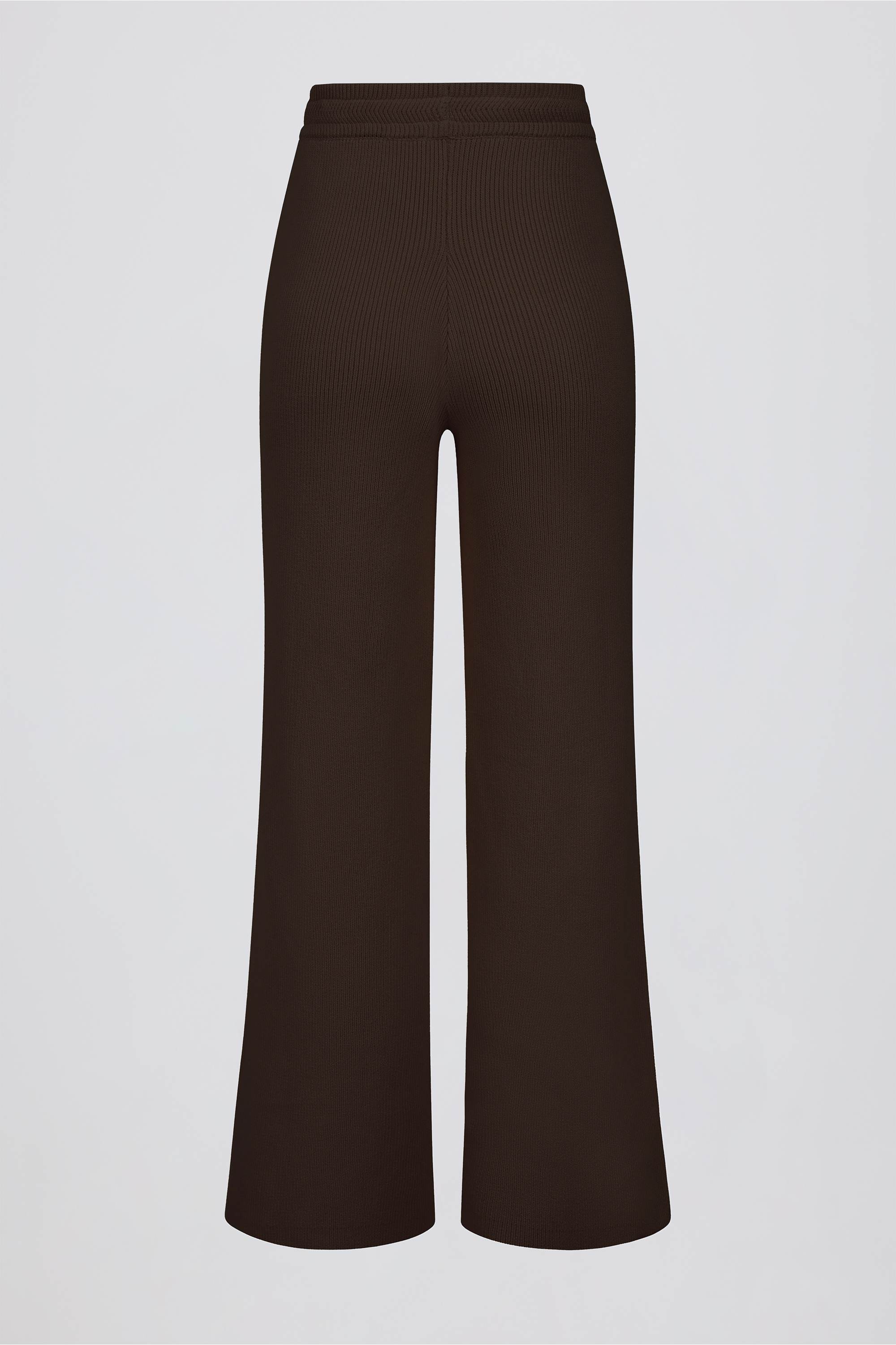 Ribbed Knit Wide-Leg Joggers in Pecan