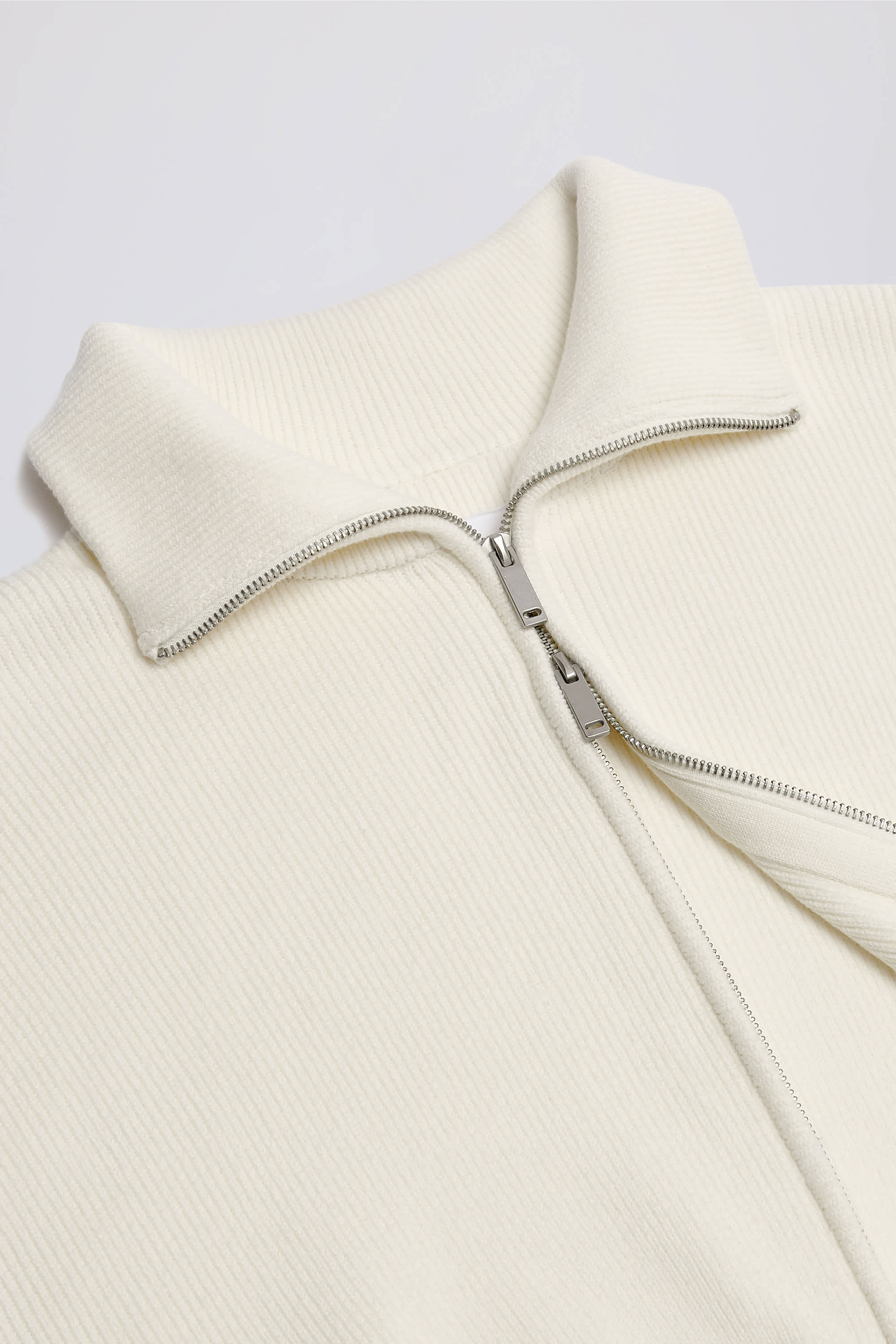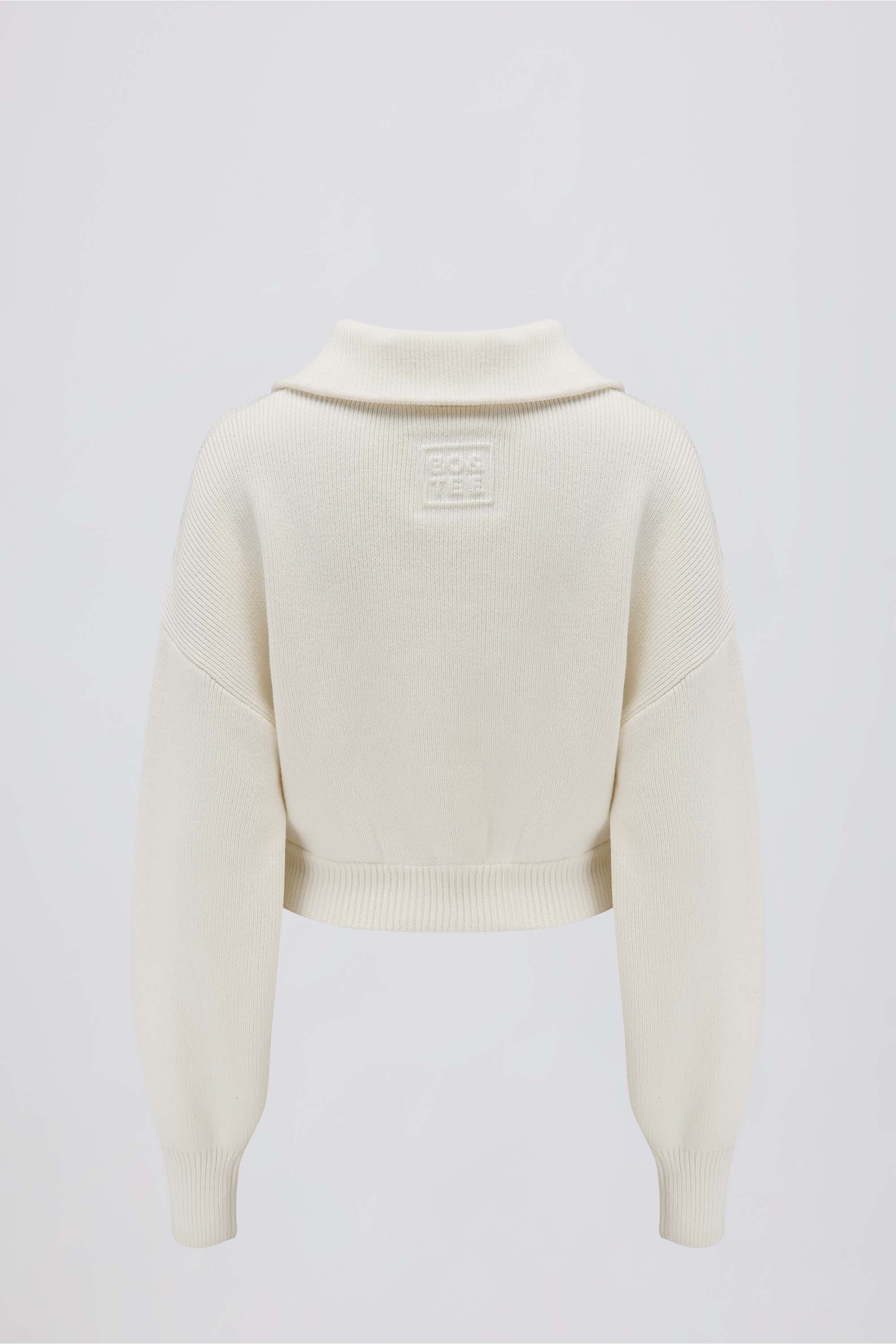 Perfect layers. Designed for mix-and-match styling with separates from the collection, this sweatshirt is crafted from a cotton-blend fabric with a textured ribbed-knit finish. It’s framed by an oversized collar, long cuffed sleeves, and dropped shoulders, creating a perfectly relaxed silhouette. The embossed Bo+Tee logo at the back adds a subtle signature finishing touch.