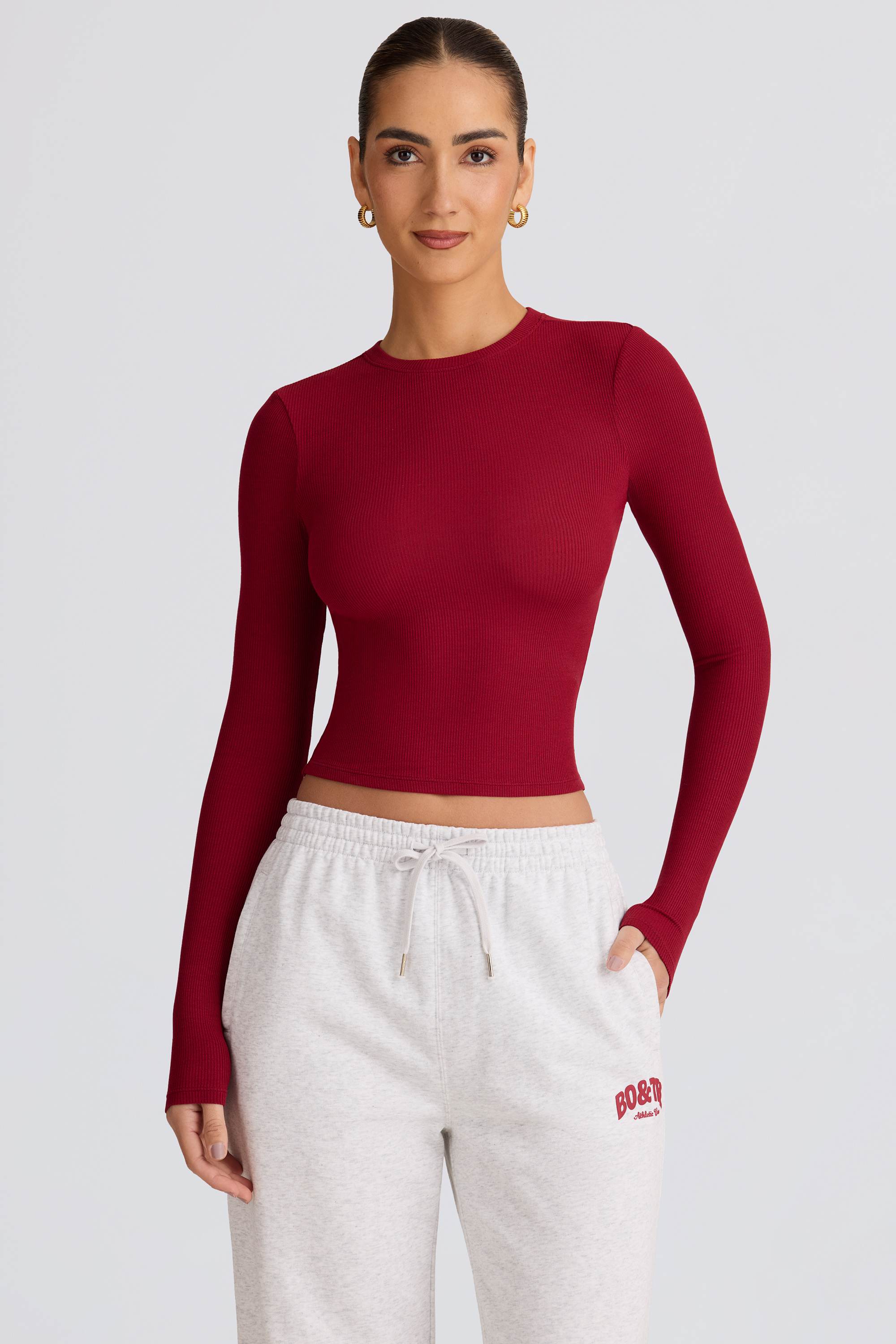 Perfect layers. Ideal for year-round wear, this top is crafted from buttery soft and stretchy ribbed jersey fabric made with TENCEL™ Modal fibres that support a natural dry feeling through moisture control. It’s cut to a classic full-length, figure-hugging silhouette with a crew neckline and long fitted sleeves.