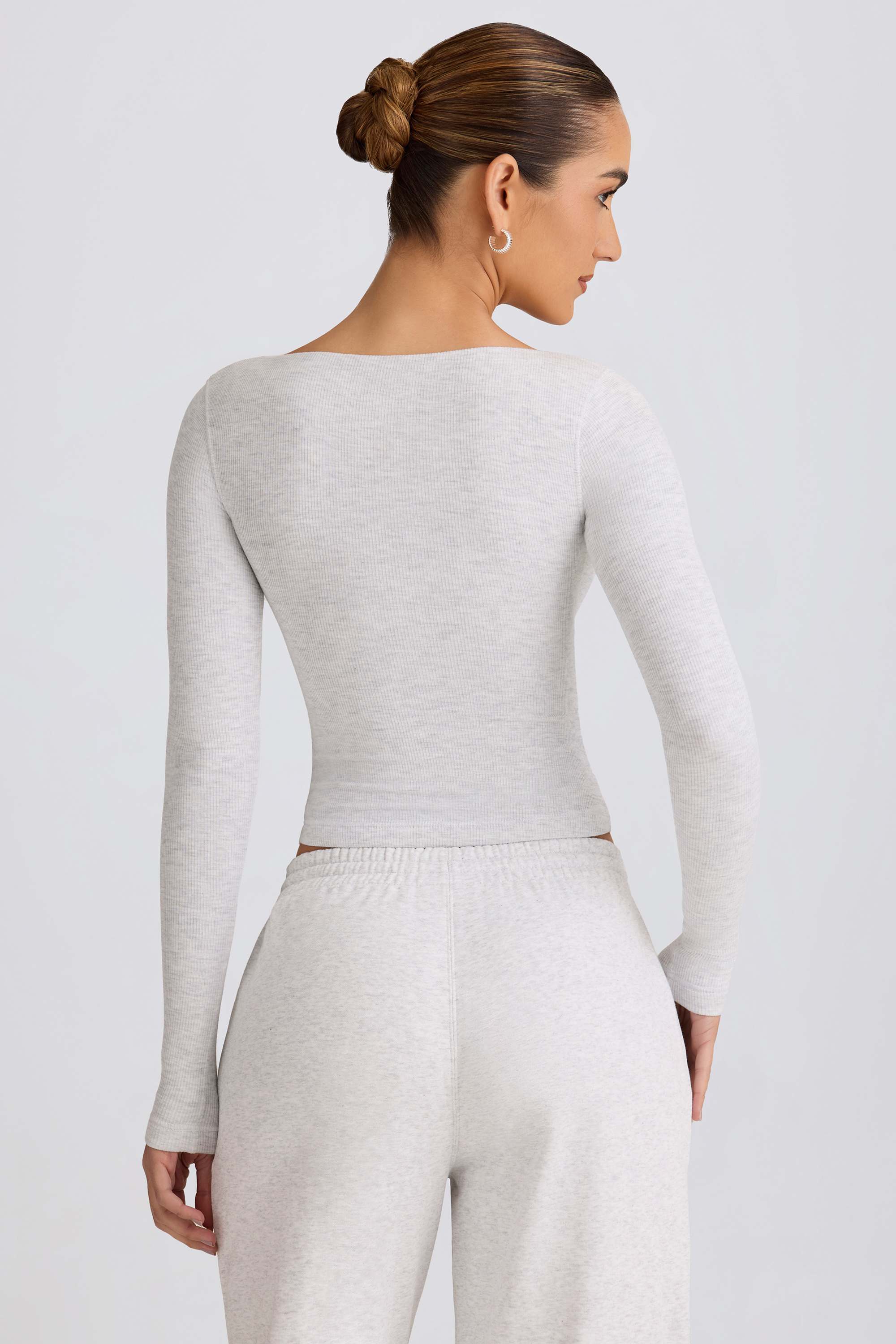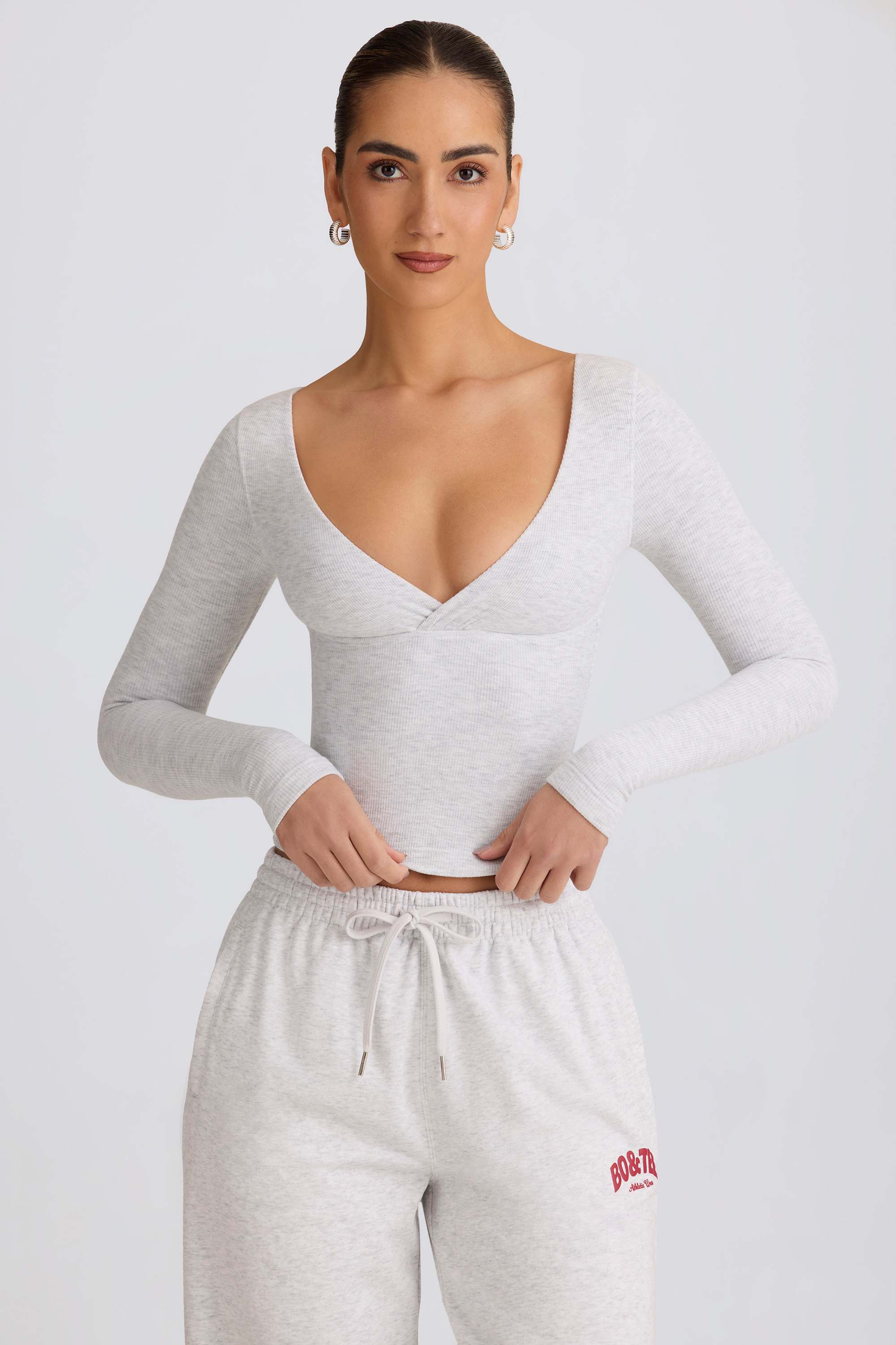 Ribbed Modal Ruched V-Neck Top in Grey Marl