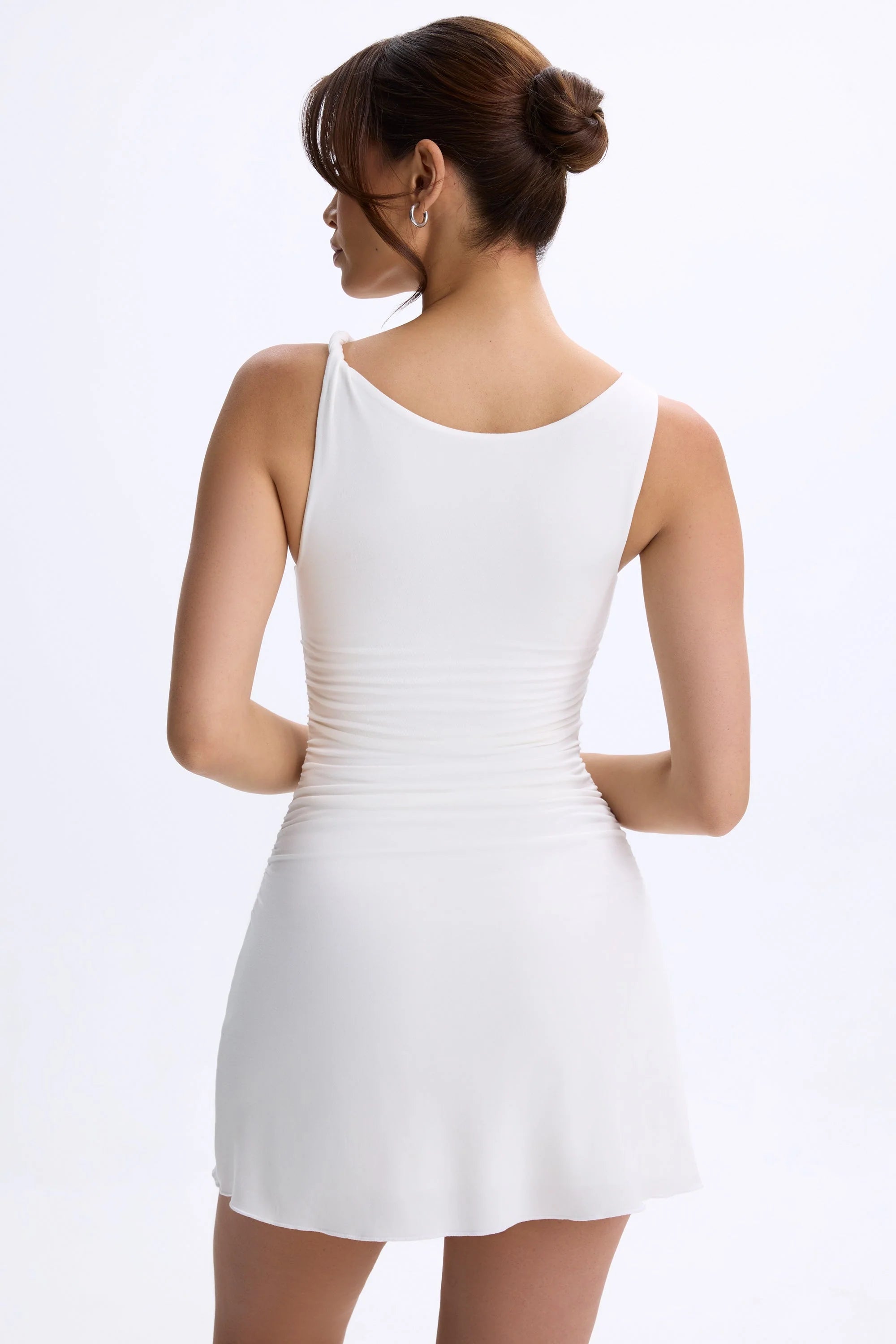 Your new favourite dress. Ideal for day-to-night styling, the Ione micro mini dress is cut to a universally flattering A-line silhouette that flares out at the skirt. It’s crafted from our signature jersey fabric made with TENCEL™ Modal fibres that are naturally soft and smooth to the touch, and elevated with perfectly placed ruching at the front and waist. It’s elevated with a boat neck and asymmetric twist detailing on the left shoulder.