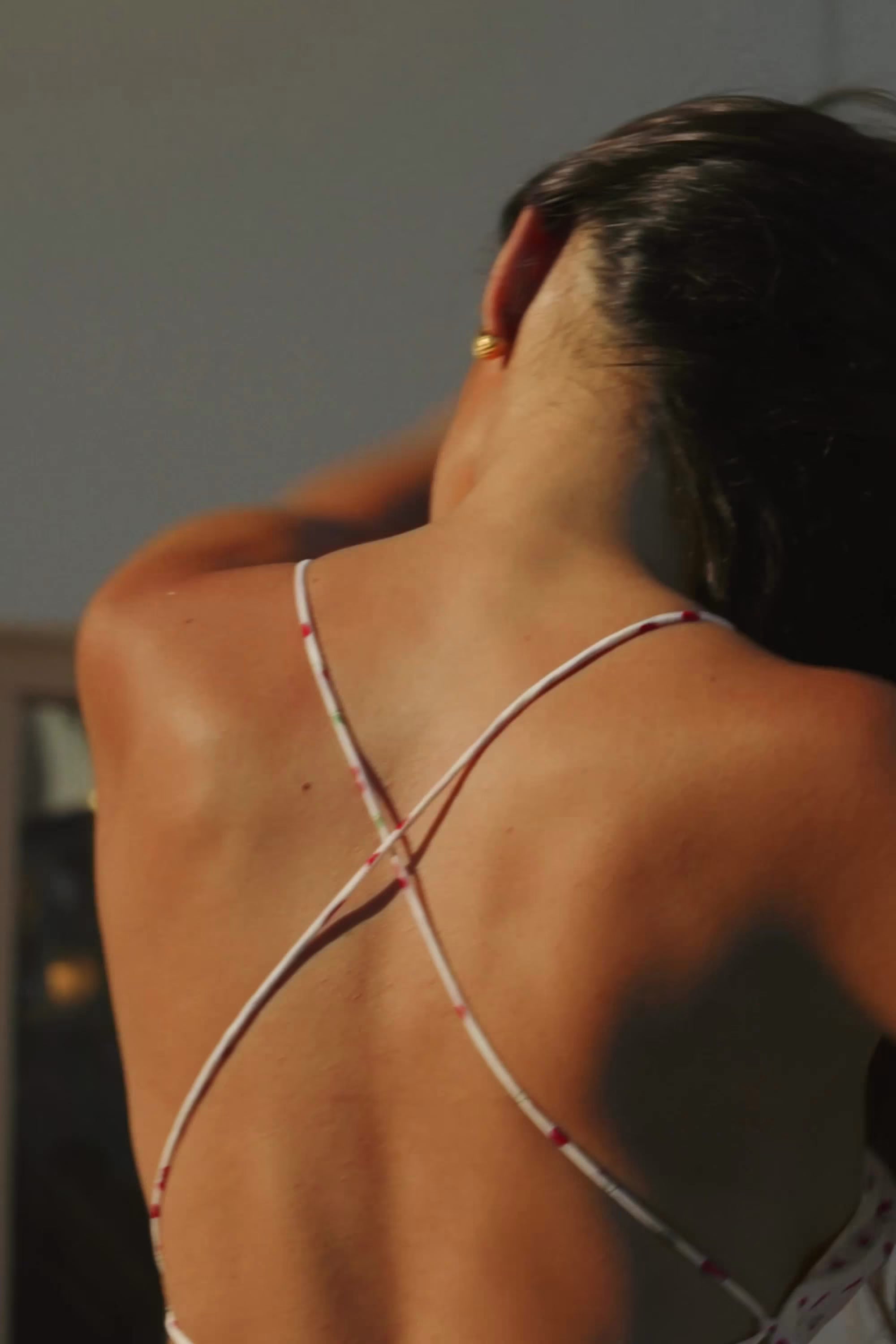 Playful ease all summer long with the Helaia playsuit, a pretty and polished style crafted from lightweight georgette. Cut to a fit-and-flare silhouette with a fitted bodice, it’s framed with a ruched bust panel and statement open back complete with adjustable crossover ties for your perfect fit.
