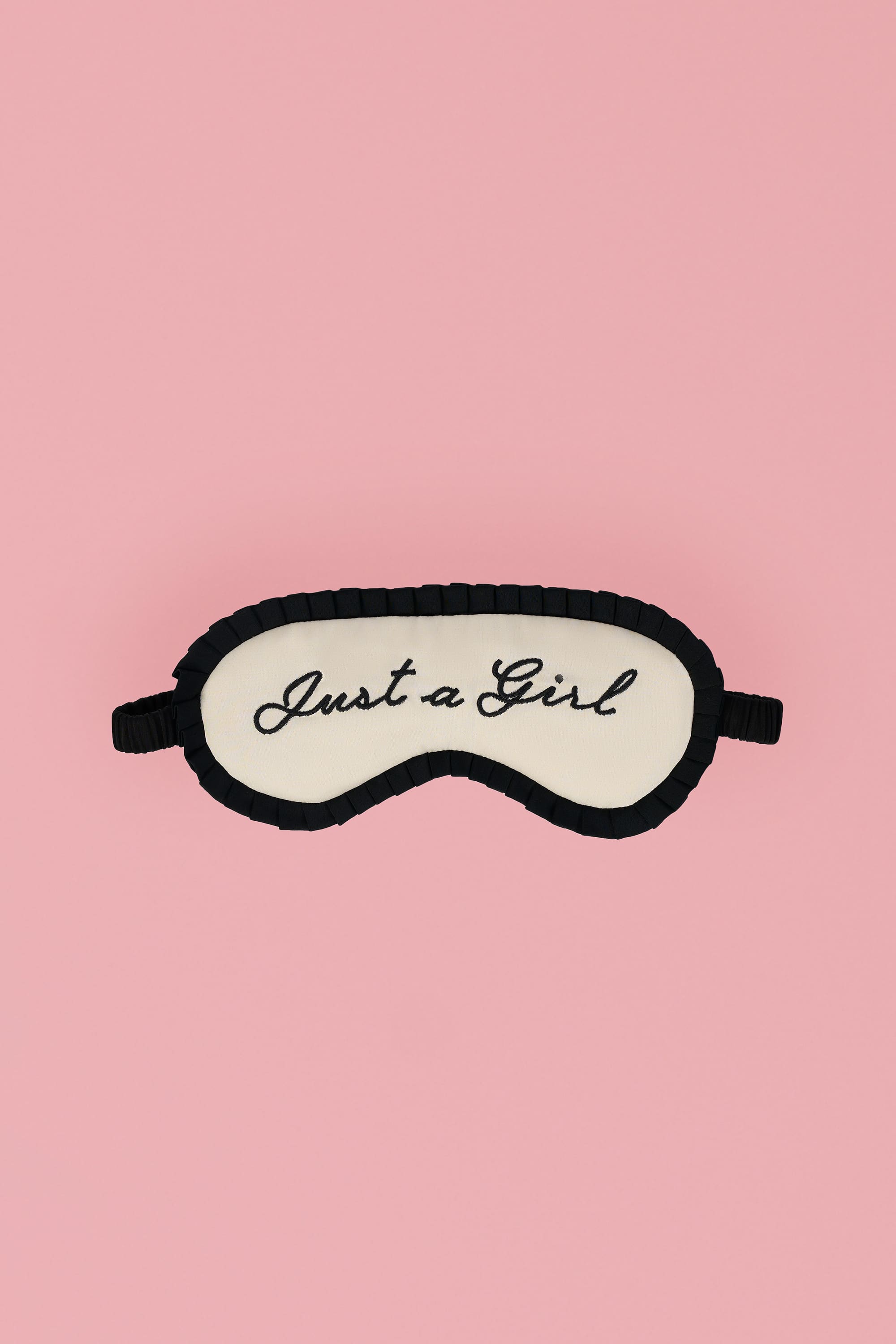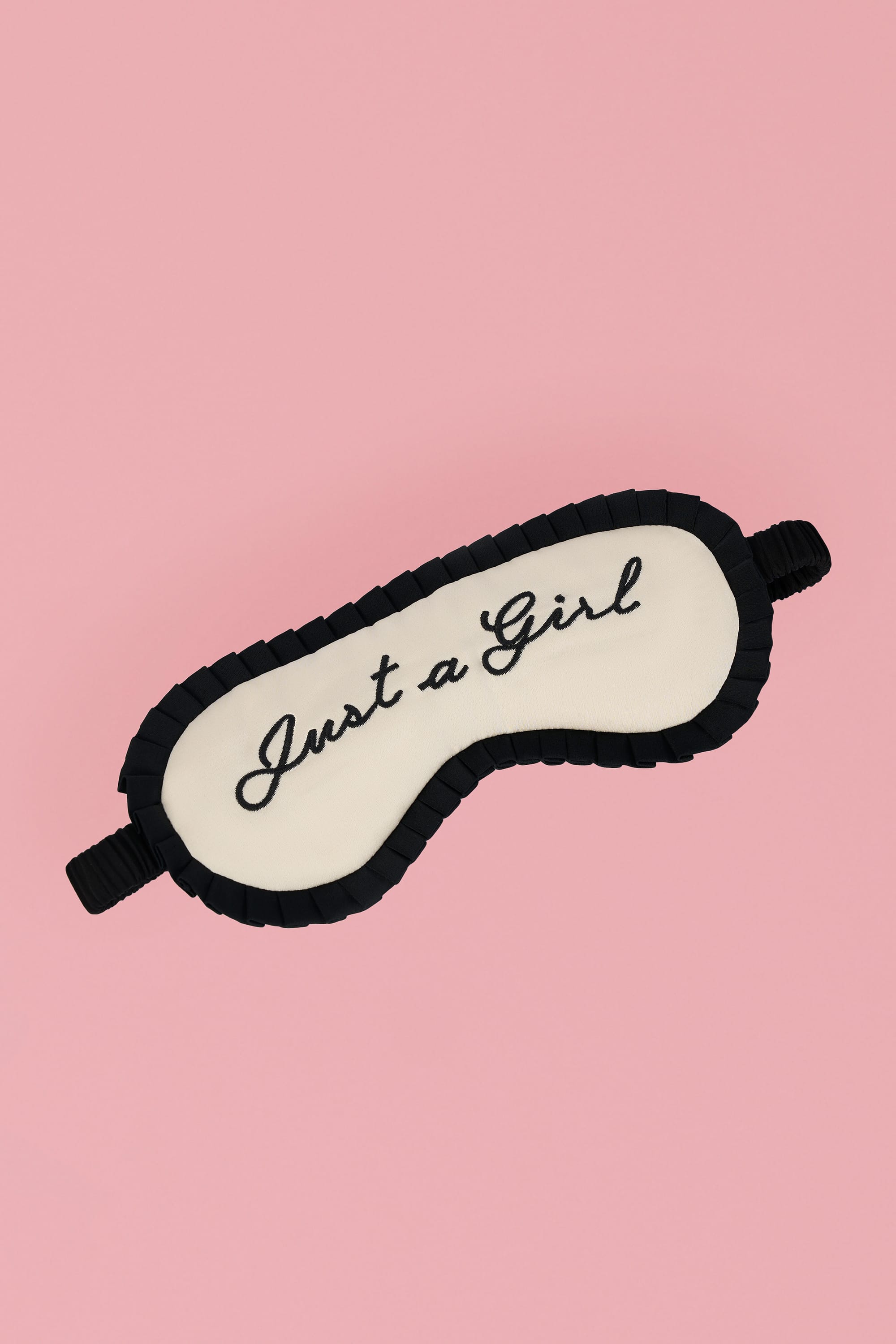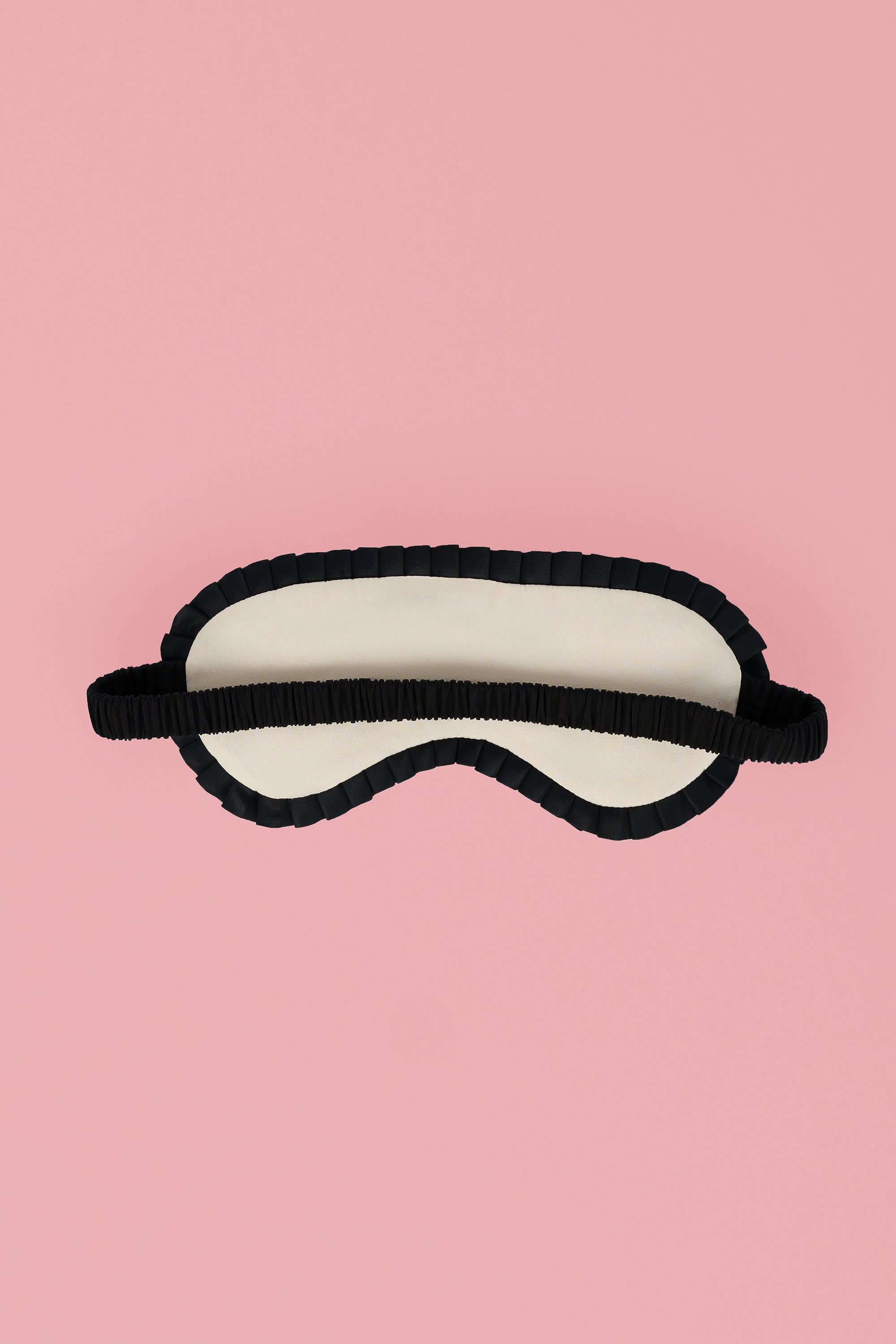 Ruffle-Trim Embroidered Eye Mask in Ivory