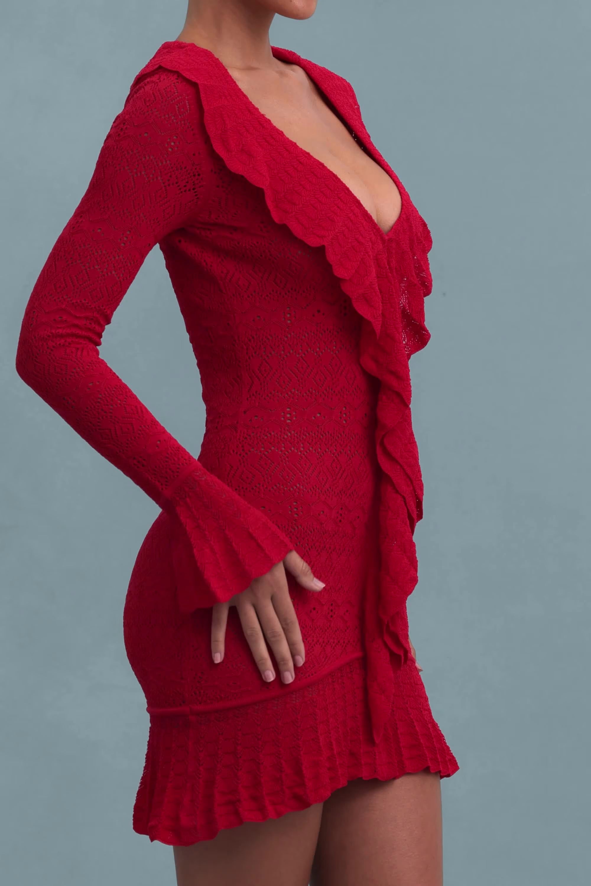 For unforgettable summer evenings. Lightweight and dreamy, the Jolessa mini dress is crafted from our premium pointelle-knit cotton fabric with a subtly sheer, soft-touch handle. Designed to hug your curves, the bodycon silhouette is elevated with a dynamic ruffle trim and an asymmetric hem.