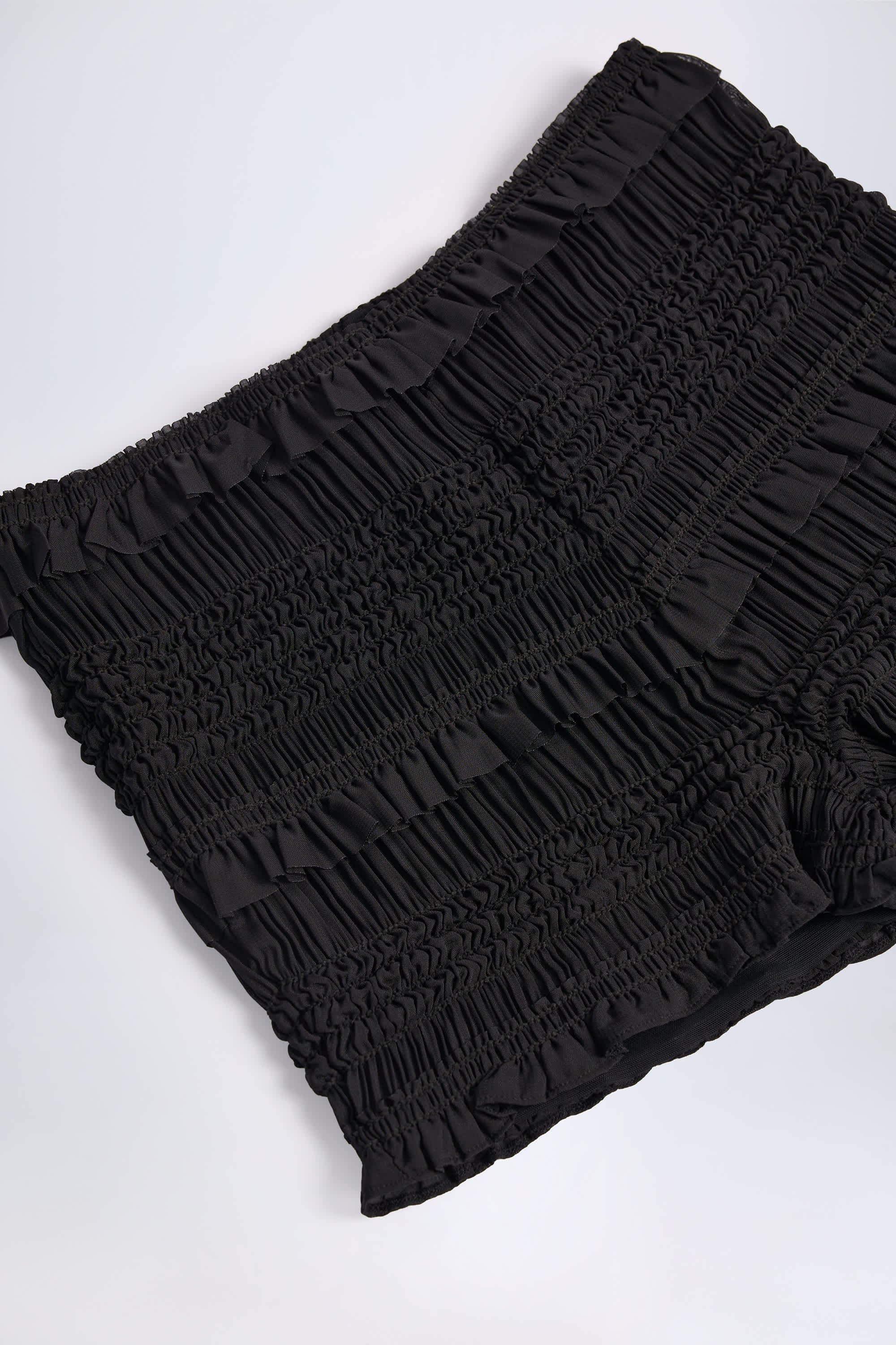 Playful separates. Inspired by cutesy bloomer styles, the Orla shorts are crafted from our custom-designed textured mesh, elevated with ruffle trims, and designed to be styled with the matching top for the perfect festival look. They’re cut for a mid-rise fit and feature a comfortable elasticated waistband.