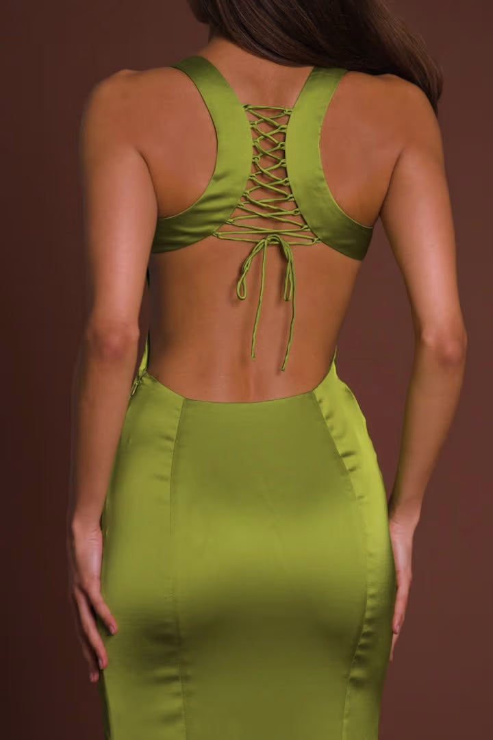 Main character moments start in Vittoria. With a scoop neckline, open back, and flirty lace-up detailing, it adds a touch of high glam to your night. Crafted from our premium satin fabric, fully lined, and cut to a maxi length, it’s designed to create an effortlessly alluring effect.