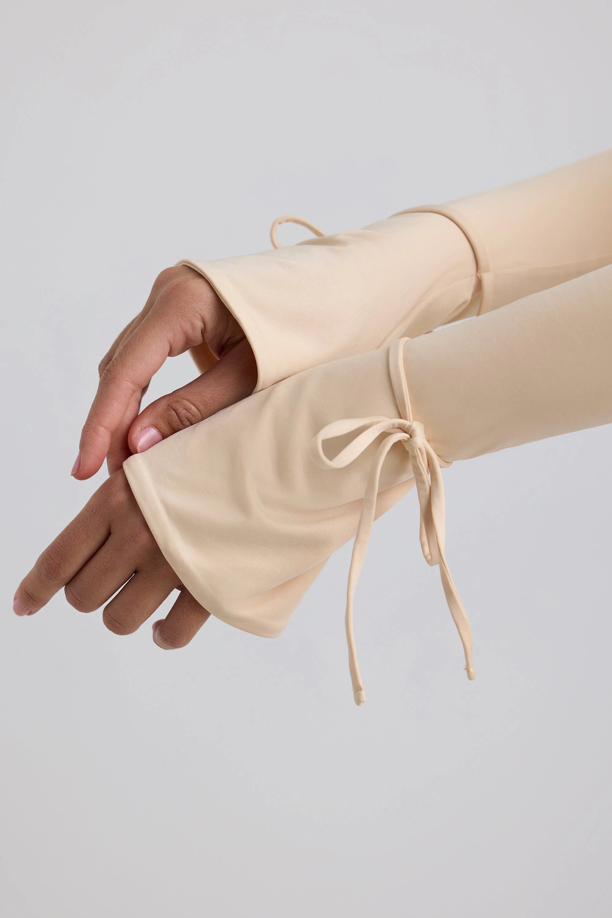 Versatile statement staples. A style you’ll reach for time and time again, the Raelyn mini dress is cut from our sculpting and stretchy slinky jersey fabric to a universally flattering A-line silhouette. It features a ruched sweetheart neckline and long sleeves with pretty tie cuffs.