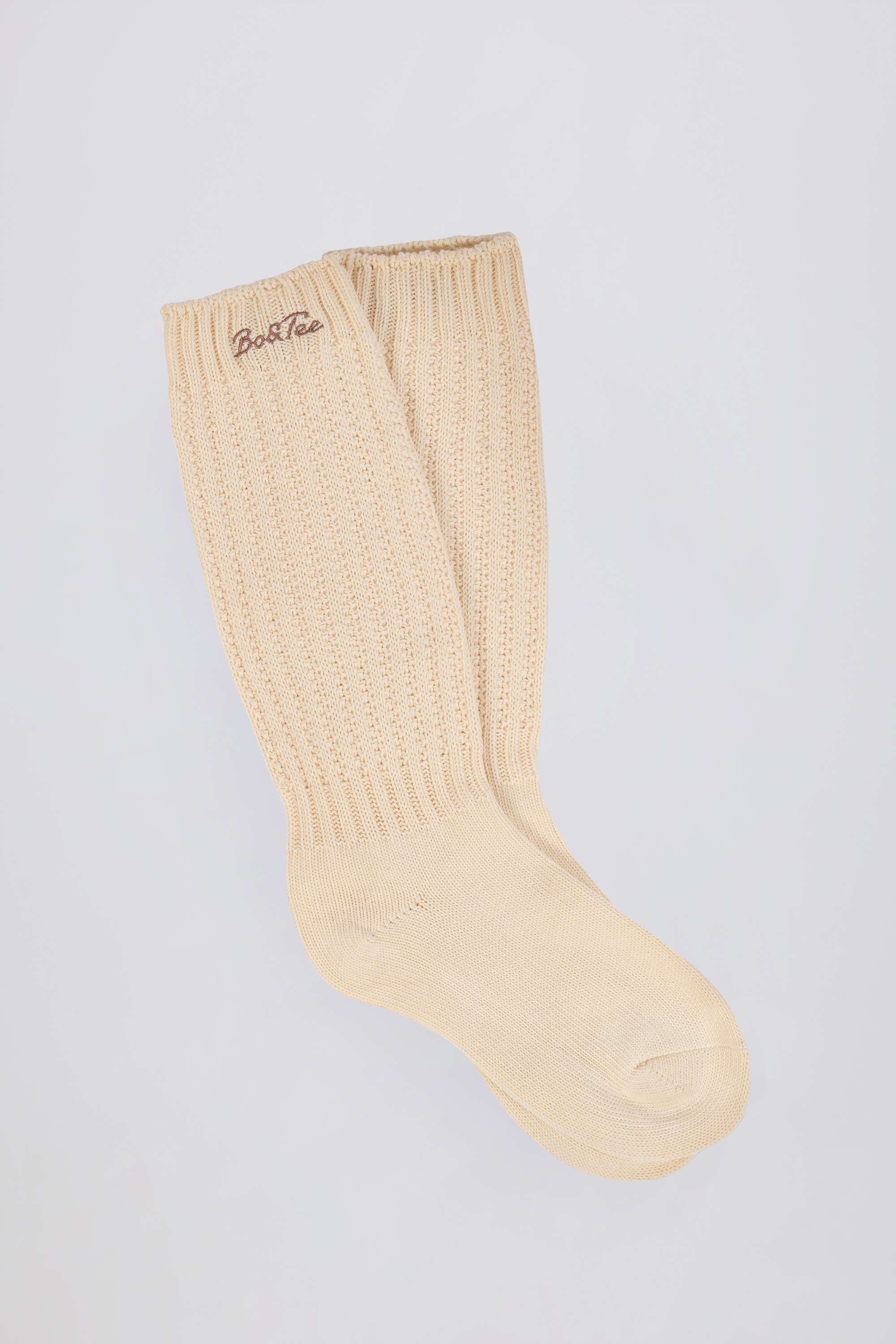 Cosy essentials. Designed to coordinate perfectly with our Knit Classics collection, this bundle features two slouchy ribbed crew socks crafted from a soft cotton blend with the perfect amount of stretch for comfort. They’re complete with an embroidered Bo&Tee logo at the ankle.