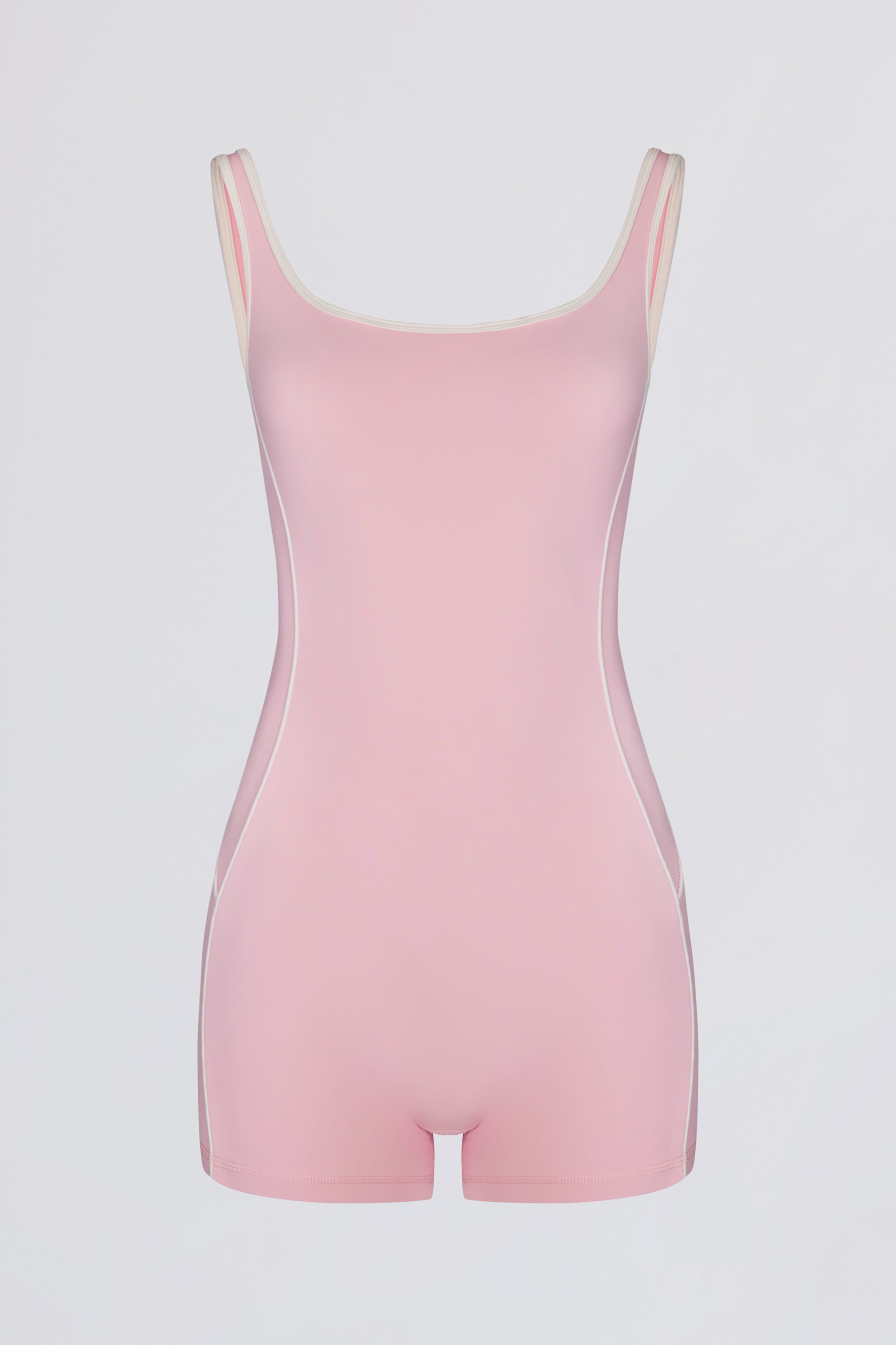 Easy and effortless. The perfect piece to throw on and go, this unitard is crafted from our breathable, body-hugging and buttery Soft Active fabric with ample stretch for maximum range of movement and all-day comfort. Traced with figure-defining contrast trims, it features supportive fixed straps and a statement open back.