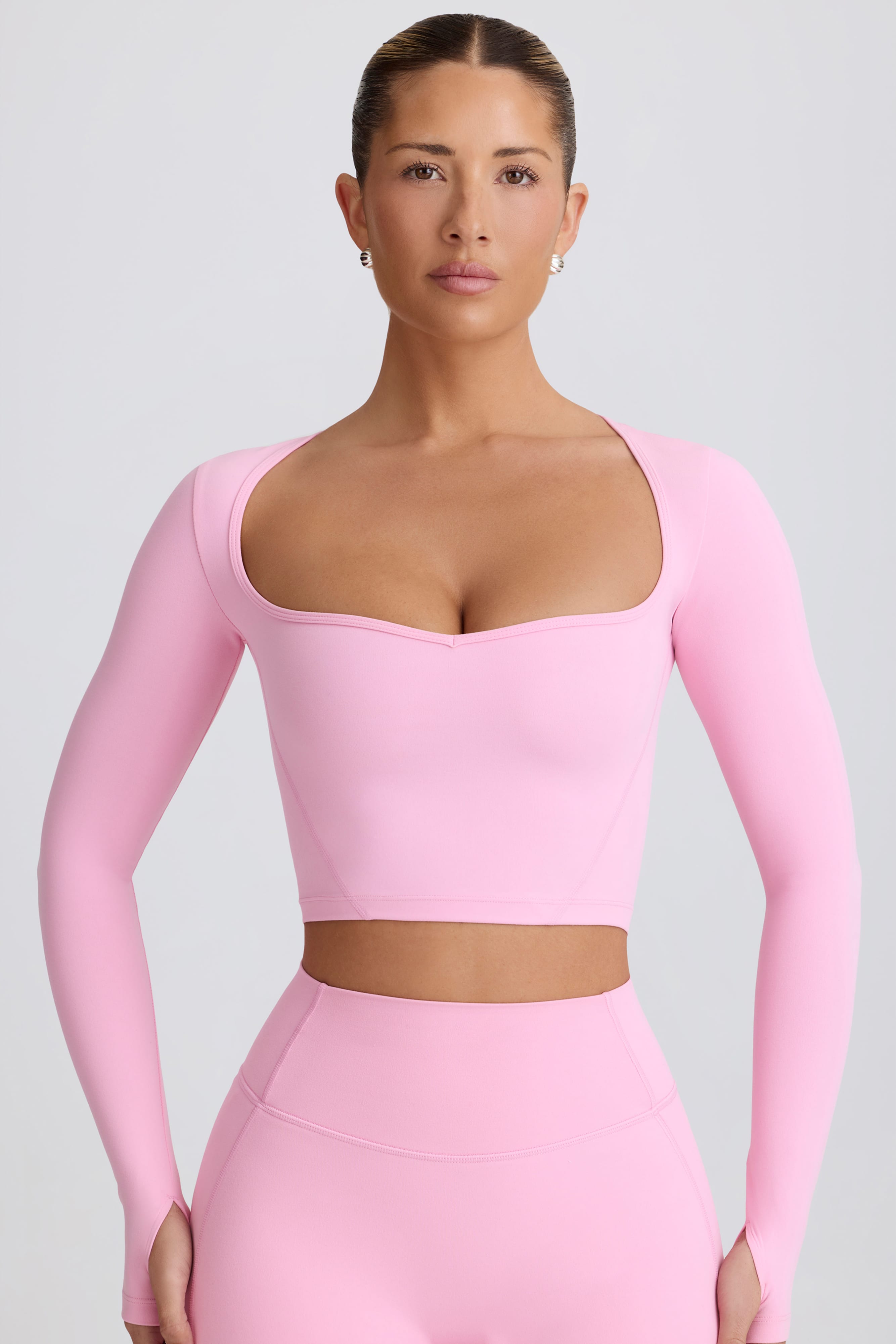 Soft Active Sweetheart-Neck Crop Top in Baby Pink
