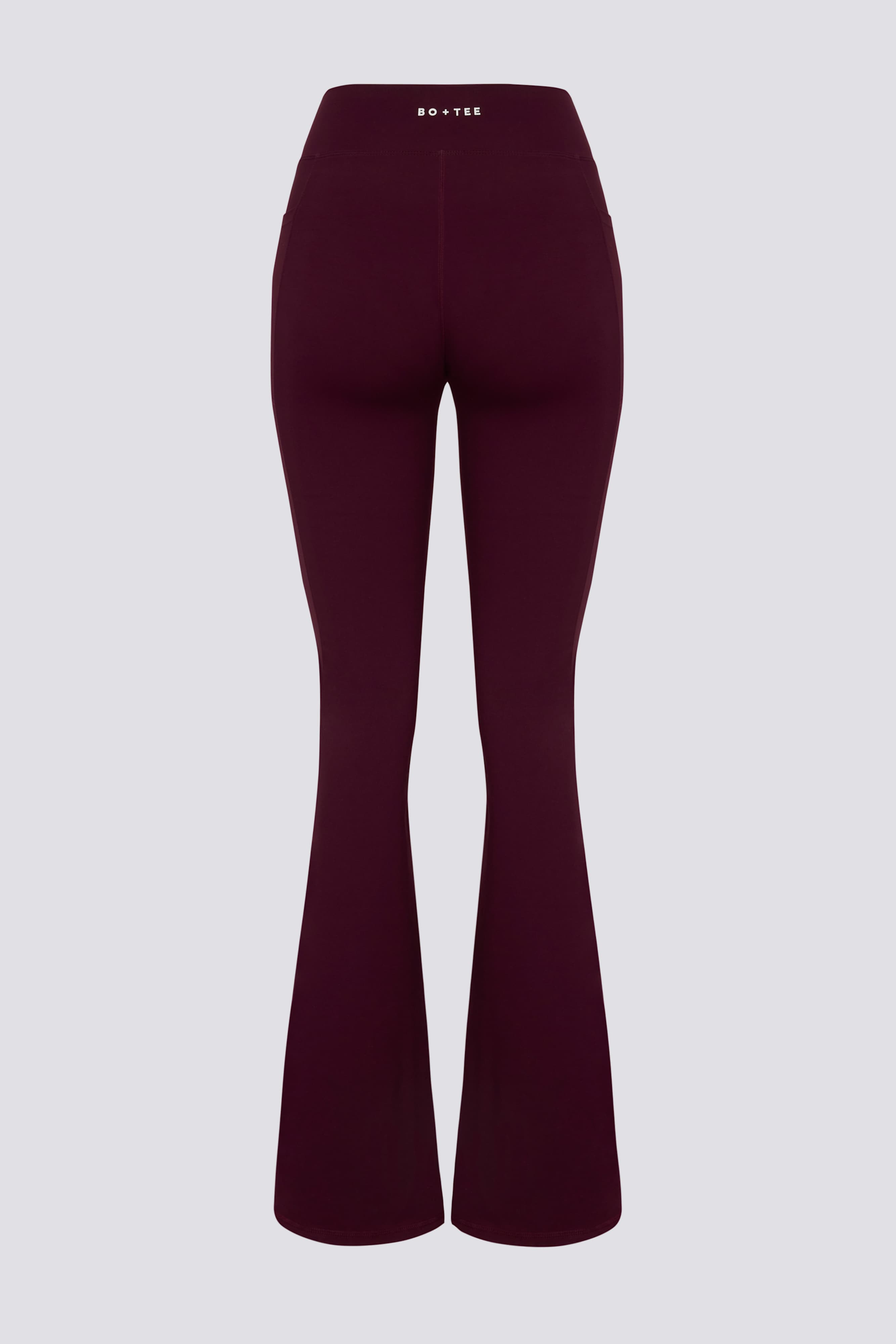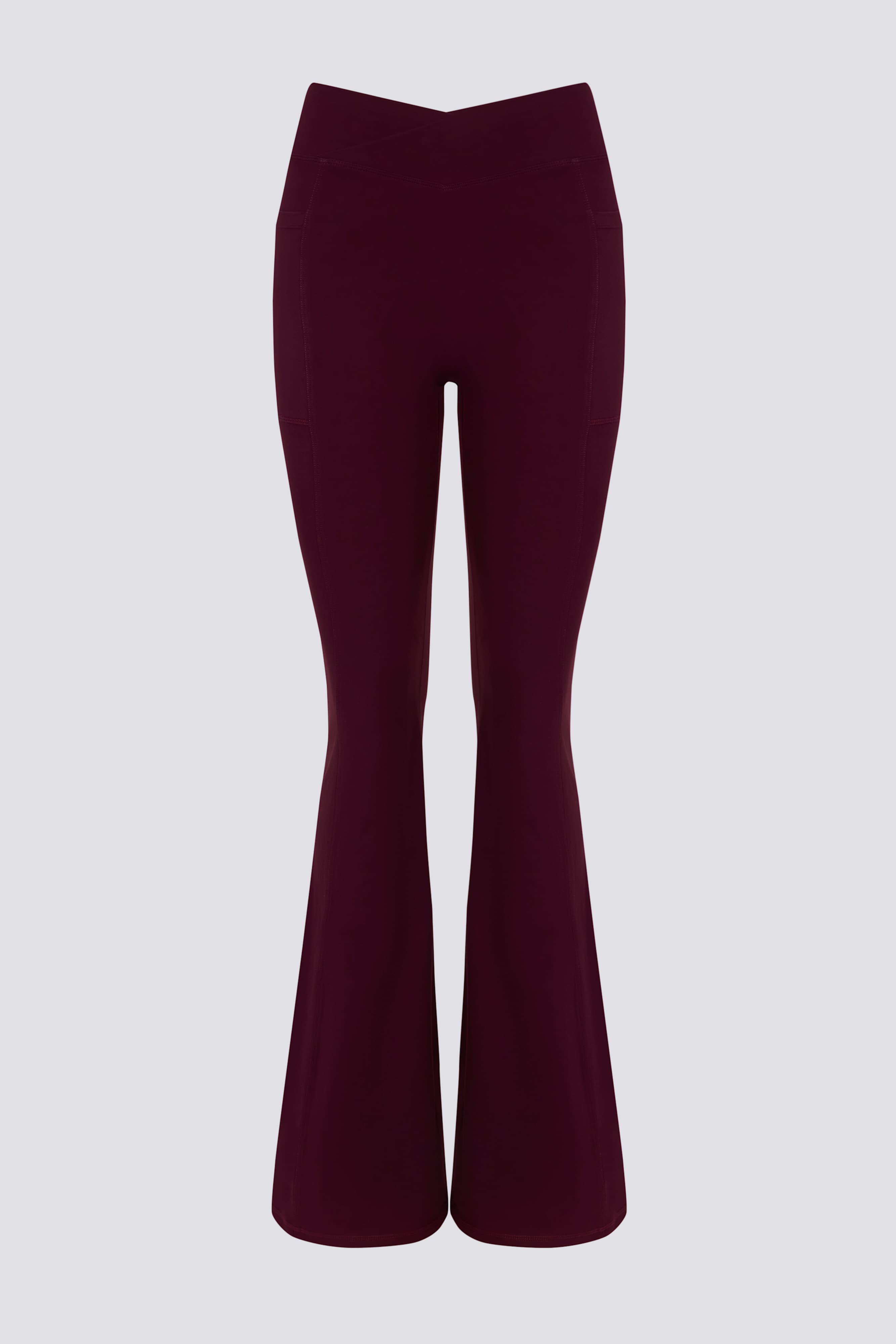 Soft Active V-Waist Pocket Flared Leggings in Burgundy