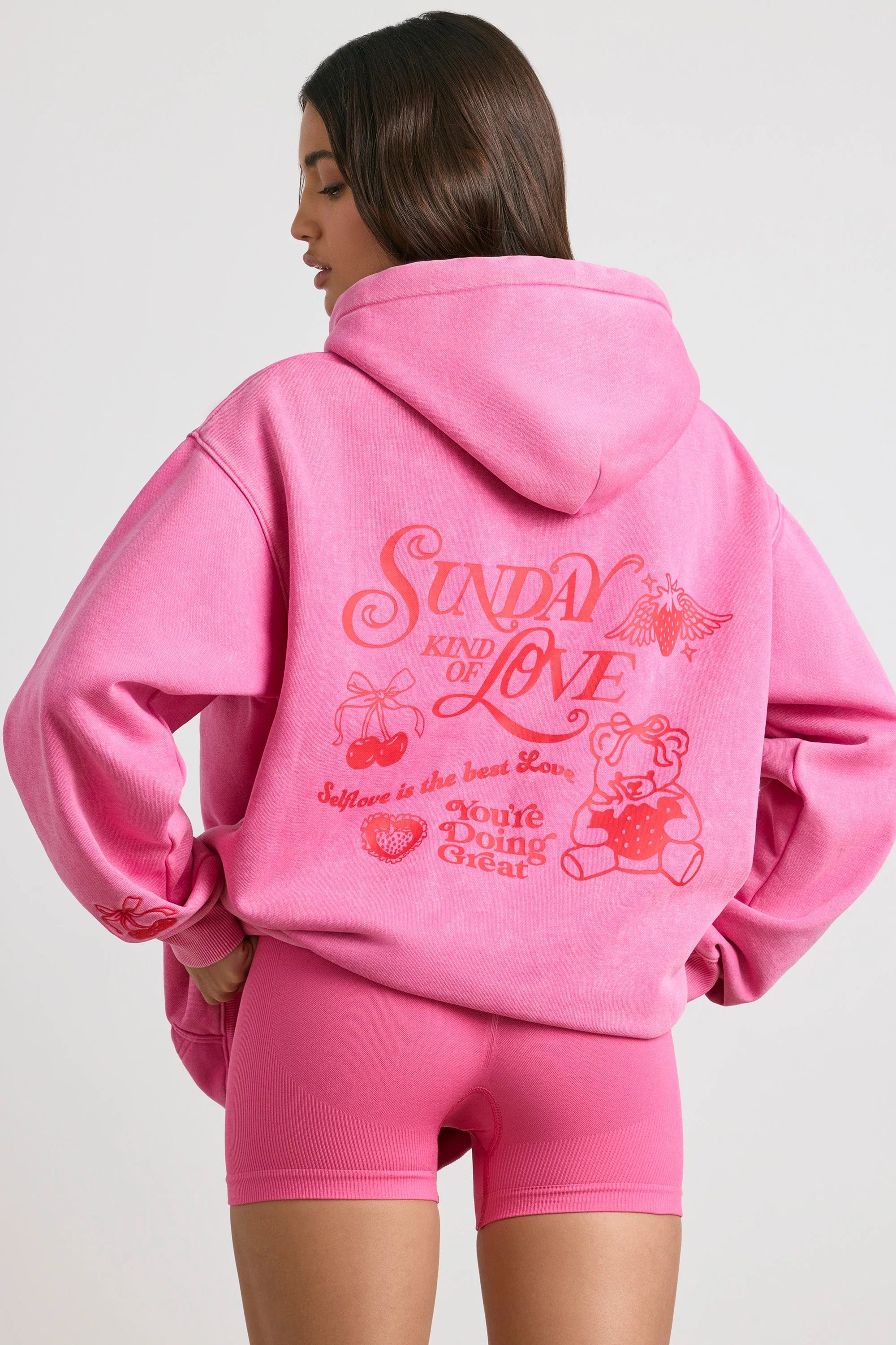 Soft Cotton Jersey Oversized Hoodie in Hot Pink