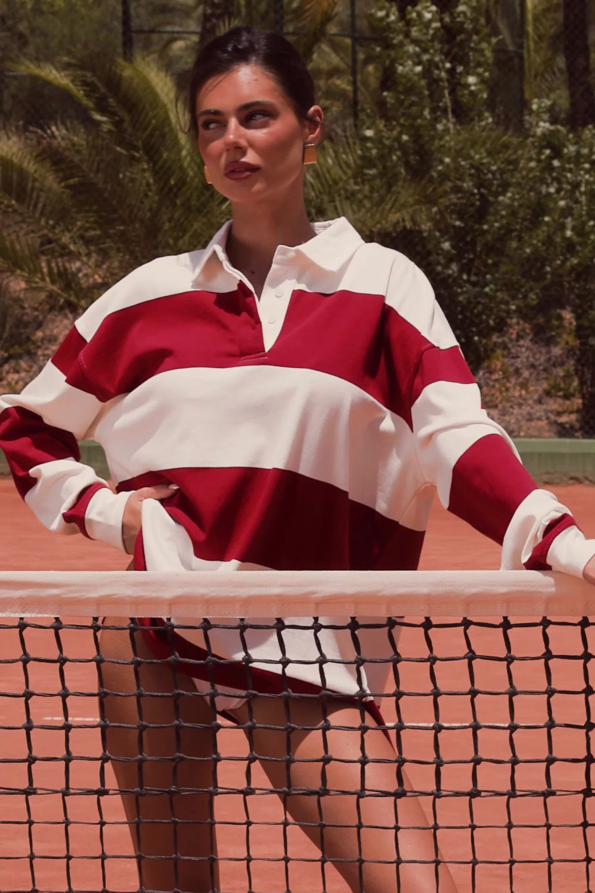 Daily specials. Perfectly oversized for casual days, this tee is crafted from organic cotton that’s soft to the touch and naturally breathable for maximum comfort. Elevated with a striped design that pairs back with separates from the collection, it’s cut to a relaxed fit that’s accentuated with dropped shoulders, cuffed sleeves and an open V-neckline.